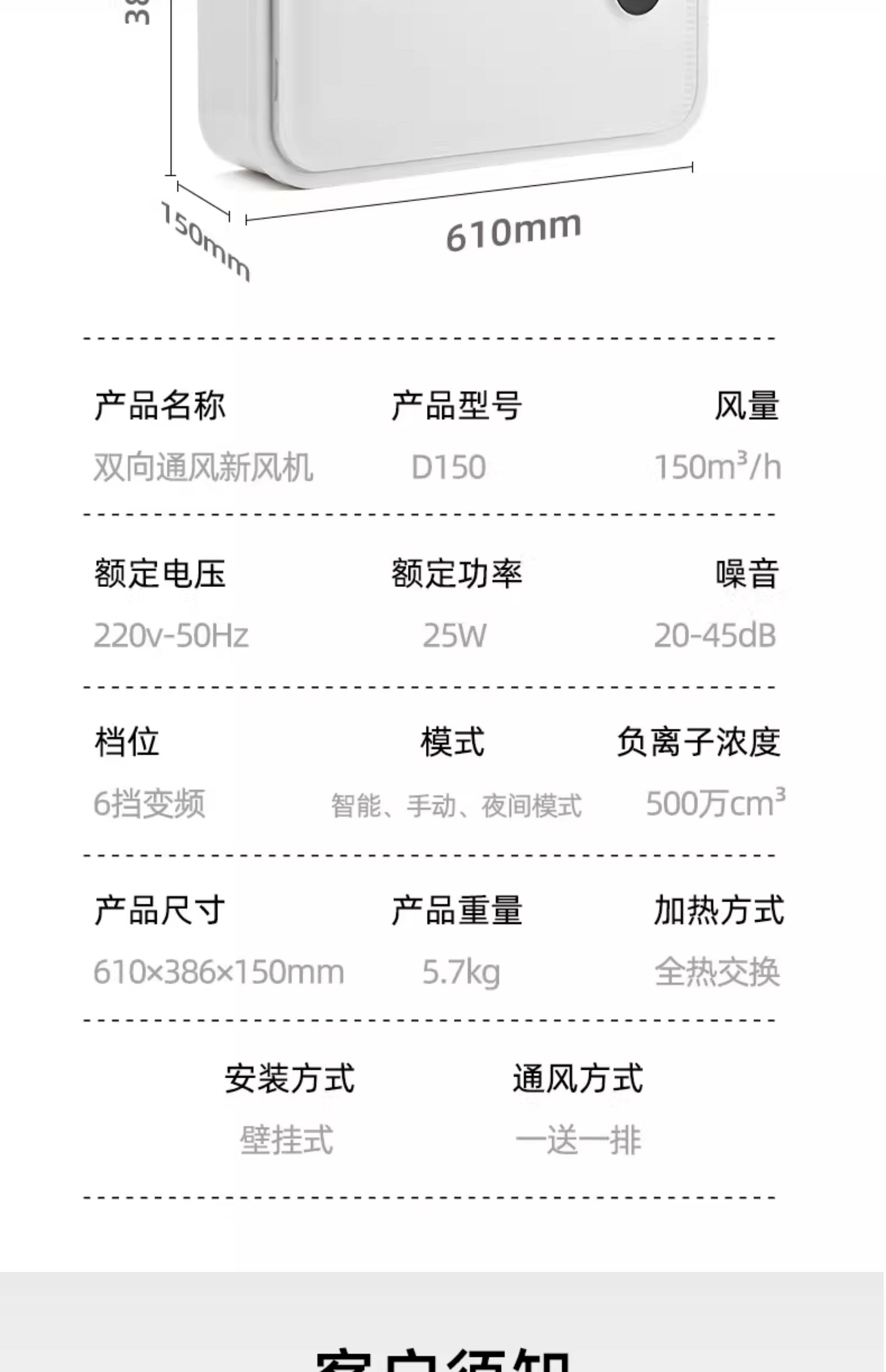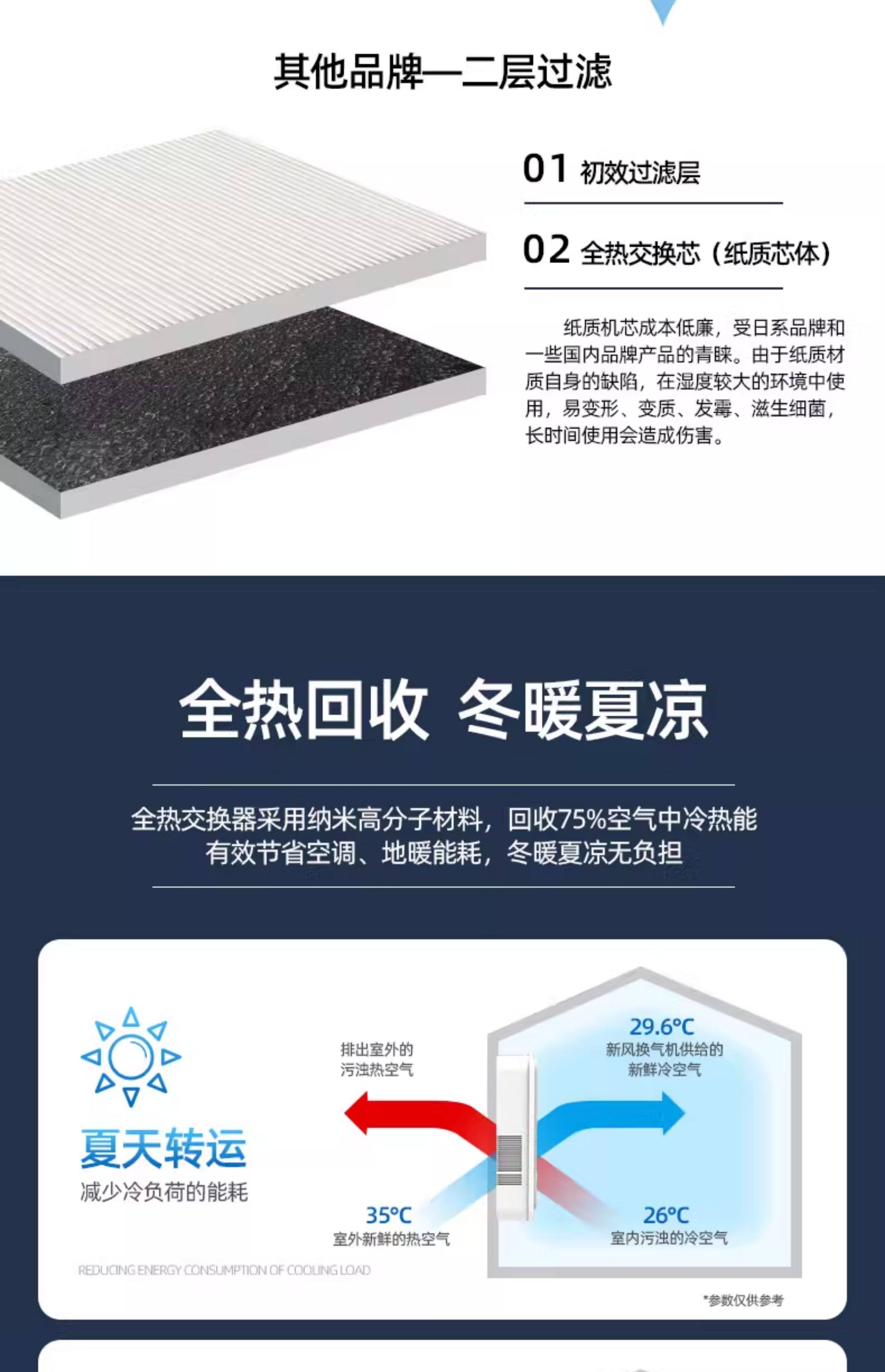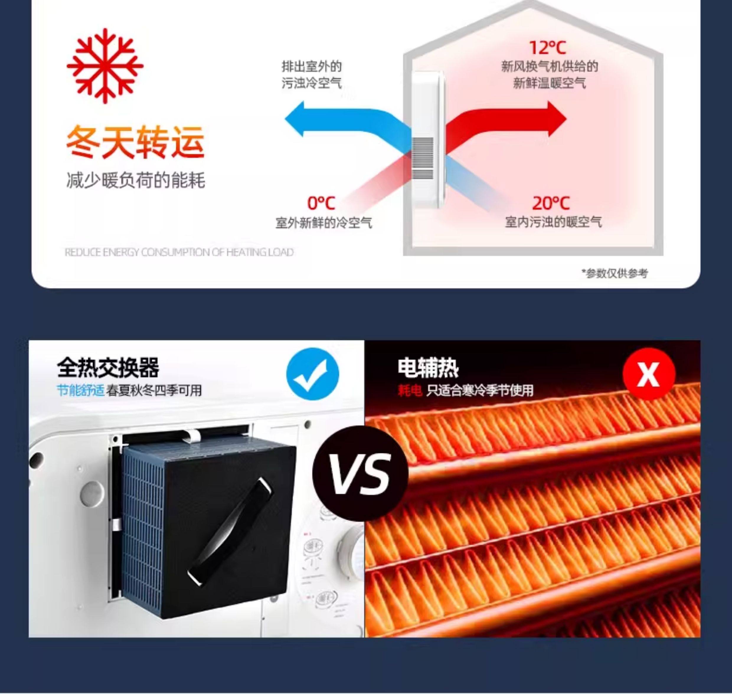 2024 New Model Two-Way Airflow Fresh Air System for Home Whole-House Ventilation and Air Exchange Machine, Indoor Wall-Mounted Formaldehyde Removal Smart Device