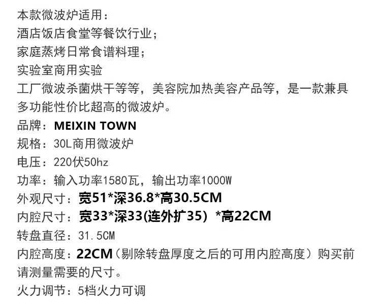 Microwave Oven for Home Use, 30 Liters, Optional Large Capacity, Commercial Turntable Heating, Knob Control, Defrosting, Kitchen Appliance