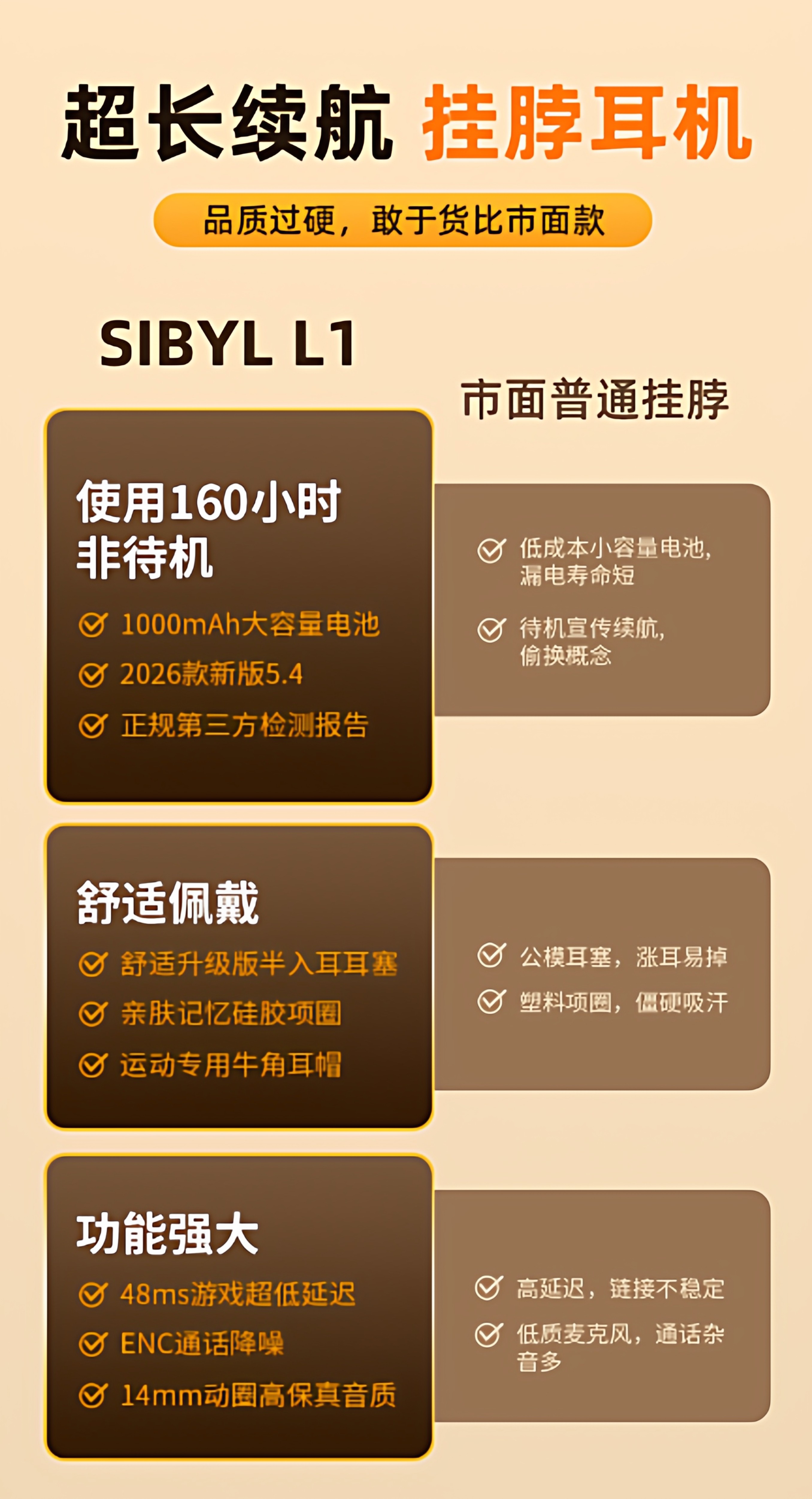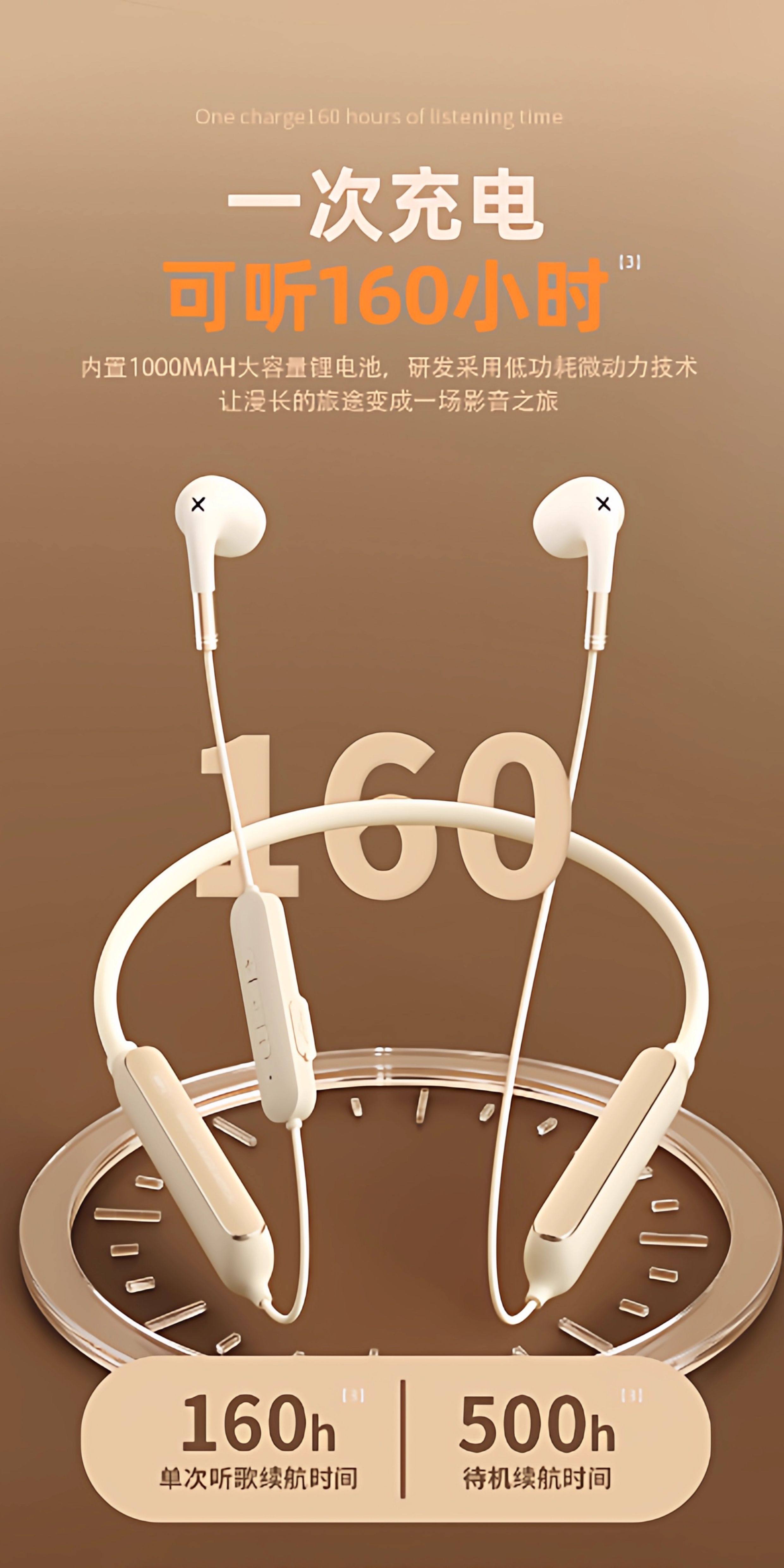 Neckband Bluetooth Earphones, Wireless, Semi-In-Ear, Long Battery Life, Suitable for Sports and Running, Large Battery, 2026 New Model