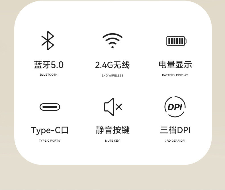 | Color Classification | Milk Tea Color Mouse[Bluetooth Dual-Mode Version + Typec Charging + Power Display + Low Noise Buttons],Milk Tea Color + Mouse Pad[Bluetooth Dual-Mode Version + Typec Charging + Power Display + Low Noise Buttons],Business Gray Mouse[Bluetooth Dual-Mode Version + Typec Charging + Power Display + Low Noise Buttons],Business Gray + Mouse Pad[Bluetooth Dual-Mode Version + Typec Charging + Power Display + Low Noise Buttons] |