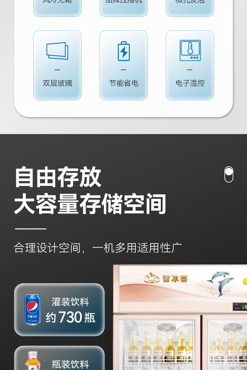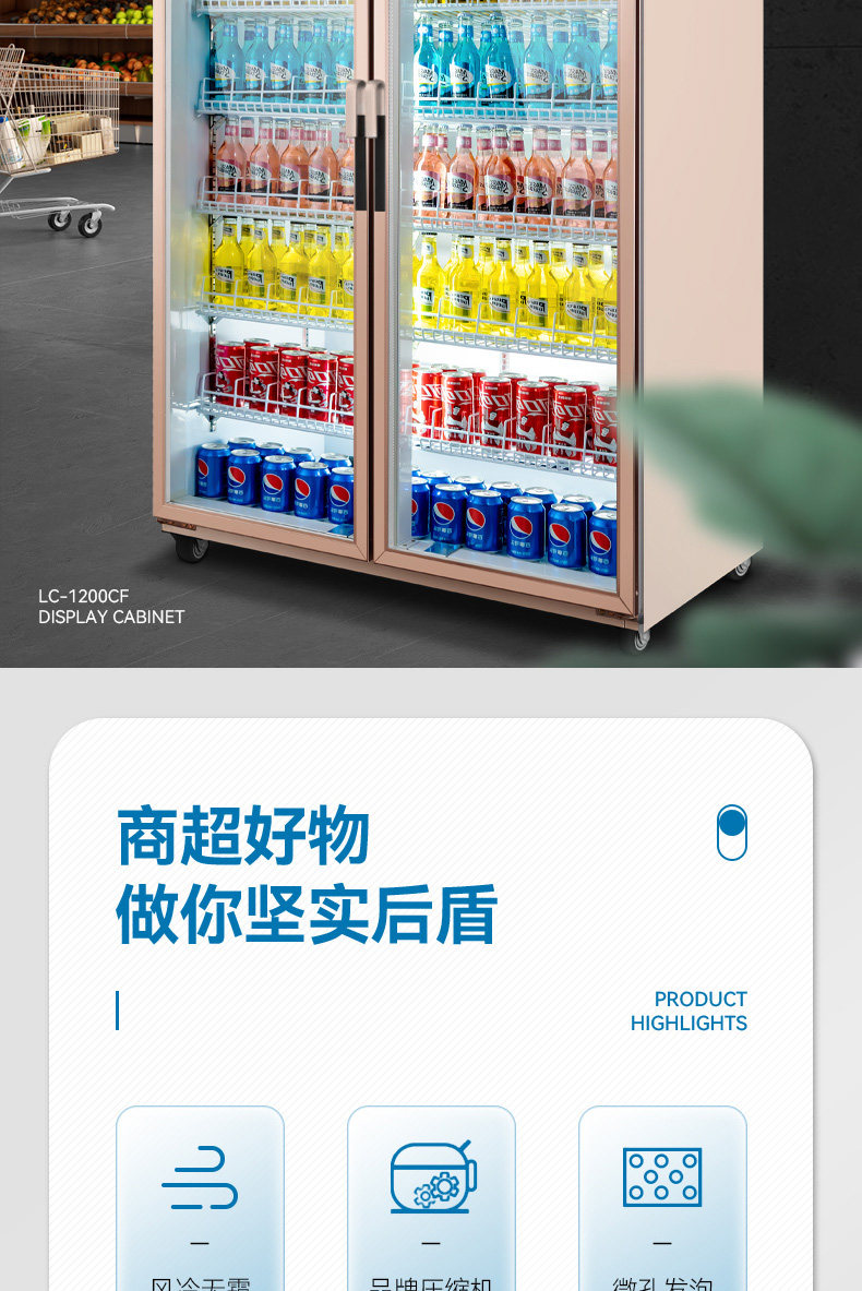 Smart Ice Beverage Display Cabinet Refrigerated Fresh-Keeping Freezer Large Capacity Double-Door Supermarket Vertical Single-Door Beer Freezer