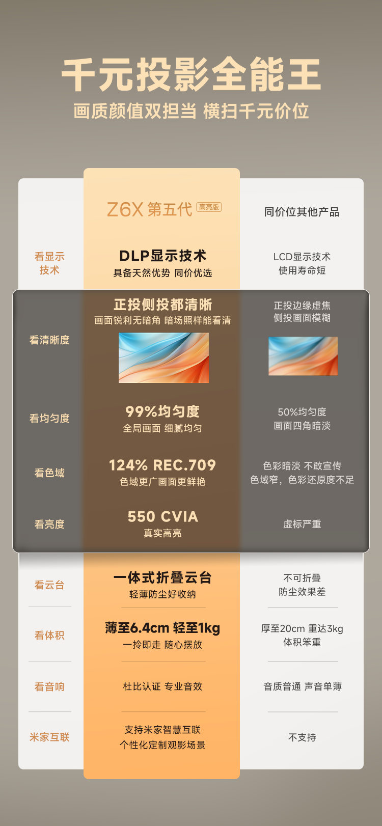 | Color Classification | Xgimi Z6X Highlight Edition/550Cvia Home Projection Set Pre-Order/Deposit,Xgimi Z6X Highlight Edition[Fifth Generation]Standalone Unit + HDMI High-Definition Cable,Xgimi Z6X Highlight Edition[Fifth Generation]Standalone + Hd 100inch Portable Curtain,Xgimi Z6X High Brightness 5Th Generation + Floor Stand + Hd Cable,Xgimi Z6X High Brightness 5Th Generation + Floor Sofa Stand + Hd Cable,Xgimi Z6X High Brightness 5Th Generation + Ceiling Mount Bracket,Xgimi Z6X High Brightness 5Th Generation + Floor Stand + 100-Inch Dual-Purpose Floor Stand Screen,Xgimi Z6X High Brightness 5Th Generation + Floor Stand + 100inch Hd 4K Electric Screen,Xgimi Z6X High Brightness 5Th Generation + Ceiling Mount + 100inch Hd 4K Electric Projector Screen,Xgimi Z6X Highlight Edition 5Th Generation[Global Overseas Version]+Send Global Conversion Head,Xgimi Z6X Highlight Edition 5Th Generation[Global Overseas Version]+Overseas Transformer[110V Voltage Available],Xgimi Z6X Highlight Edition 5Th Generation[Global Overseas Version]+Floor Stand+Hd Cable,Xgimi Z6X High Brightness Edition 5Th Generation Projector (Standalone)[Exclusive to the Event] |