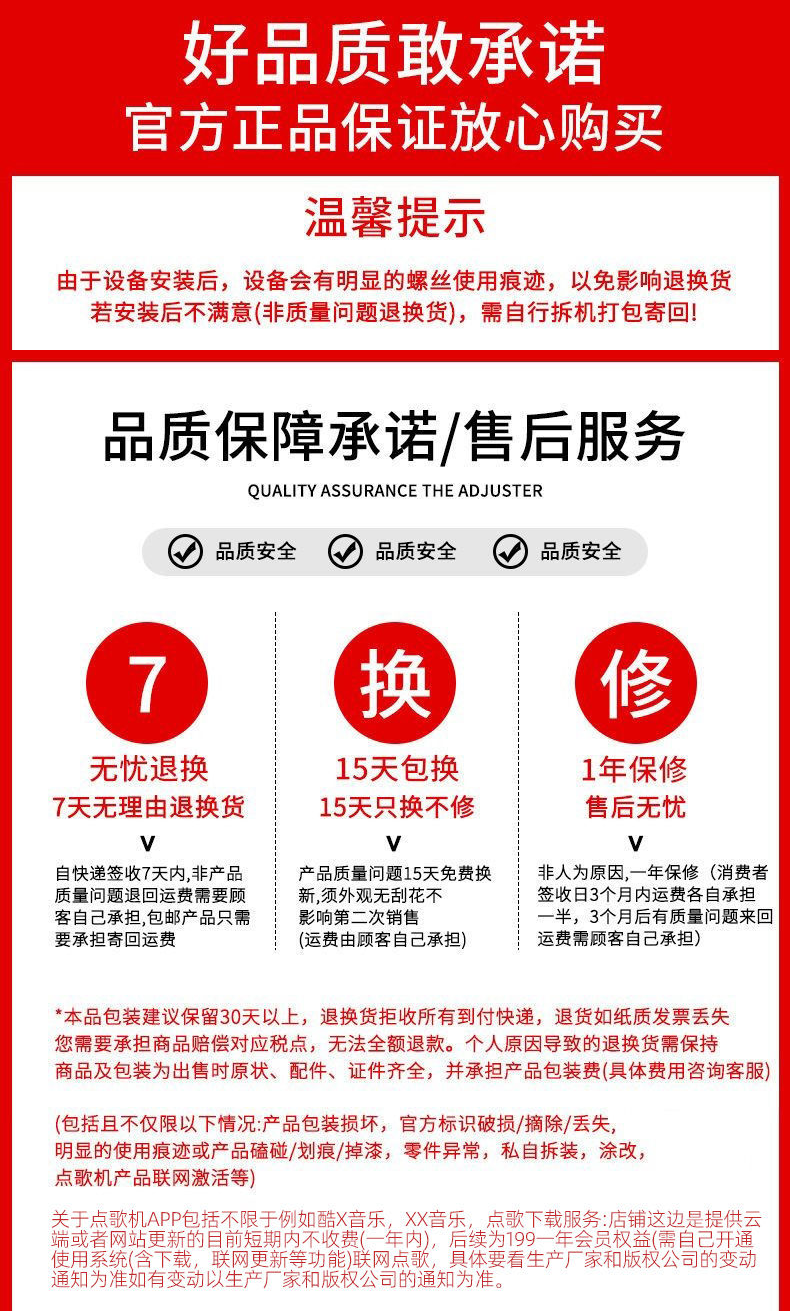 | Color Classification | [500g Desktop Model] 17inch Hd Touch Screen All-In-One Machine,[1Tb Desktop Model] 17inch Hd Touch Screen All-In-One Machine,[2Tb Desktop Model] 17inch Hd Touch Screen All-In-One Machine,[3Tb Desktop Model] 17inch Hd Touch Screen All-In-One Machine,[4Tb Desktop Model] 17inch Hd Touch Screen All-In-One Machine,[6Tb Desktop Model] 17inch Hd Touch Screen All-In-One Machine,[500g Desktop Model] 19.5inch Hd Touch Screen All-In-One Machine,[1Tb Desktop Model] 19.5inch Hd Touch Screen All-In-One Machine,[2Tb Desktop Model] 19.5inch Hd Touch Screen All-In-One Machine,[3Tb Desktop Model] 19.5inch Hd Touch Screen All-In-One Machine,[4Tb Desktop Model] 19.5inch Hd Touch Screen All-In-One Machine,[6Tb Desktop Model] 19.5inch Hd Touch Screen All-In-One Machine,[500g Desktop Model] 22inch Hd Touch Screen All-In-One Machine,[1Tb Desktop Model] 22inch Hd Touch Screen All-In-One Machine,[2Tb Desktop Model] 22inch Hd Touch Screen All-In-One Machine,[3Tb Desktop Model] 22inch Hd Touch Screen All-In-One Machine,[4Tb Desktop Model] 22inch Hd Touch Screen All-In-One Machine,[6Tb Desktop Model] 22inch Hd Touch Screen All-In-One Machine,[Vertical Model] 18inch Infrared Screen 500g Memory Can Store 10,000 Songs,[Vertical Model] 18inch Infrared Screen 1t Memory Can Store 20,000 Songs,[Vertical Model] 18inch Infrared Screen 2t Memory Can Store 40,000 Songs,[Vertical Model] 18inch Infrared Screen 3t Memory Can Store 60,000 Songs,[Vertical Model] 18inch Infrared Screen 4t Memory Can Store 80,000 Songs,[Vertical Model] 18inch Infrared Screen 6t Memory Can Store 120,000 Songs,[Luxury Vertical Model] 20inch Capacitive Screen 500g Memory Can Store 10,000 Songs,[Luxury Vertical Model] 20inch Capacitive Screen 1t Memory Can Store 20,000 Songs,[Luxury Vertical Model] 20inch Capacitive Screen 2t Memory Can Store 40,000 Songs,[Luxury Vertical Model] 20inch Capacitive Screen 3t Memory Can Store 60,000 Songs,[Luxury Vertical Model] 20inch Capacitive Screen 4t Memory Can Store 60,000 Songs,[Luxury Vertical Model] 20inch Capacitive Screen 6t Memory Can Store 120,000 Songs,[Luxury Vertical Model] 22inch Capacitive Screen 500g Memory Can Store 10,000 Songs,[Luxury Vertical Model] 22inch Capacitive Screen 1t Memory Can Store 20,000 Songs,[Luxury Vertical Model] 22inch Capacitive Screen 2t Memory Can Store 40,000 Songs,[Luxury Vertical Model] 22inch Capacitive Screen 3t Memory Can Store 60,000 Songs,[Luxury Vertical Model] 22inch Capacitive Screen 4t Memory Can Store 80,000 Songs,[Luxury Vertical Model] 22inch Capacitive Screen 6t Memory Can Store 120,000 Songs,[500g Desktop Model] 19.5inch All-In-One Machine with Built-In Dsp Microphone Reverb,[1t Desktop Model] 19.5inch All-In-One Machine with Built-In Dsp Microphone Reverb,[2t Desktop Model] 19.5inch All-In-One Machine with Built-In Dsp Microphone Reverb,[3t Desktop Model] 19.5inch All-In-One Machine with Built-In Dsp Microphone Reverb,[4t Desktop Model] 19.5inch All-In-One Machine with Built-In Dsp Microphone Reverb,[6t Desktop Model] 19.5inch All-In-One Machine with Built-In Dsp Microphone Reverb,[500g Desktop Model] 22inch All-In-One Machine with Built-In Dsp Microphone Reverb,[1t Desktop Model] 22inch All-In-One Machine with Built-In Dsp Microphone Reverb,[2t Desktop Model] 22inch All-In-One Machine with Built-In Dsp Microphone Reverb,[3t Desktop Model] 22inch All-In-One Machine with Built-In Dsp Microphone Reverb,[4t Desktop Model] 22inch All-In-One Machine with Built-In Dsp Microphone Reverb,[6t Desktop Model] 22inch All-In-One Machine with Built-In Dsp Microphone Reverb,[500g Vertical Model] 20inch All-In-One Machine with Built-In Dsp Microphone Reverb,[1t Vertical Model] 20inch All-In-One Machine with Built-In Dsp Microphone Reverb,[2t Vertical Model] 20inch All-In-One Machine with Built-In Dsp Microphone Reverb,[3t Vertical Model] 20inch All-In-One Machine with Built-In Dsp Microphone Reverb,[4t Vertical Model] 20inch All-In-One Machine with Built-In Dsp Microphone Reverb,[6t Vertical Model] 20inch All-In-One Machine with Built-In Dsp Microphone Reverb,[500g Vertical Model] 22inch All-In-One Machine with Built-In Dsp Microphone Reverb,[1t Vertical Model] 22inch All-In-One Machine with Built-In Dsp Microphone Reverb,[2t Vertical Model] 22inch All-In-One Machine with Built-In Dsp Microphone Reverb,[3t Vertical Model] 22inch All-In-One Machine with Built-In Dsp Microphone Reverb,[4t Vertical Model] 22inch All-In-One Machine with Built-In Dsp Microphone Reverb,[6t Vertical Model] 22inch All-In-One Machine with Built-In Dsp Microphone Reverb,[Luxury Vertical Model] 22inch Capacitive Screen 3t Memory Can Store 60,000 Songs (This Is a Personalized Configuration Price Difference, Please Contact Customer Service),[Luxury Vertical Model] 22inch Capacitive Screen 3t Memory Can Store 60,000 Songs (This Is a Personalized Configuration Price Difference, Please Contact Customer Service |