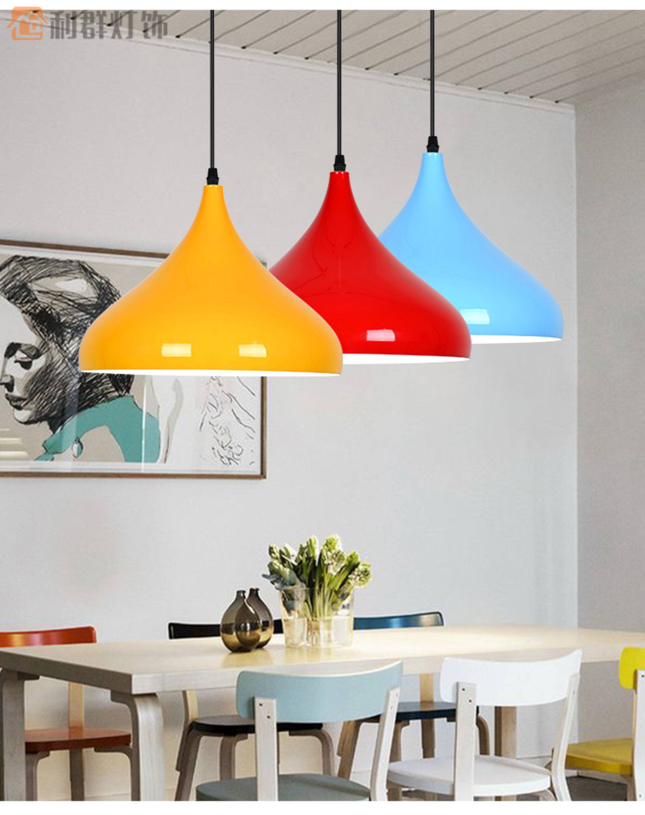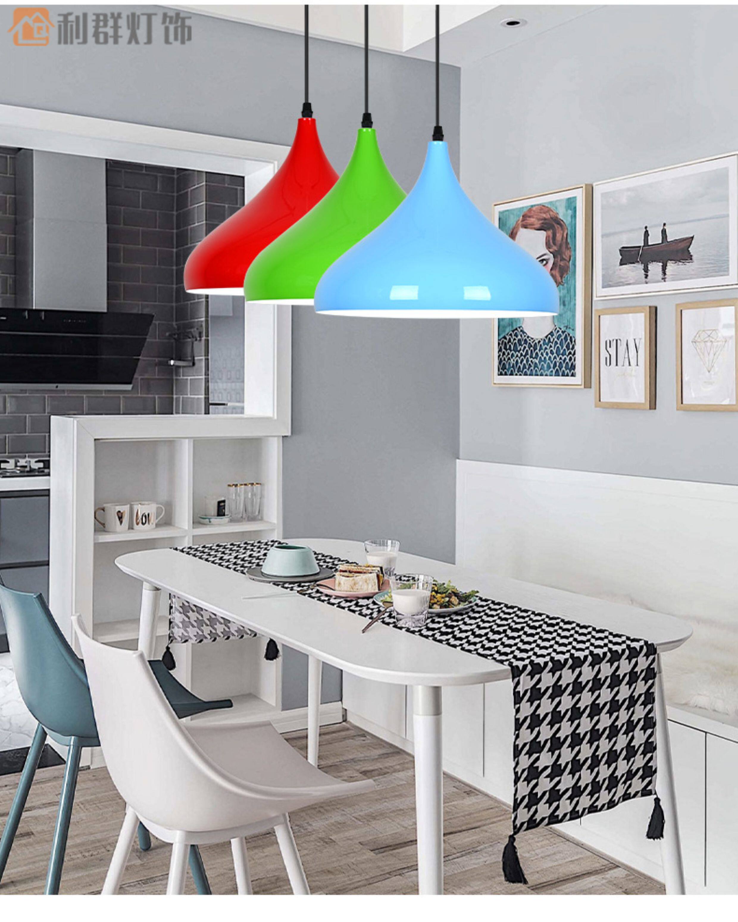 Industrial Style Single-Head Pendant Light for Restaurants, Dining Establishments, Hot Pot Shops, Commercial Lighting Fixtures with Colorful Lampshades