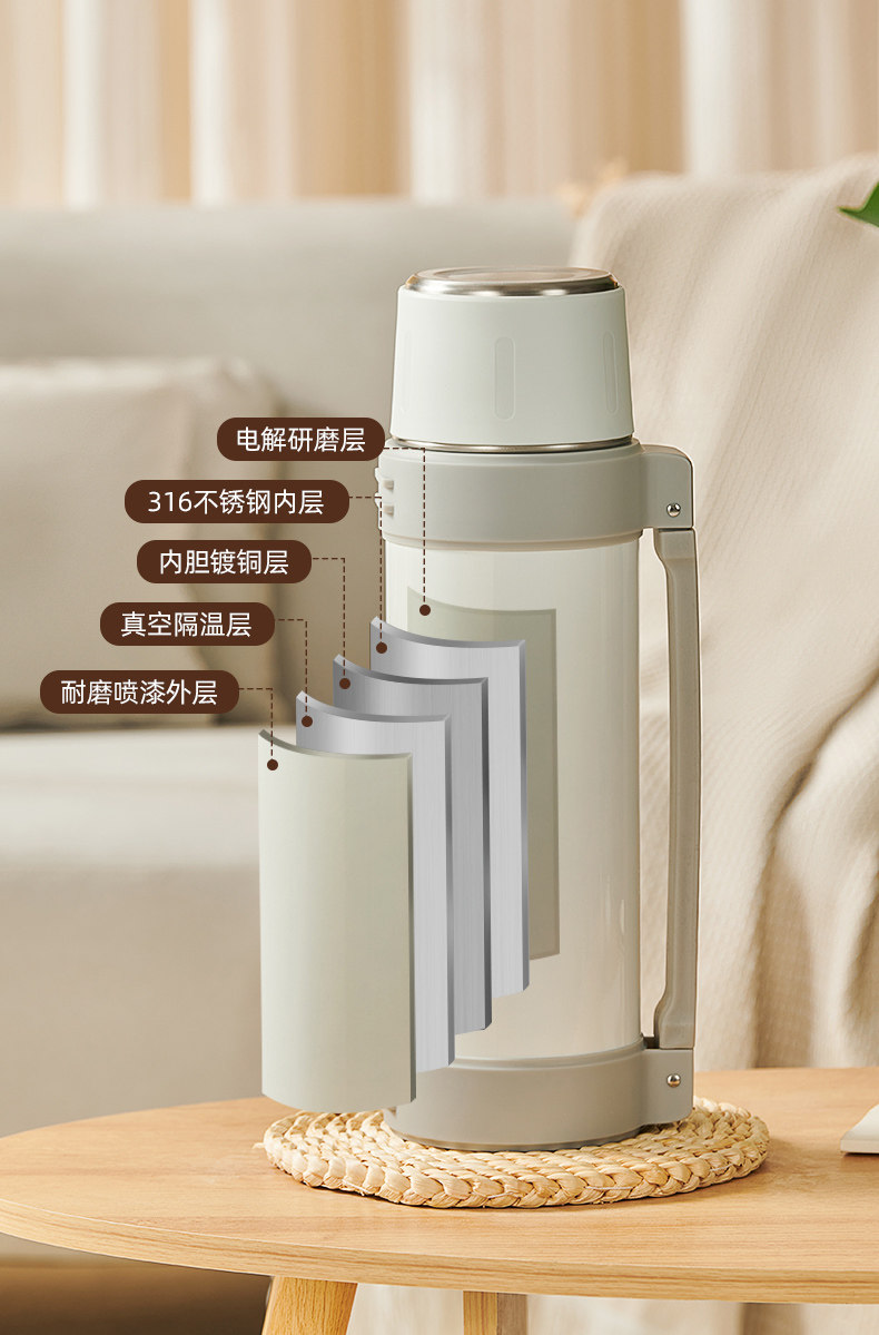British Mingjue Thermos Large-Capacity 316 Stainless Steel Thermos Cup for Men and Women Outdoor Travel Car-Mounted Convenient Water Kettle