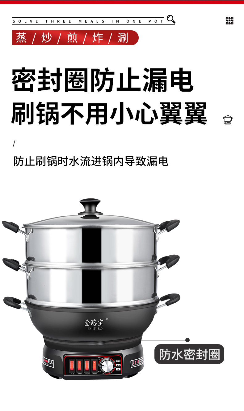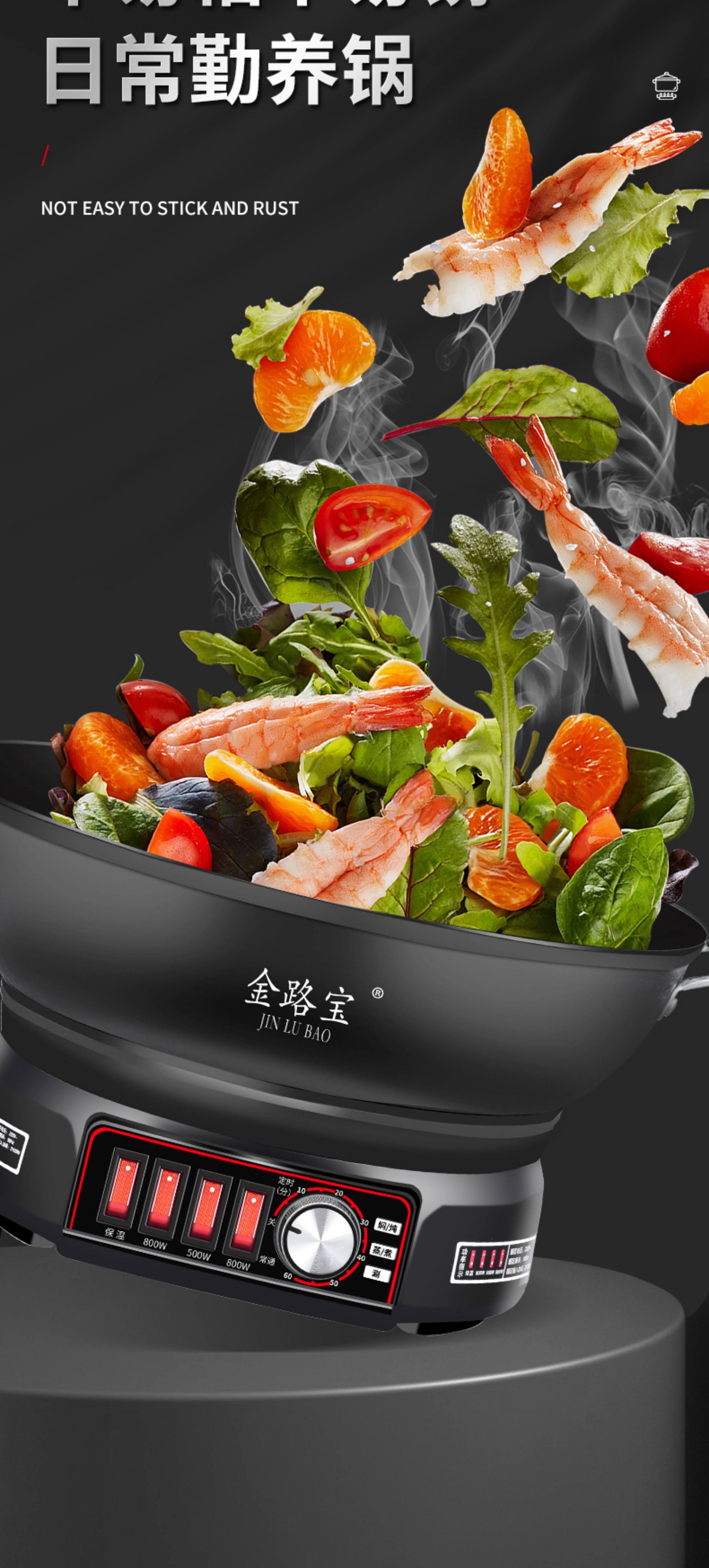 Electric Wok, Multifunctional Household Electric Hot Pot, Cast Iron Electric Pot for Stir-Frying, Steaming, Boiling, Frying, Plug-In Electric Cooking Pot, Non-Stick Pan