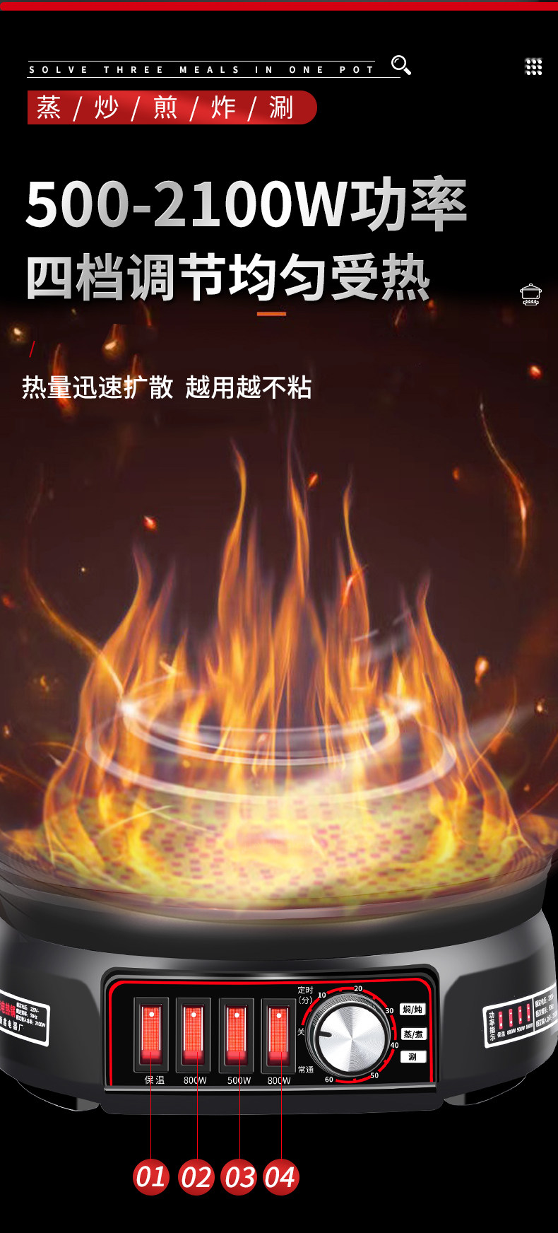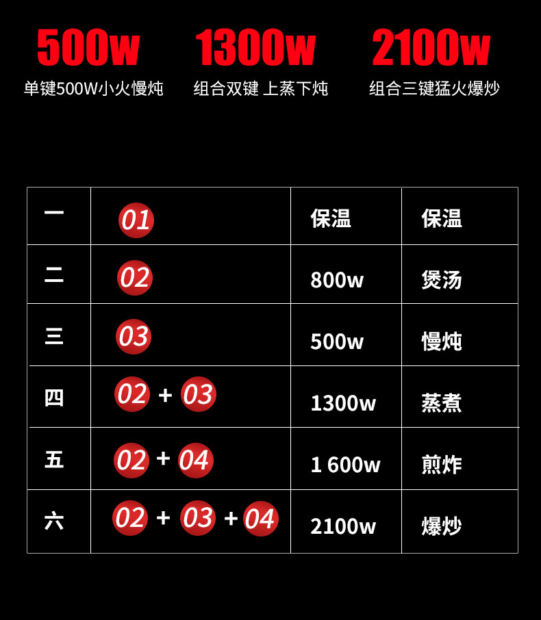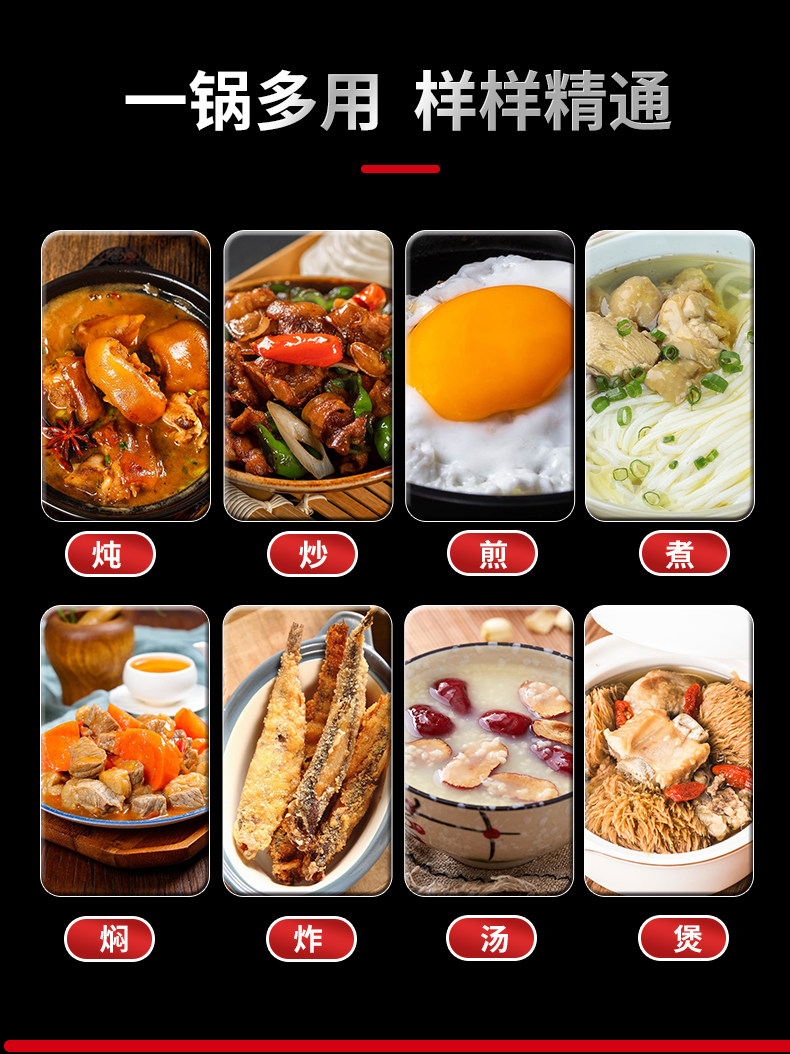 | Electric Heating/Hot Pot Function | Fry,Fried,Cook,Fried,Soup,Steam,Stew,Cook Noodles,Hot Pot,Simmer |