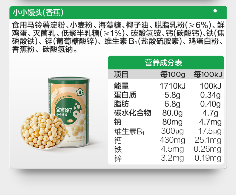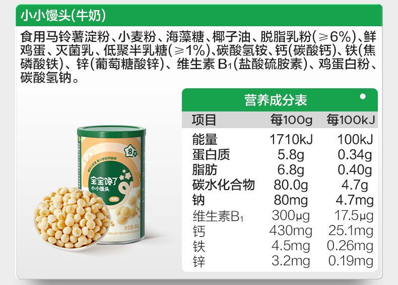 | Taste | [6 Pieces | Only 14.9/Can | Free Yogurt + Puffs*2] Baby Standard Steamed Buns (Milk*3+Banana*3),[6 Pieces | Only 14.9/Can | Free Yogurt + Puffs*2] Baby Standard Steamed Buns (Milk Flavor*6),[6 Pieces | Only 13.9/Piece | Free Yogurt + Puffs*2] Baby Standard Steamed Buns (Milk*2) + Finger Puffs (Original Flavor*2) + Rice Cakes (Original Flavor*2),[4 Cans | Only 15.9/Can | Free Yogurt + Puffs] Baby Standard Steamed Buns (Milk Flavor*2+Banana Flavor*2),[4 Cans | Only 15.9/Can | Free Yogurt + Puffs] Baby Standard Steamed Buns (Milk Flavor*4),【4 Cans | Only $15.9/Can | Free Yogurt + Puffs】Infant Standard Mini Buns (Banana Flavor * 4),【2 Cans | Free Puffs】Infant Standard Mini Buns (Milk Flavor + Banana Flavor),【2 Cans | Free Puffs】Baby Standard Mini Buns (Milk Flavor * 2),【2 Cans | Only $17.9/Can】Baby Standard Mini Buns (Milk Flavor + Banana Flavor),【2 Cans | Only $17.9/Can】Baby Standard Mini Buns (Milk Flavor * 2),【1 Can | Easily Dissolves, No Choking Hazard】Baby Standard Mini Buns (Milk Flavor),【1 Can | No Added White Sugar】Baby Standard Mini Buns (Banana Flavor) |