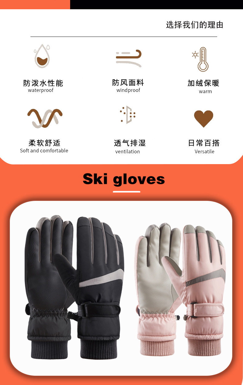 Women's Ski Gloves with Touch Screen, Cold-Proof, Waterproof, Winter Warm, Thickened Velvet, Windproof Gloves for Men, Outdoor Motorcycle Riding