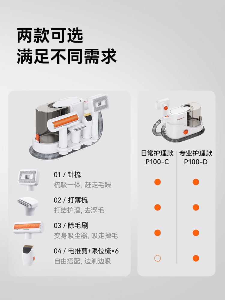 Uwant Pet Cat and Dog Cleaning and Grooming Machine Professional Electric Clipper Multifunctional Hair Trimmer Suction Comb P100