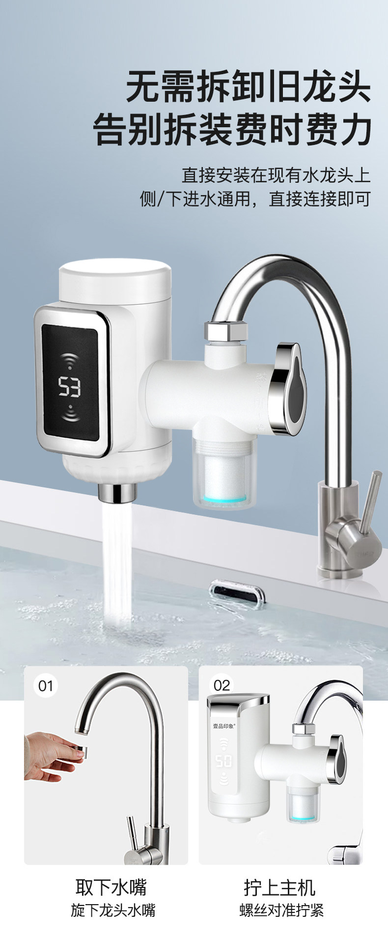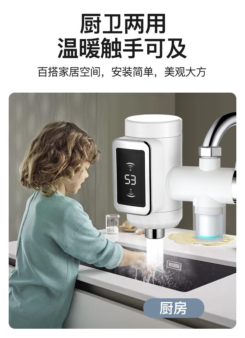 Instant Electric Water Heater Faucet, No Installation Required, Dual-Use for Hot and Cold Water, Fast Heating, Bathroom and Kitchen Model, Tap Water Heater
