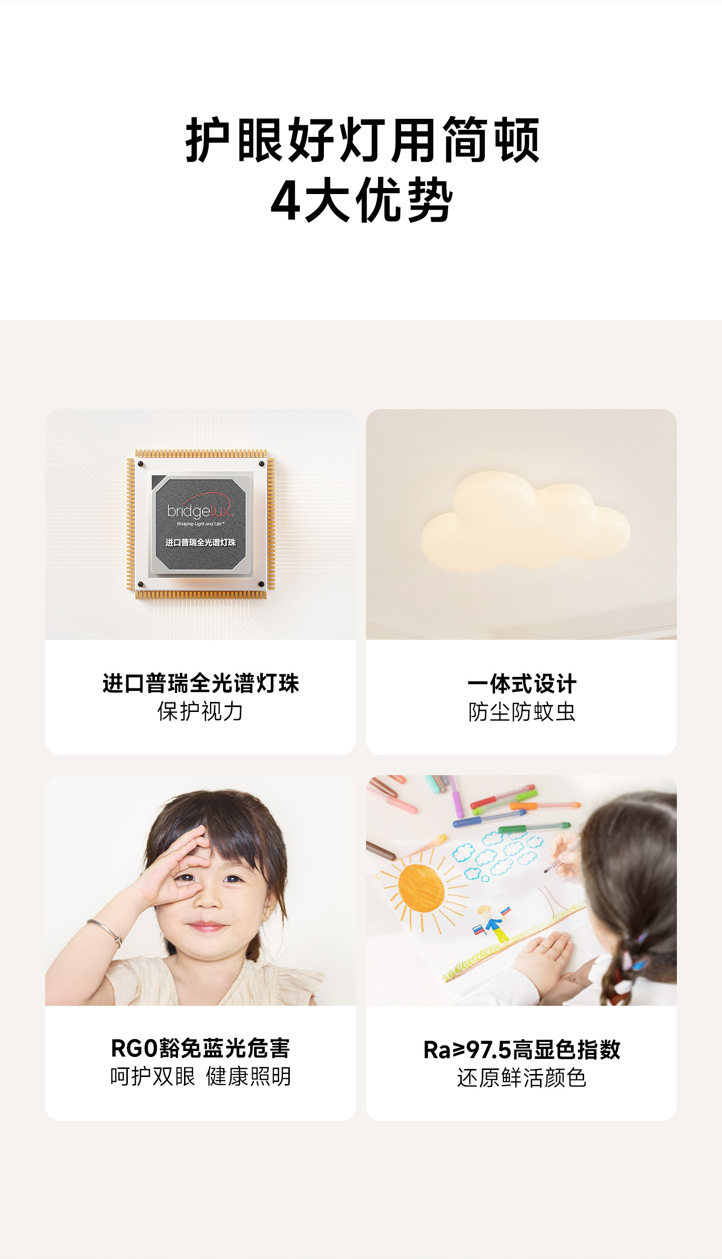 Jiandun Cream Cloud Ceiling Light Children's Room Bedroom Light Full Spectrum Creative Room Eye Protection Lamp