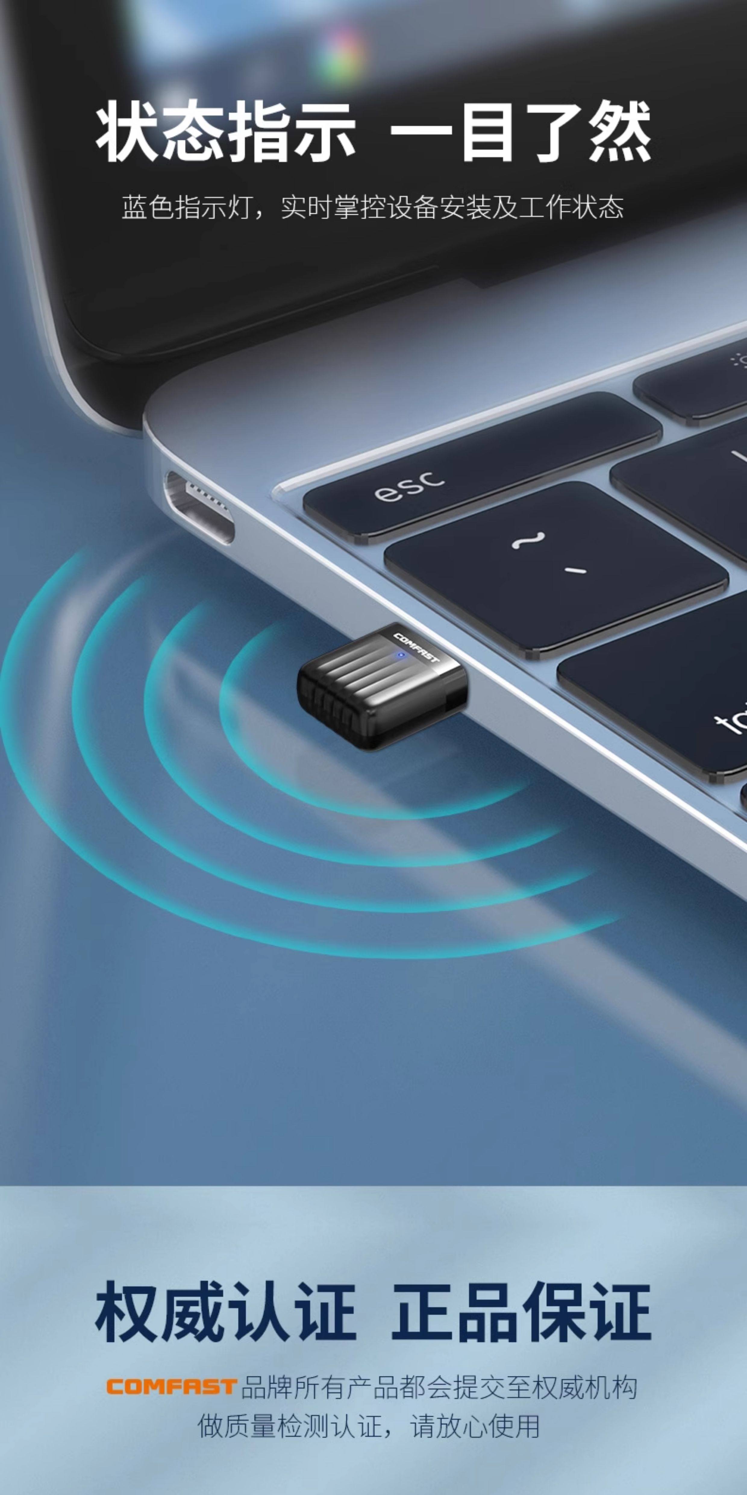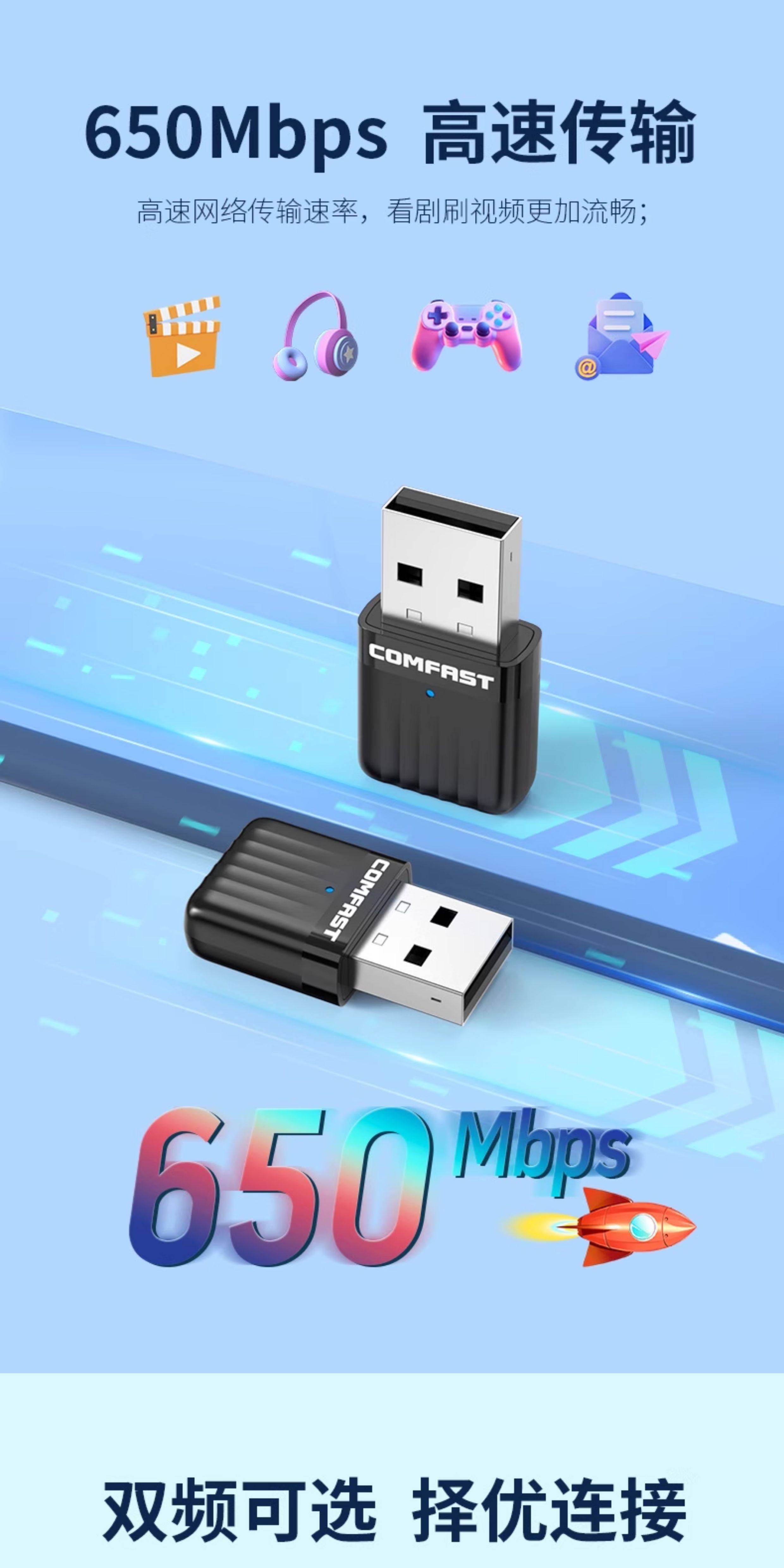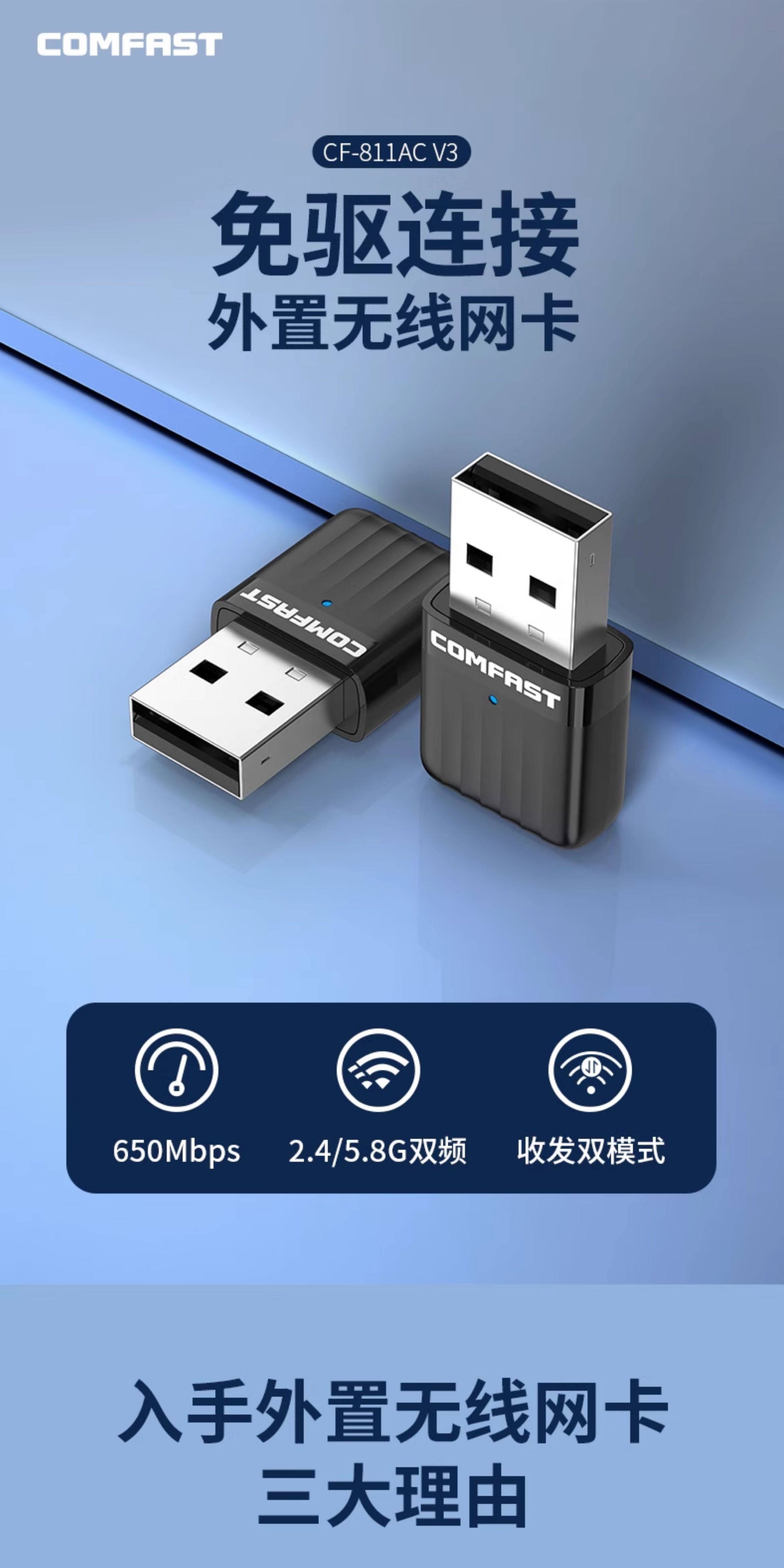 Comfast Wireless Network Card Desktop Wifi Receiver Driver-Free Dual-Band High-Speed USB Wireless Network Card Home Desktop Computer Notebook Portable Wireless Signal Transmitter Cf-811Acv3