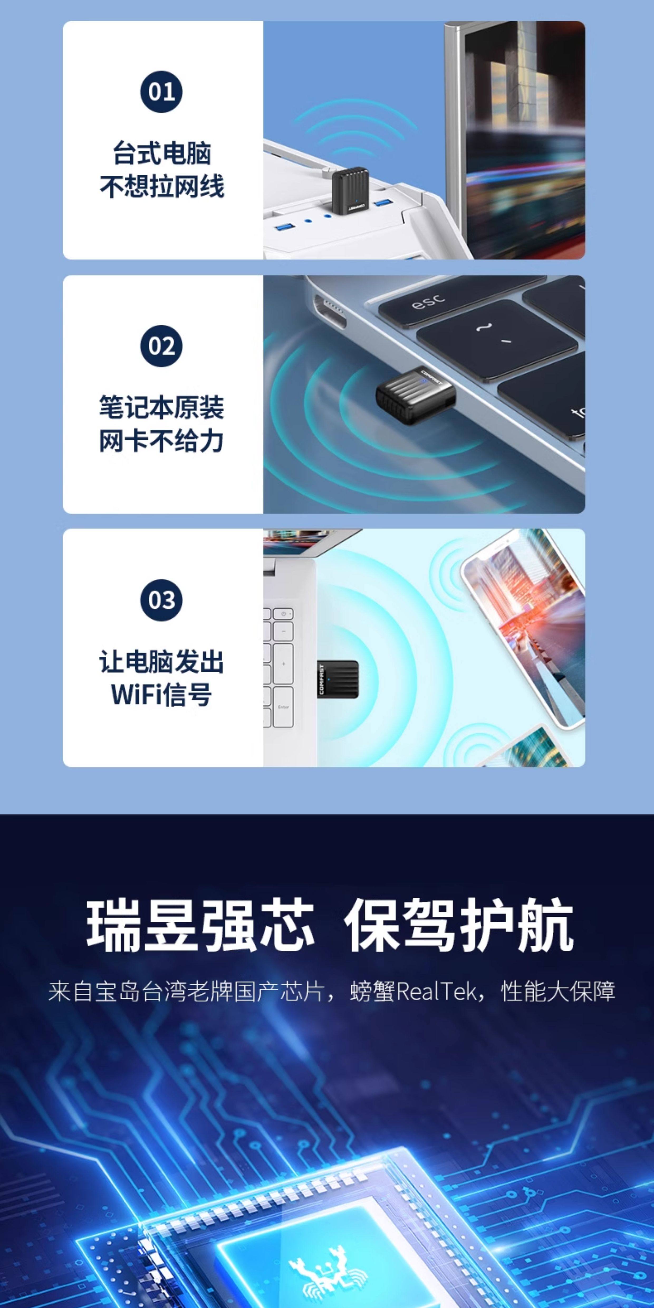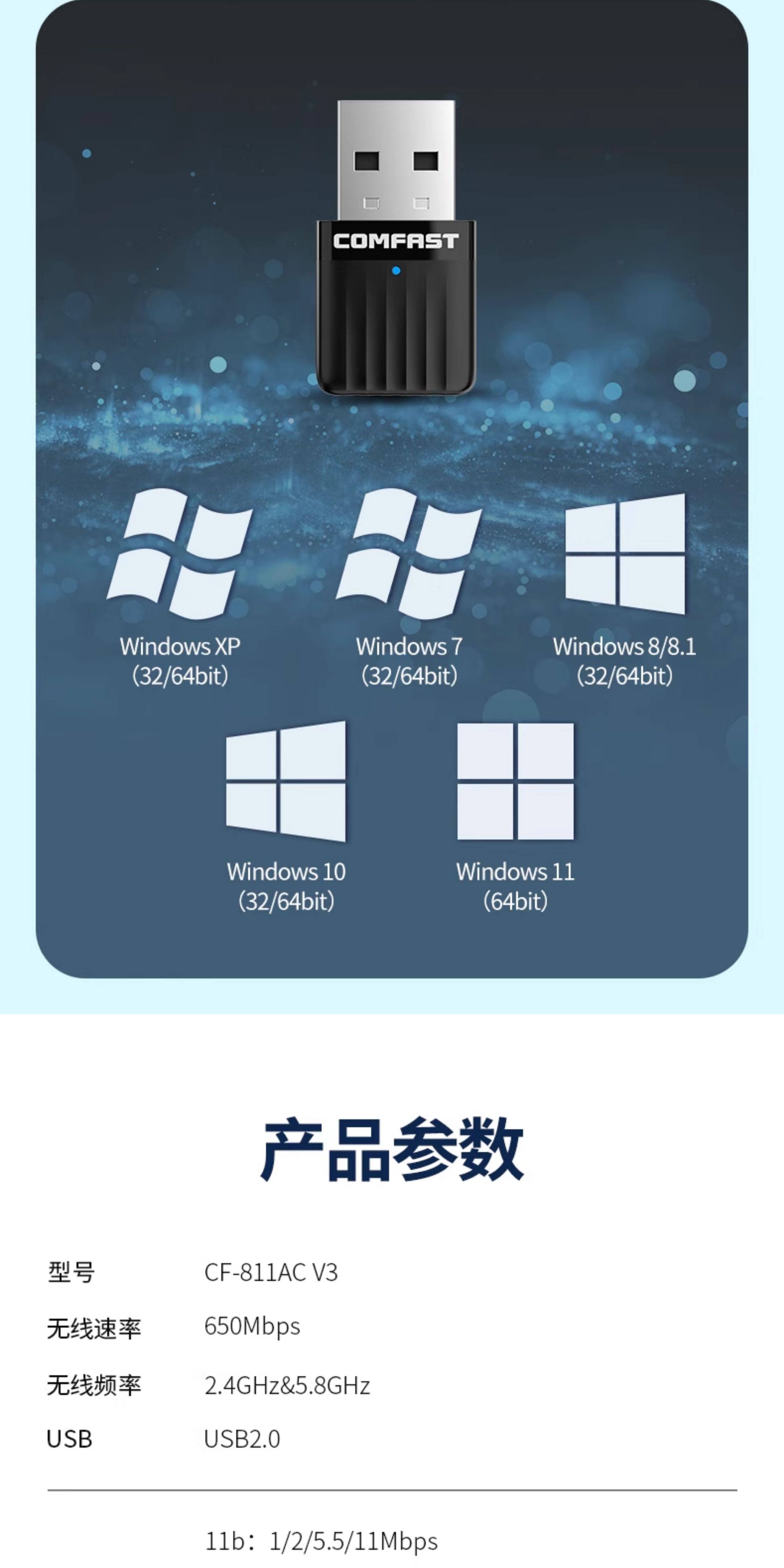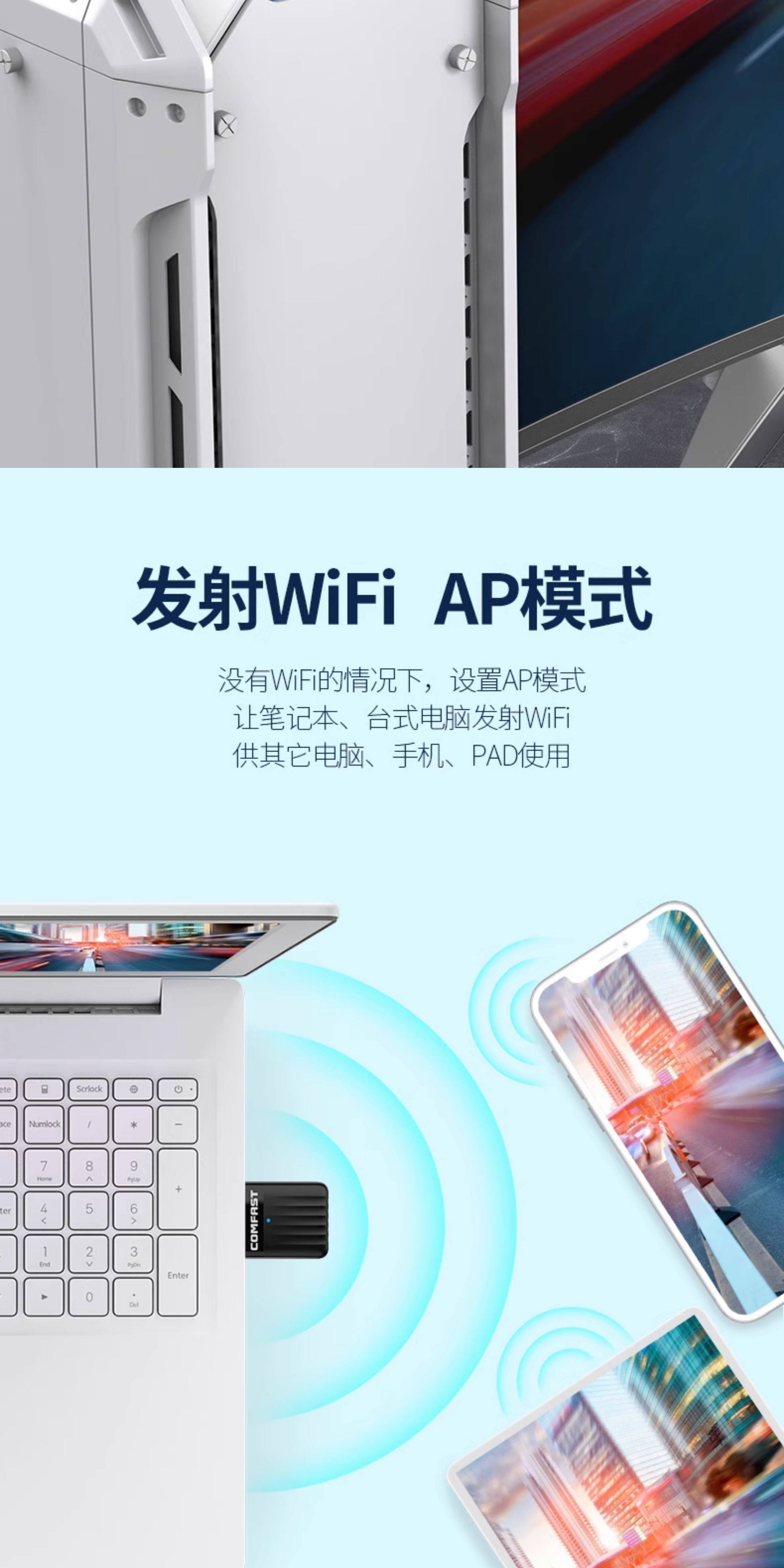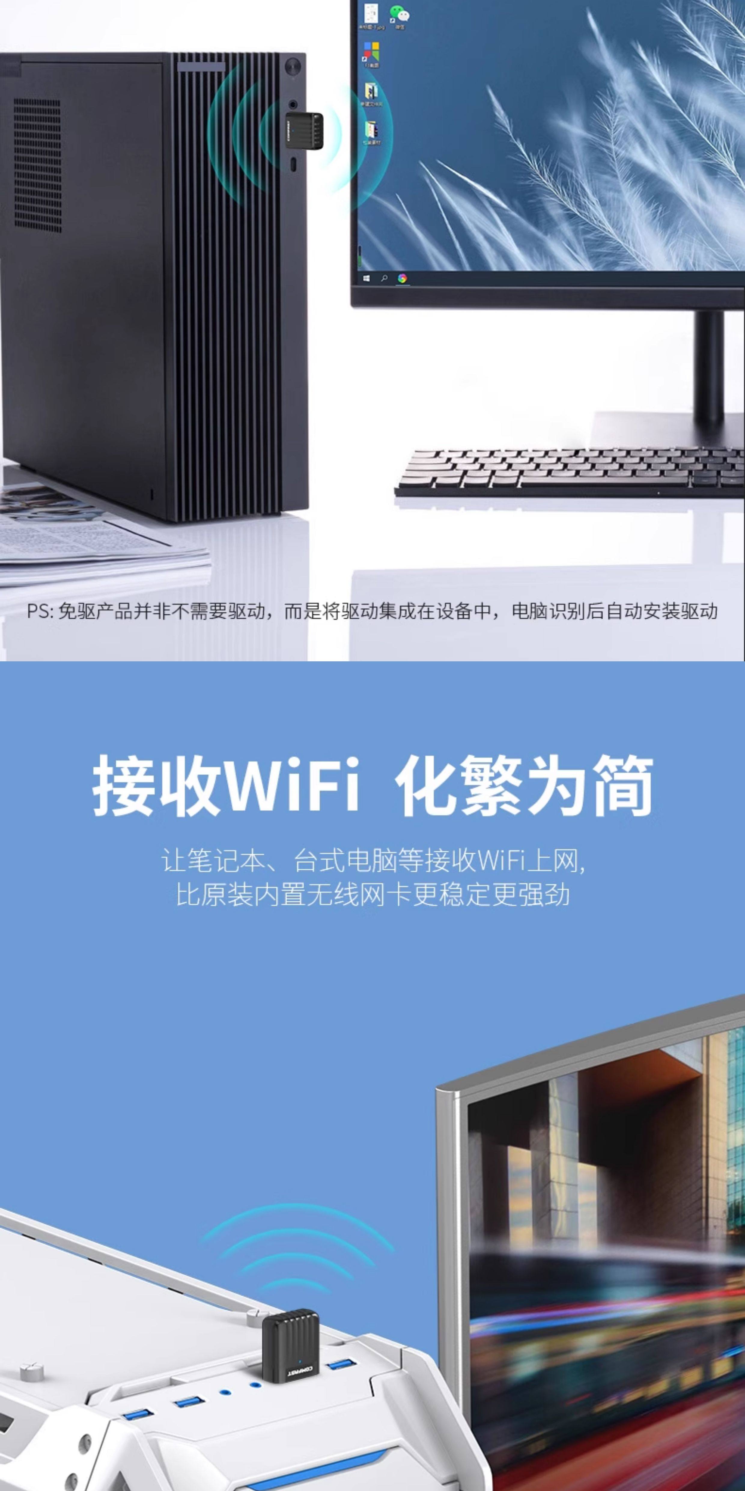 Comfast Wireless Network Card Desktop Wifi Receiver Driver-Free Dual-Band High-Speed USB Wireless Network Card Home Desktop Computer Notebook Portable Wireless Signal Transmitter Cf-811Acv3