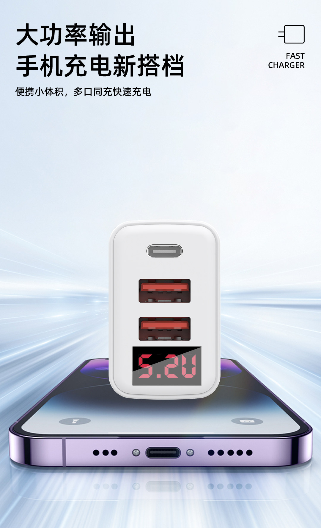 Multi-Port Pd Charging Head with Smart Digital Display, Automatic Power-Off When Fully Charged, USB Charger Suitable for Apple, Huawei, Vivo, Xiaomi, Oppo, Honor, Android Phones, Universal Charging Plug, Universal 5V2A