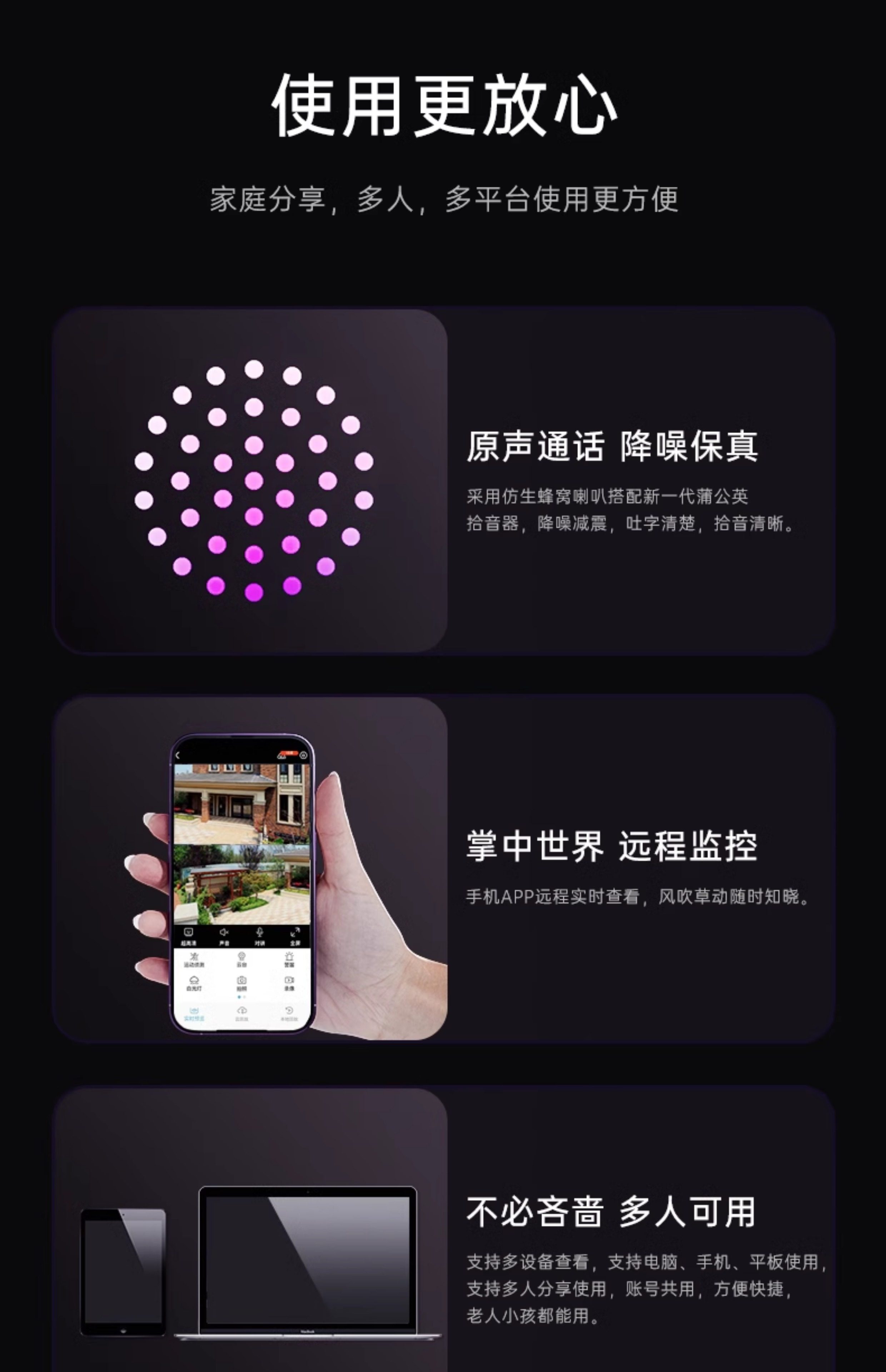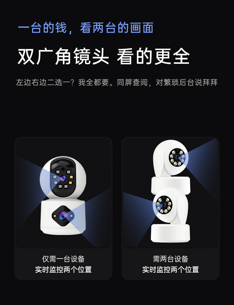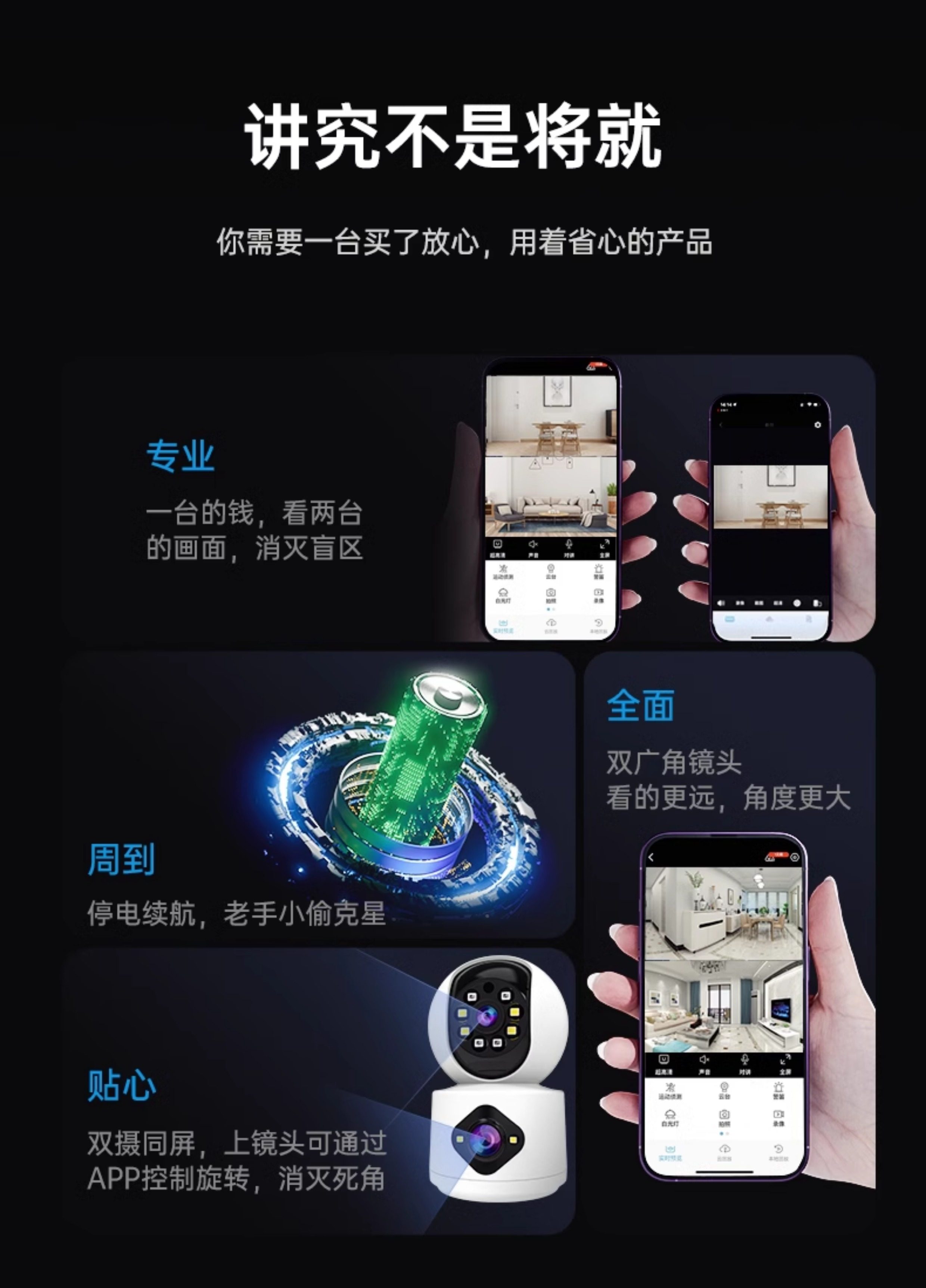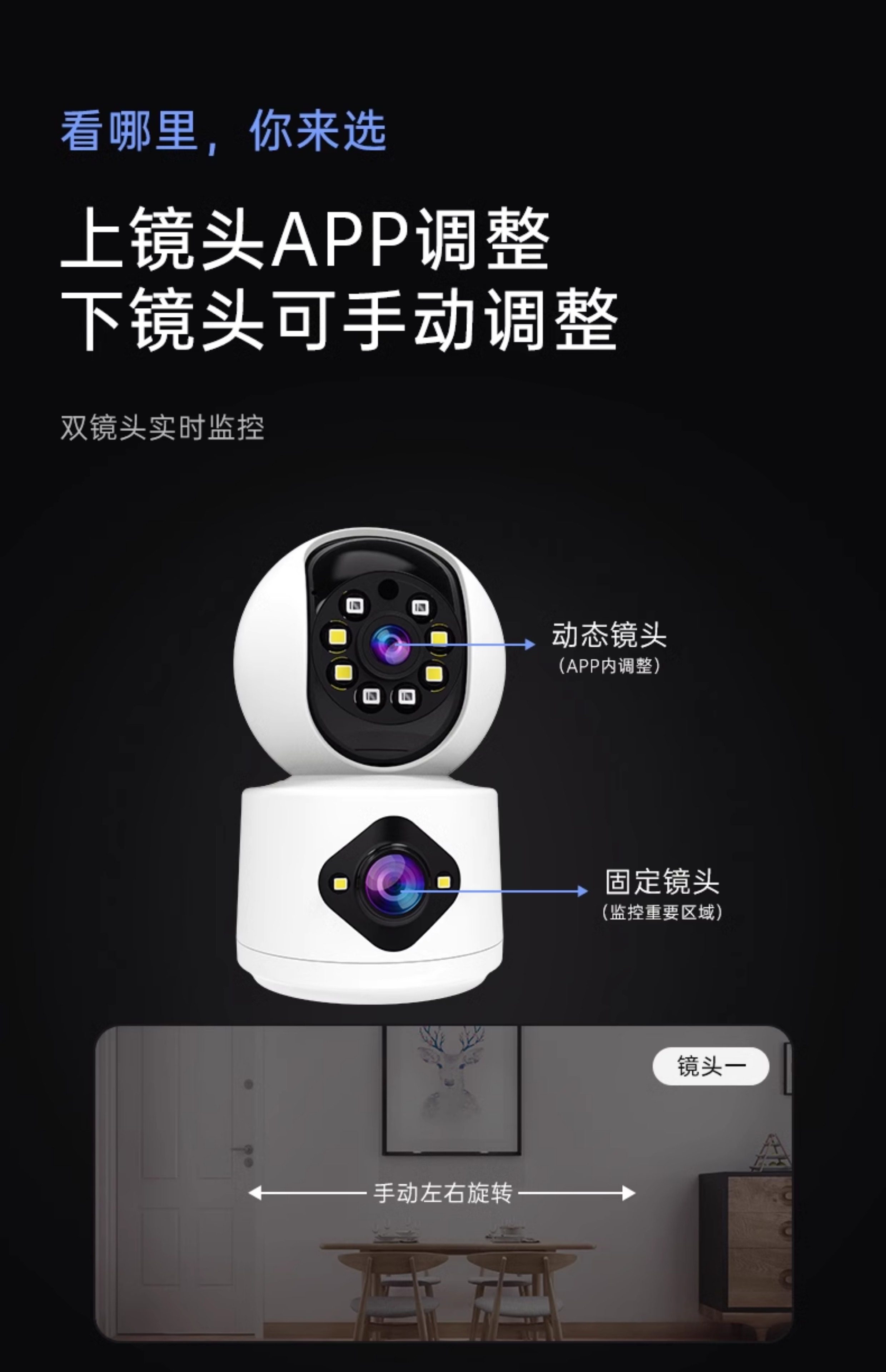 | Color Classification | Dual Camera Wifi Version[Dual Screen on the Same Screen,Ultra-Clear Picture Quality,Two-Way Voice,Smart Alarm,Nursing the Elderly and Children],Dual Camera 4g Version* Comes with 99 Years of Traffic[No Post-Production Fees,Ai Humanoid Detection,Commercial Anti-Theft Ptz Wireless All-In-One Machine for Home and Corridor Stores],Single Camera Wifi Version[Single Screen Monitoring,Hd Night Vision.Home Indoor Pet Cat Eye Photography],Dual Camera Wifi Version + Power Outage Battery Life[Continuous Recording after Power Failure,Mobile Phone Remote Monitoring,Full Color Night Vision],Dual Camera 4g Version* Comes with 99 Years of Traffic + Power Outage Battery Life[Continuous Recording after Power Failure,Supermarket Factory Panoramic View of Home and Yard],Single Camera Wifi Version + Power Outage Battery Life[Wide-Angle Field of View with Voice Intercom] |