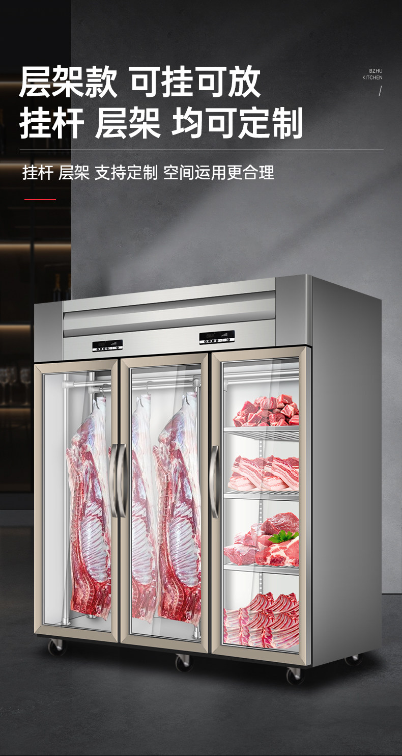 Ice Cast Hanging Meat Cabinet Commercial Fresh-Keeping Cabinet Pig, Sheep and Beef Freezing Display Cabinet Refrigerated Cold Fresh Vertical Meat Steak Acid Freezer