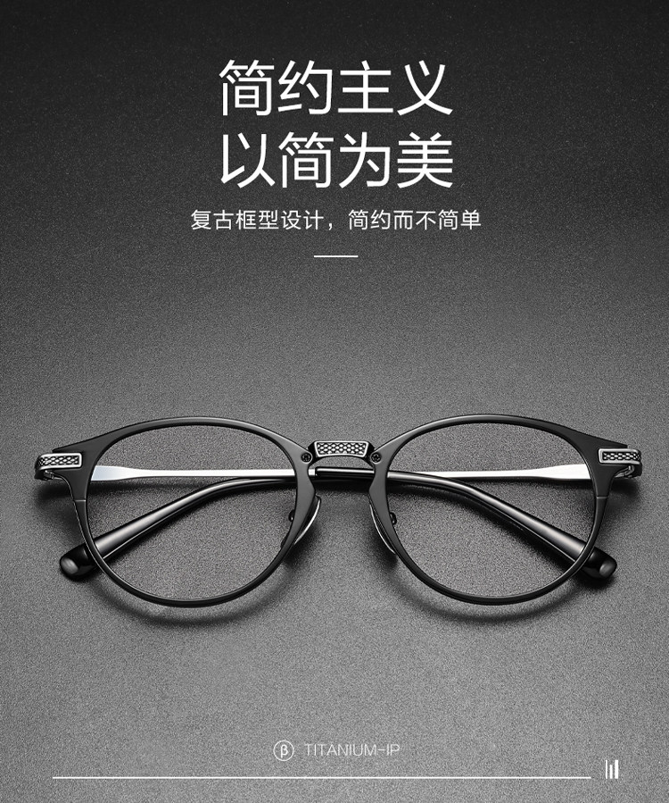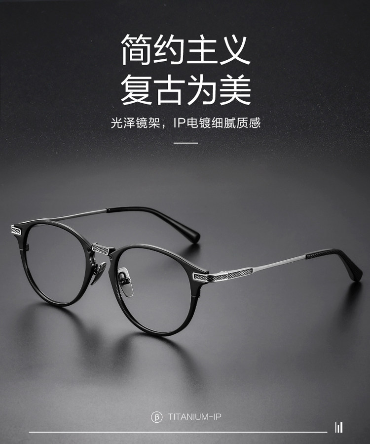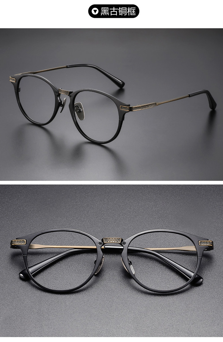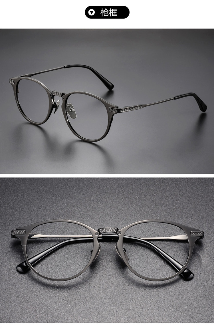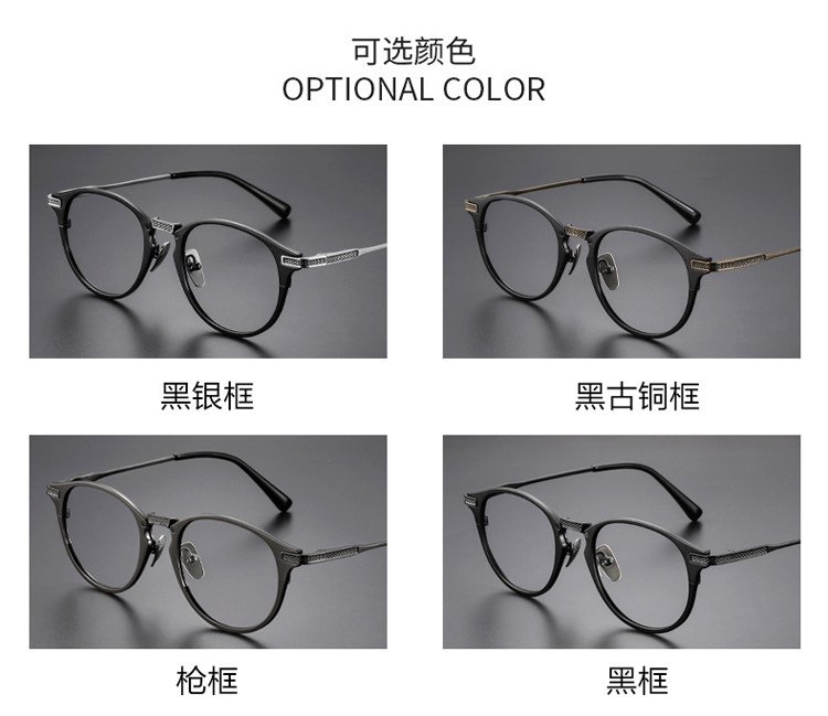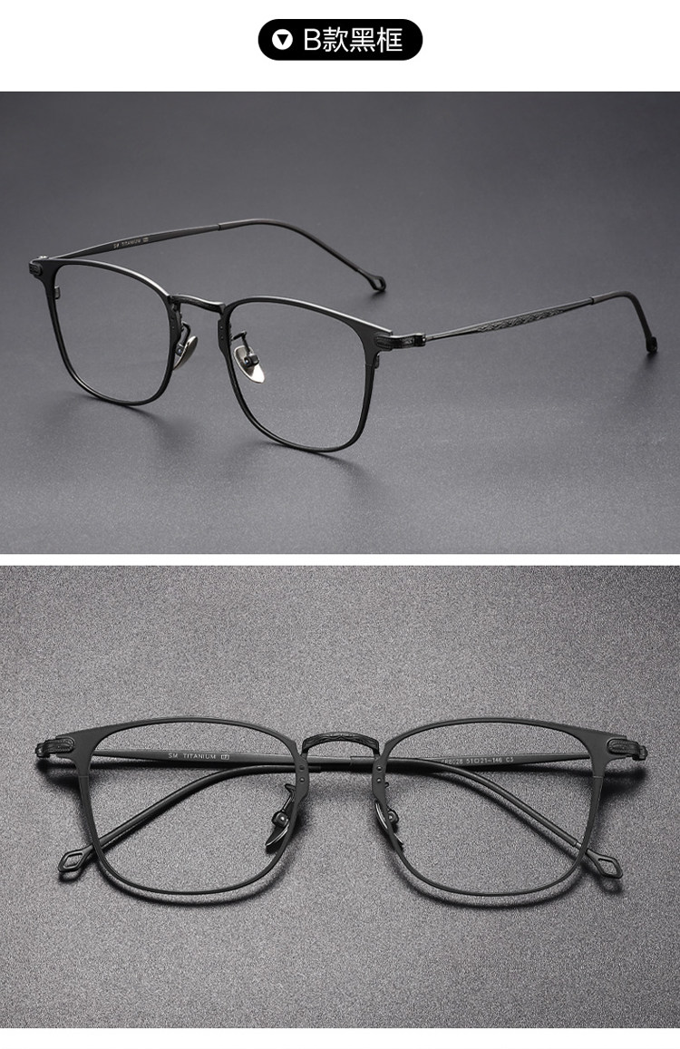 Jackie Chan Style Ultra-Light Pure Titanium Prescription Eyeglass Frames, Customizable Prescription, Men's Japanese Light Luxury Retro Frames for Large Faces