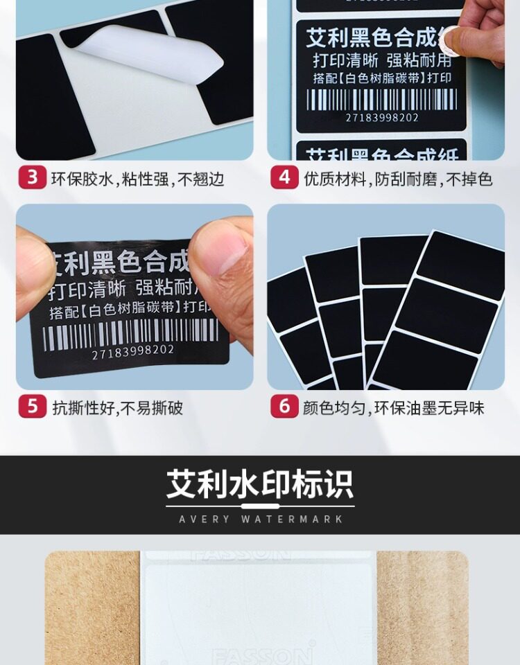 Xiaolangjia Black Pp Synthetic Paper Labels 100 80 70 65 60 50 40 30 Avery Adhesive Barcode Pvc Serial Number Equipment Electrical Appliance Nameplate Waterproof Tear-Resistant Printing Stickers