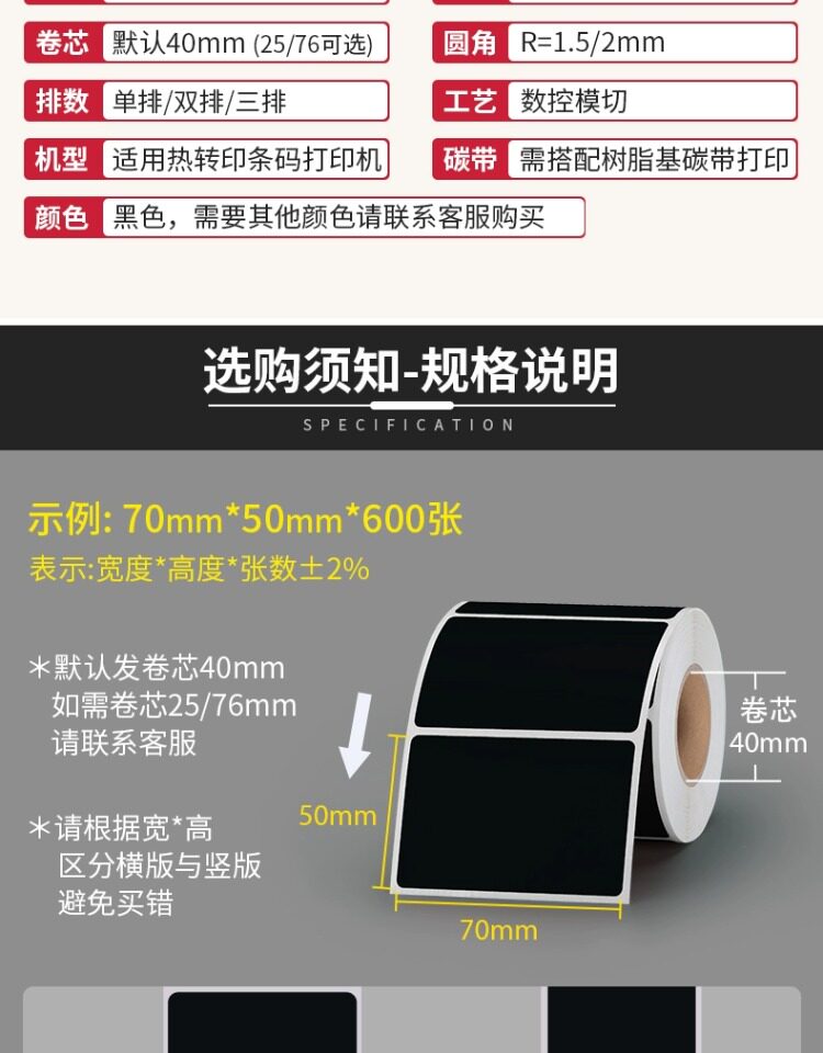 | Color Classification | White Resin Ribbon Width 110mm* 15m *W801 Trial Pack,Ultra-White Resin Ribbon Width 110mm* 15m *W802 Trial Pack,White Resin Ribbon Width 110mm* 50m *W801 Trial Pack,Ultra-White Resin Ribbon Width 110mm* 50m *W802 Trial Pack,Matt Gold Resin Ribbon Width 110mm* 50m *W805 Trial Pack,25*15mm*5000 Sheets/Roll, Three Rows Horizontal Version,30*20mm*1500 Sheets/Roll Single Row Horizontal Version,30*20mm*4500 Sheets/Roll, Three Rows Horizontal Version,35*15mm*1650 Sheets/Roll Single Row Horizontal Version,35*20mm*1500 Sheets/Roll Single Row Horizontal Version,35*25mm*1200 Sheets/Roll Single Row Horizontal Version,40*20mm*1500 Sheets/Roll Single Row Horizontal Version,40*20mm*3000 Sheets/Roll, Double Row Horizontal Version,40*30mm*1000 Sheets/Roll Single Row Horizontal Version,40*30mm*2000 Sheets/Roll, Double Row Horizontal Version,40*40mm*800 Sheets/Roll Single Row Square,45*20mm*1500 Sheets/Roll Single Row Horizontal Version,45*25mm*1200 Sheets/Roll Single Row Horizontal Version,45*30mm*1000 Sheets/Roll Single Row Horizontal Version,45*35mm*1000 Sheets/Roll Single Row Horizontal Version,50*20mm*1500 Sheets/Roll Single Row Horizontal Version,50*25mm*1200 Sheets/Roll Single Row Horizontal Version,50*30mm*1000 Sheets/Roll Single Row Horizontal Version,50*30mm*2000 Sheets/Roll, Double Row Horizontal Version,50*35mm*1000 Sheets/Roll Single Row Horizontal Version,50*40mm*800 Sheets/Roll Single Row Horizontal Version,55*20mm*1500 Sheets/Roll Single Row Horizontal Version,55*25mm*1200 Sheets/Roll Single Row Horizontal Version,55*30mm*1000 Sheets/Roll Single Row Horizontal Version,55*35mm*1000 Sheets/Roll Single Row Horizontal Version,60*20mm*1500 Sheets/Roll Single Row Horizontal Version,60*25mm*1200 Sheets/Roll Single Row Horizontal Version,60*30mm*1000 Sheets/Roll Single Row Horizontal Version,60*35mm*1000 Sheets/Roll Single Row Horizontal Version,60*40mm*800 Sheets/Roll Single Row Horizontal Version,60*50mm*600 Sheets/Roll Single Row Horizontal Version,65*20mm*1500 Sheets/Roll Single Row Horizontal Version,65*25mm*1500 Sheets/Roll Single Row Horizontal Version,65*30mm*1000 Sheets/Roll Single Row Horizontal Version,65*35mm*1000 Sheets/Roll Single Row Horizontal Version,65*40mm*800 Sheets/Roll Single Row Horizontal Version,65*45mm*650 Sheets/Roll Single Row Horizontal Version,70*20mm*1500 Sheets/Roll Single Row Horizontal Version,70*25mm*1200 Sheets/Roll Single Row Horizontal Version,70*30mm*1000 Sheets/Roll Single Row Horizontal Version,70*35mm*1000 Sheets/Roll Single Row Horizontal Version,70*40mm*800 Sheets/Roll Single Row Horizontal Version,70*50mm*600 Sheets/Roll Single Row Horizontal Version,75*20mm*1500 Sheets/Roll Single Row Horizontal Version,75*25mm*1200 Sheets/Roll Single Row Horizontal Version,75*30mm*1000 Sheets/Roll Single Row Horizontal Version,75*35mm*1000 Sheets/Roll Single Row Horizontal Version,75*40mm*800 Sheets/Roll Single Row Horizontal Version,75*45mm*650 Sheets/Roll Single Row Horizontal Version,75*50mm*600 Sheets/Roll Single Row Horizontal Version,75*55mm*500 Sheets/Roll Single Row Horizontal Version,75*60mm*500 Sheets/Roll Single Row Horizontal Version,80*30mm*1250 Sheets/Roll Single Row Horizontal Version,80*40mm*1000 Sheets/Roll Single Row Horizontal Version,80*50mm*800 Sheets/Roll Single Row Horizontal Version,80*60mm*650 Sheets/Roll Single Row Horizontal Version,90*30mm*1250 Sheets/Roll Single Row Horizontal Version,90*35mm*1000 Sheets/Roll Single Row Horizontal Version,90*40mm*1000 Sheets/Roll Single Row Horizontal Version,90*45mm*850 Sheets/Roll Single Row Horizontal Version,90*50mm*800 Sheets/Roll Single Row Horizontal Version,90*60mm*650 Sheets/Roll Single Row Horizontal Version,90*70mm*550 Sheets/Roll Single Row Horizontal Version,100*40mm*1000 Sheets/Roll Single Row Horizontal Version,100*50mm*800 Sheets/Roll Single Row Horizontal Version,100*60mm*650 Sheets/Roll Single Row Horizontal Version,100*70mm*500 Sheets/Roll Single Row Horizontal Version,100*80mm*500 Sheets/Roll Single Row Horizontal Version,100*100mm*400 Sheets/Roll Single Row Square,100*150mm*250 Sheets/Roll Single Row Vertical Version |