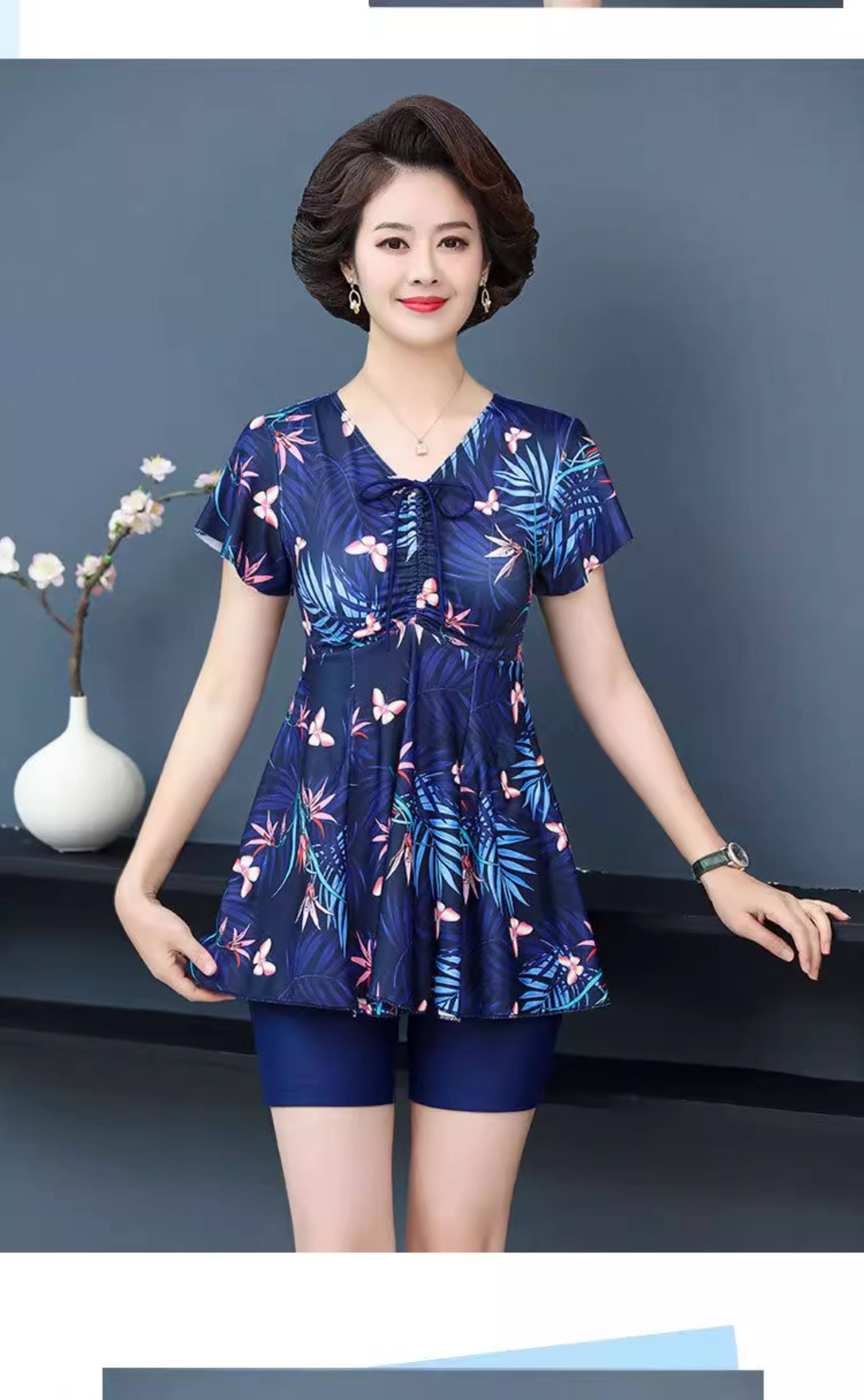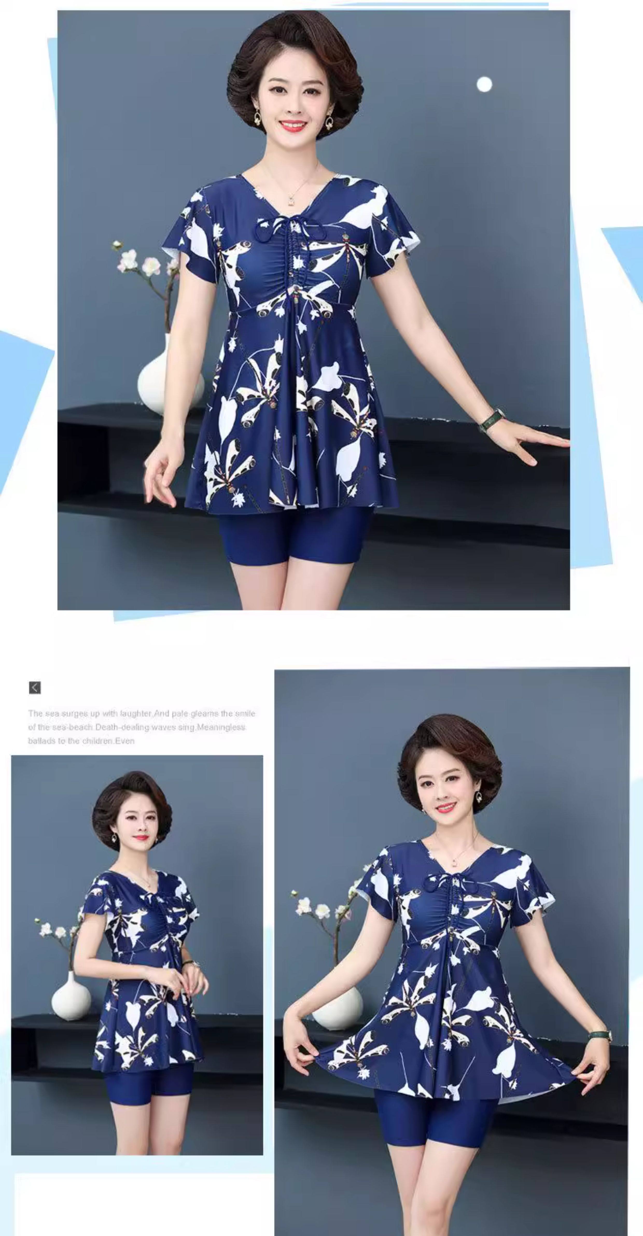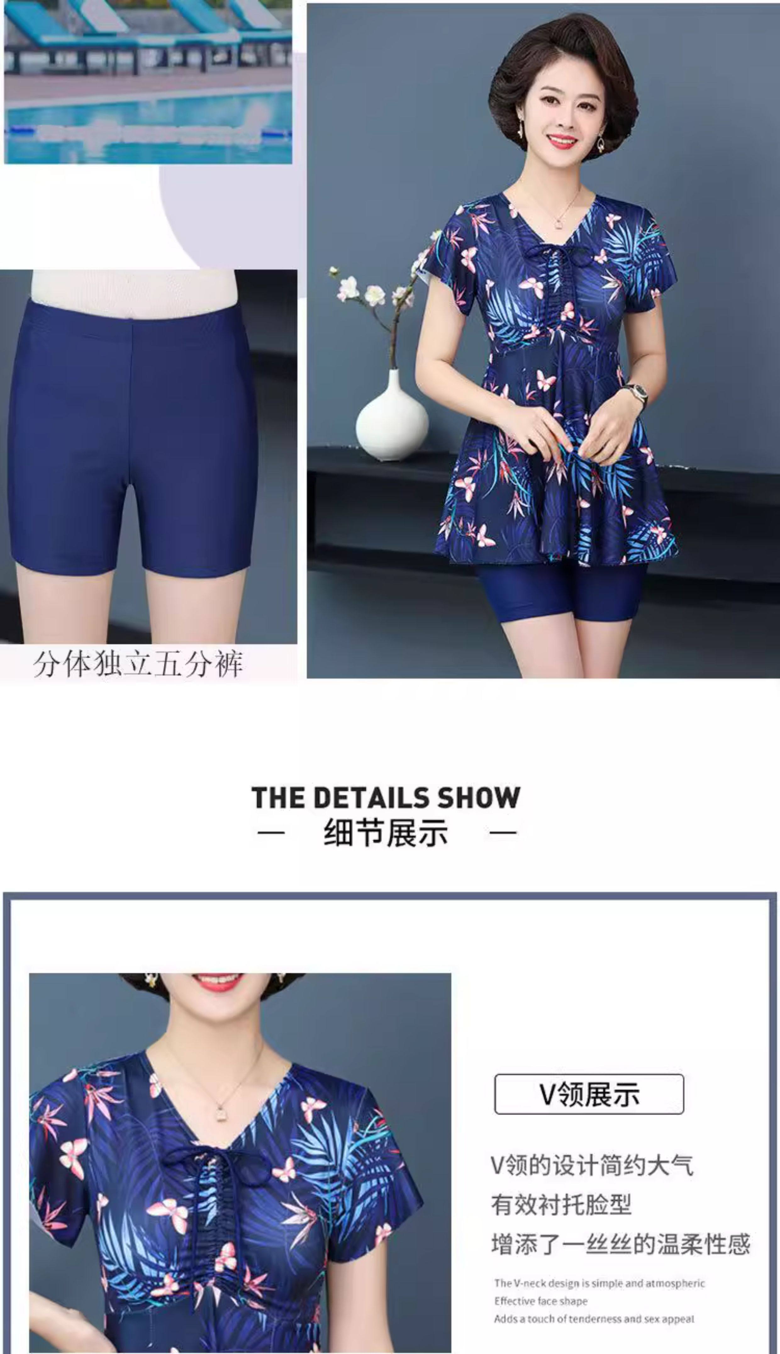 Swimsuit for Women, Plus Size, Elderly, Conservative, 2025 New Style, Middle-Aged and Elderly, Two-Piece, Middle-Aged Women's Hot Spring Swimwear