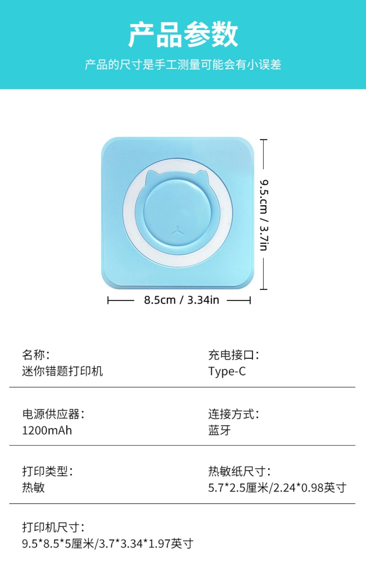 High-Definition Error Correction Printer, a Homework Organizing Tool for Middle and High School Students, Can Be Pasted, Mini, Small, Portable, and Suitable for Home Use