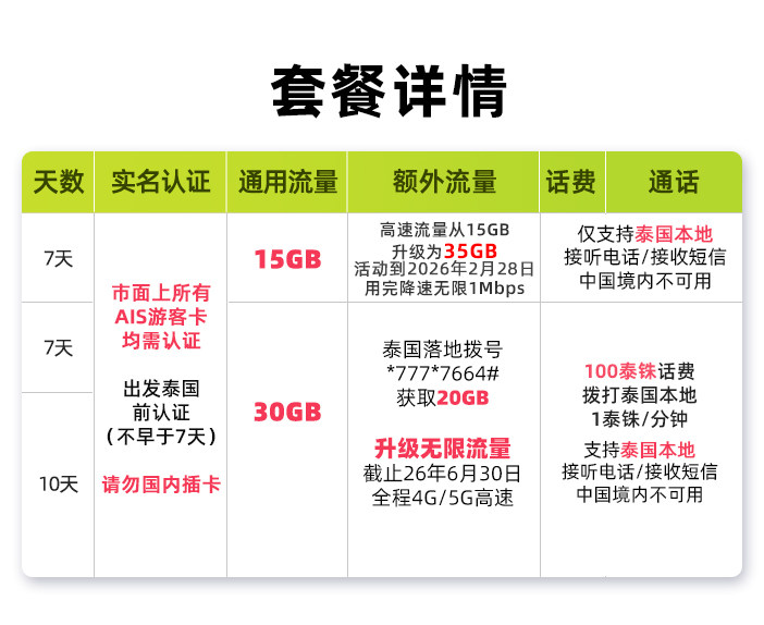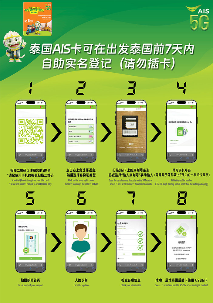Yidian Thailand Sim Card Ais Mobile Internet Card 4/5g High-Speed, 7/10 Days Optional Unlimited Data, Phuket Island