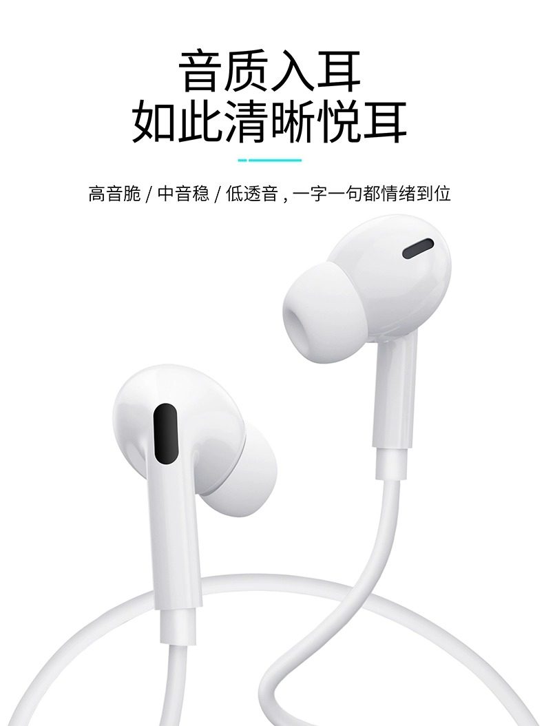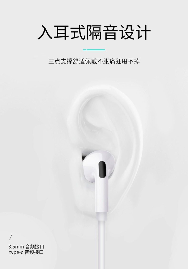 Wired In-Ear Headphones with Type-C Interface Are Suitable for Vivo, Xiaomi, Oppo and Android Mobile Phones with Round Hole Earplugs