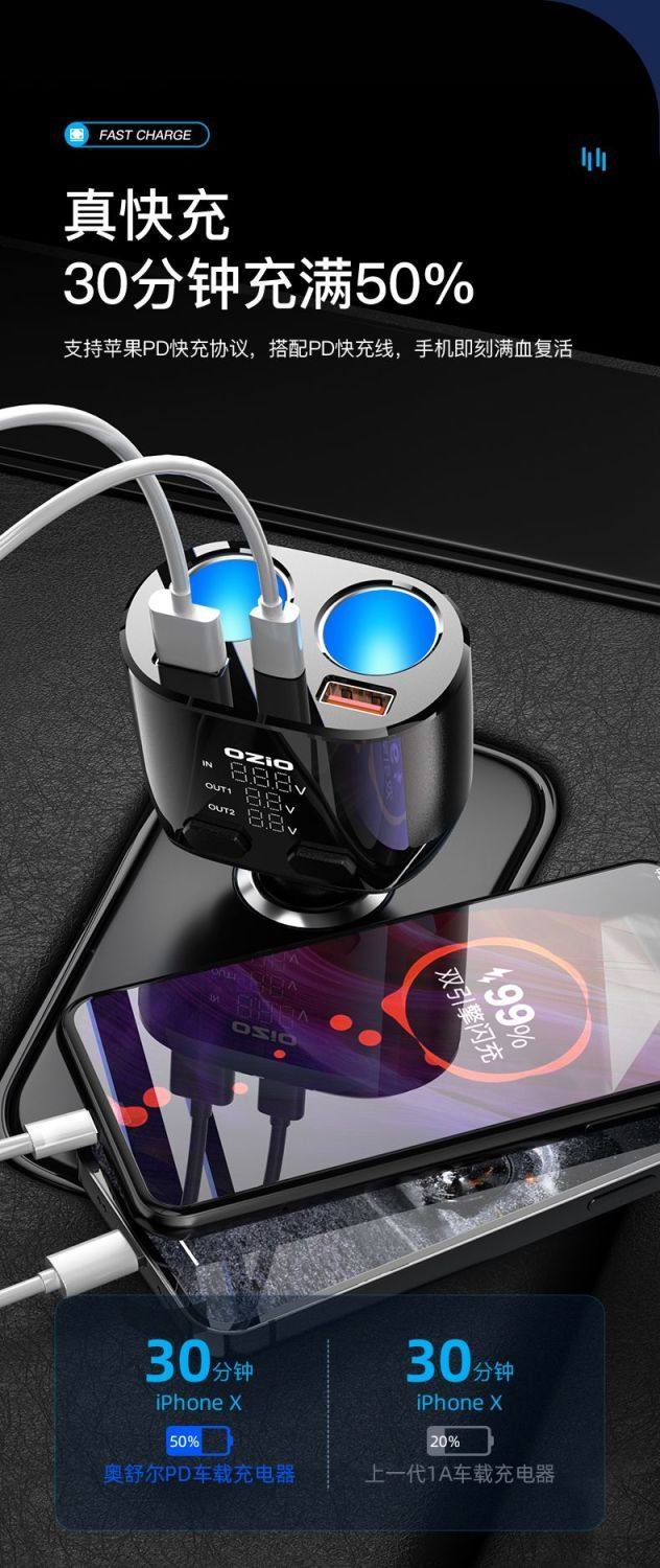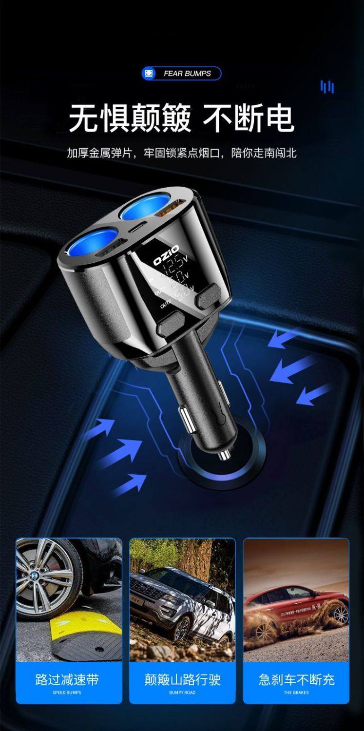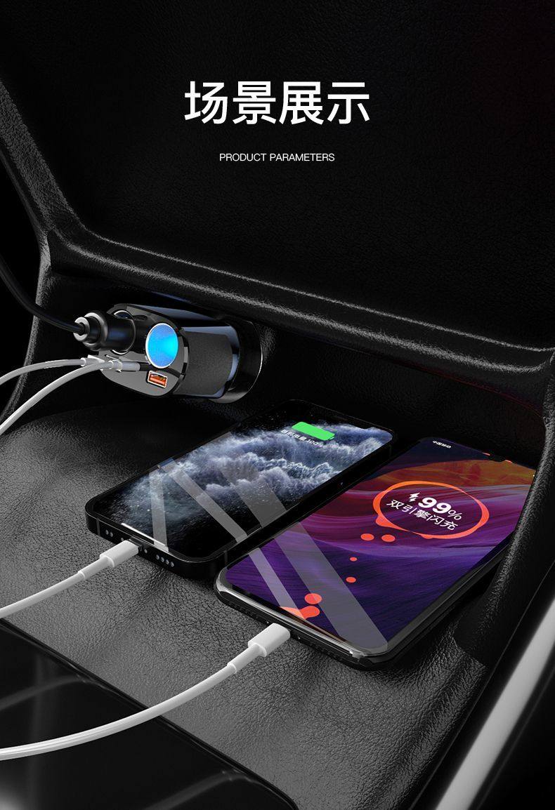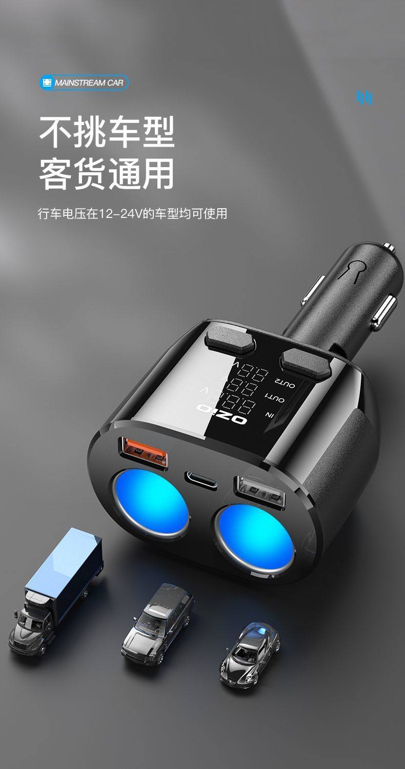 Car Charger Fast Charging One-To-Three Cigarette Lighter Adapter Car Fast Charging Supplies Multi-Functional Car Charger