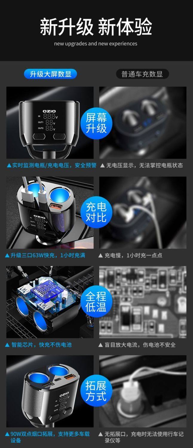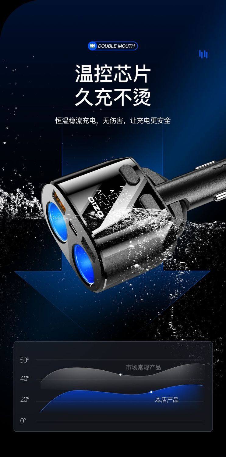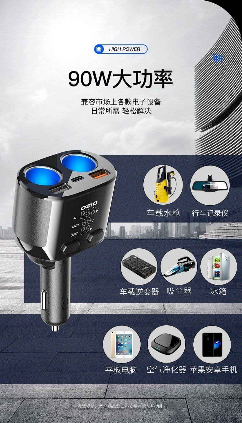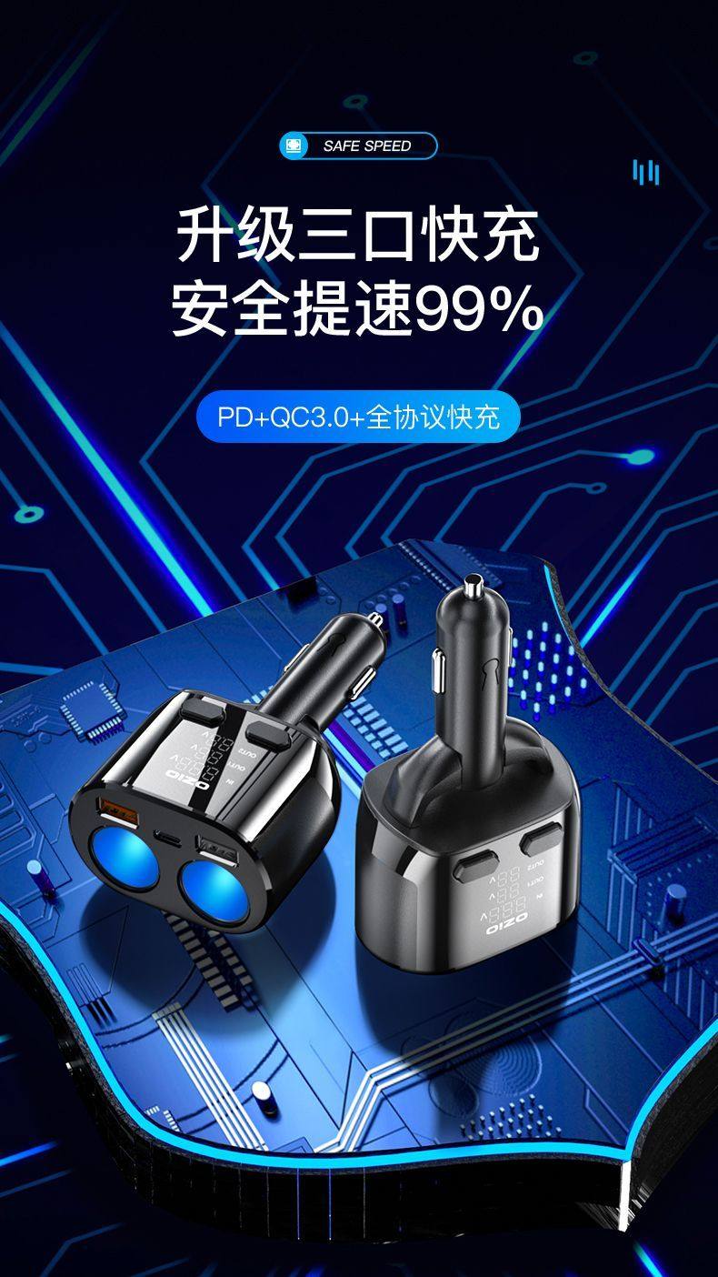 Car Charger Fast Charging One-To-Three Cigarette Lighter Adapter Car Fast Charging Supplies Multi-Functional Car Charger