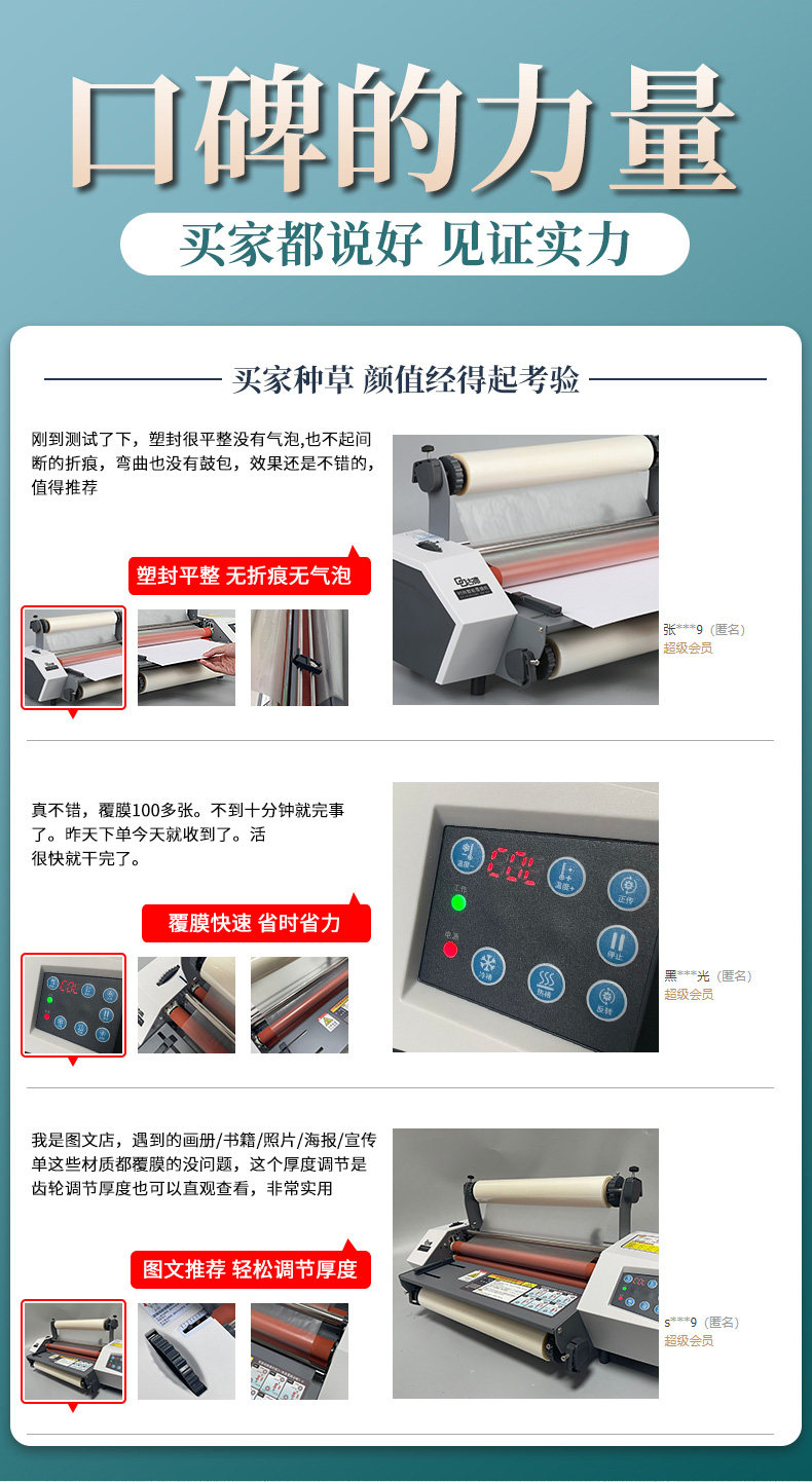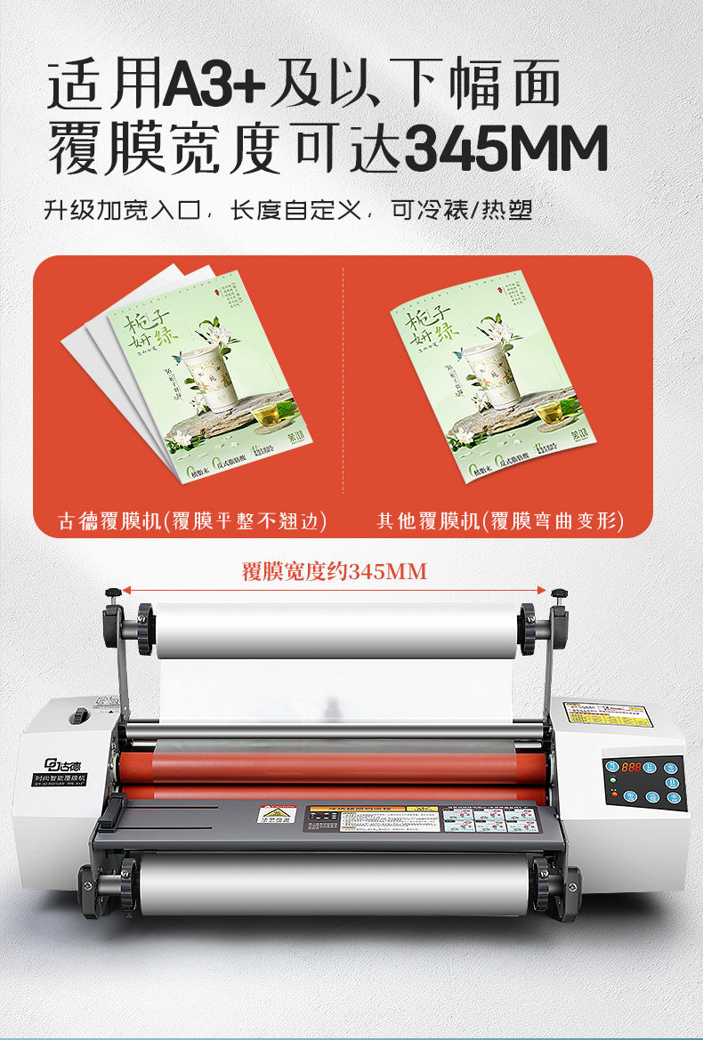 | Color Classification | Laminating Width up to 34.5Cm/Laminating Thickness 0.1-6mm Adjustable,A3+ Laminating Machine (Bonus: 31Cm×50M Glossy Pre-Coated Film*2 Rolls),A3+ Laminating Machine + A4 Heavy-Duty Paper Cutter (Bonus: 31Cm×50M Glossy Pre-Coated Film*2 Rolls),A3+ Laminating Machine + Small Paper Cutter (Bonus: 31Cm×50M Glossy Pre-Coated Film*2 Rolls),A3+ Laminating Machine + A4 Creasing Machine (Bonus: 31Cm×50M Glossy Pre-Coated Film*2 Rolls),A3+ Laminating Machine (Bonus: 22Cm×100M Glossy Pre-Coated Film*2 Rolls),A3+ Laminating Machine (Bonus: 22Cm×100M Matte Pre-Coated Film*2 Rolls),A3+ Laminating Machine (Bonus: 30Cm×200M Glossy Pre-Coated Film*2 Rolls),A3+ Laminating Machine (Bonus: 30Cm×200M Matte Pre-Coated Film*2 Rolls),A3+ Laminating Machine (Bonus: 31Cm×200M Glossy Pre-Coated Film*2 Rolls),A3+ Laminating Machine (Bonus: 31Cm×200M Matte Pre-Coated Film*2 Rolls),A3+ Laminating Machine (Bonus: 22Cm×100M Pet Glossy Anti-Roll Film*2 Rolls),A3+ Laminating Machine (Bonus: 30Cm×200M Pet Glossy Anti-Roll Film*2 Rolls),A3+ Laminating Machine (Bonus: 31Cm×200M Pet Glossy Anti-Roll Film*2 Rolls) |