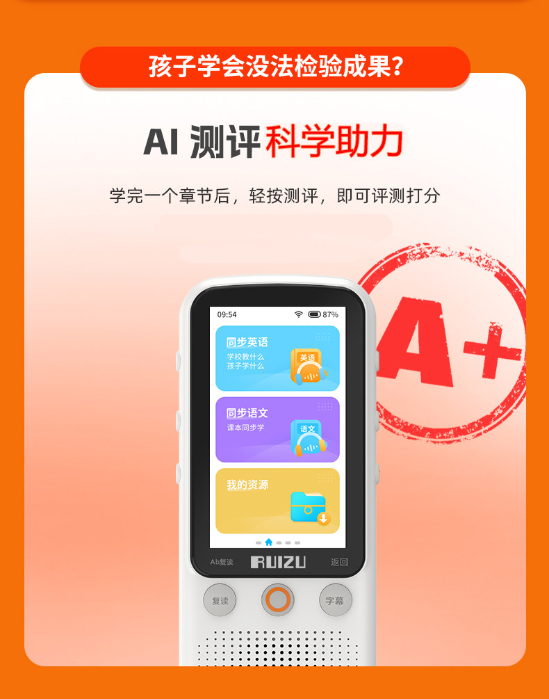 Ruizu V08 Listening Device English Learning Player Synchronized Walkman for Elementary, Middle, and High School Students Special Repeater