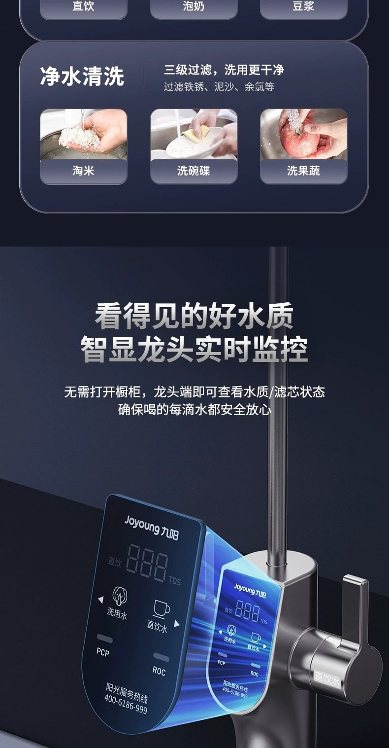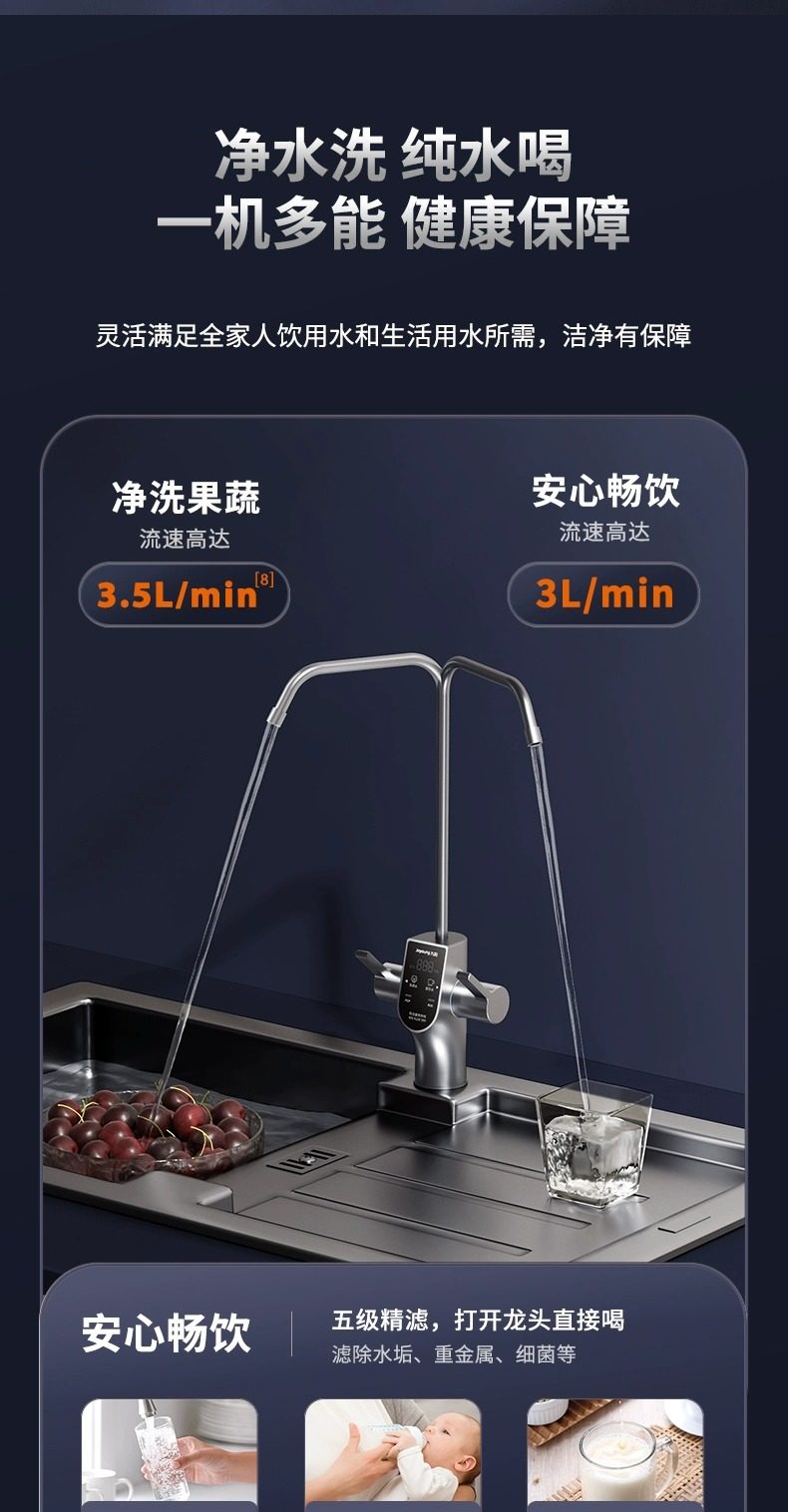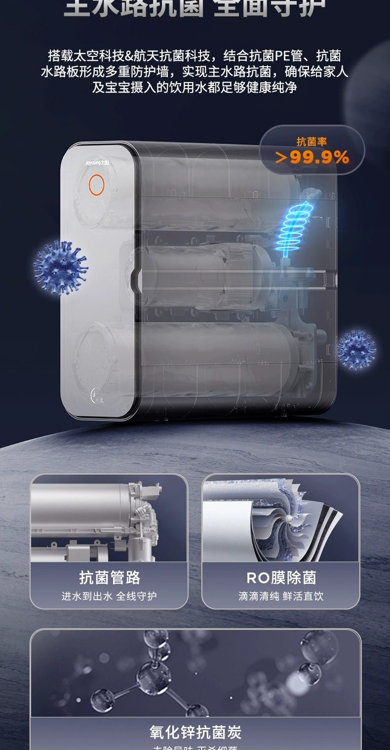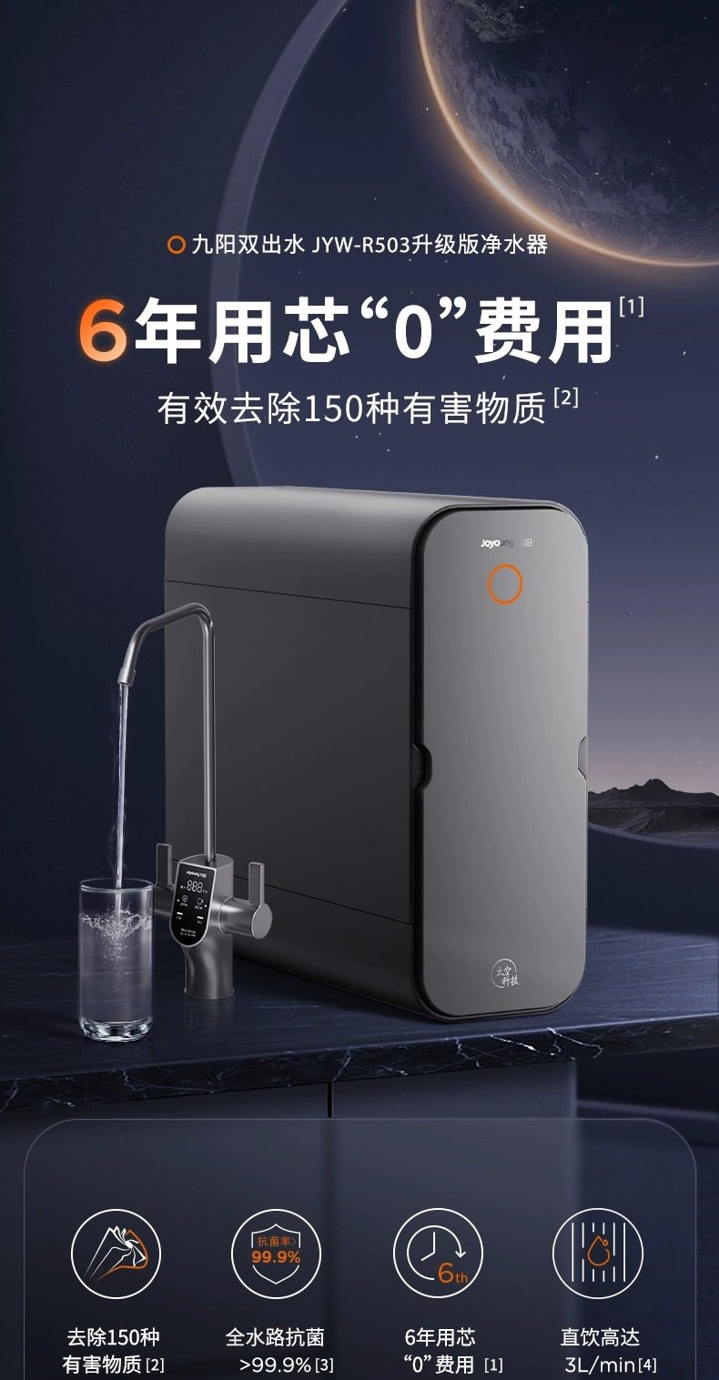 [0 Scale Inhibitor] Joyoung Water Purifier for Home Use, Under-Sink Direct Drinking Machine, 1000g Dual Outlet Reverse Osmosis Drinking Water Purifier