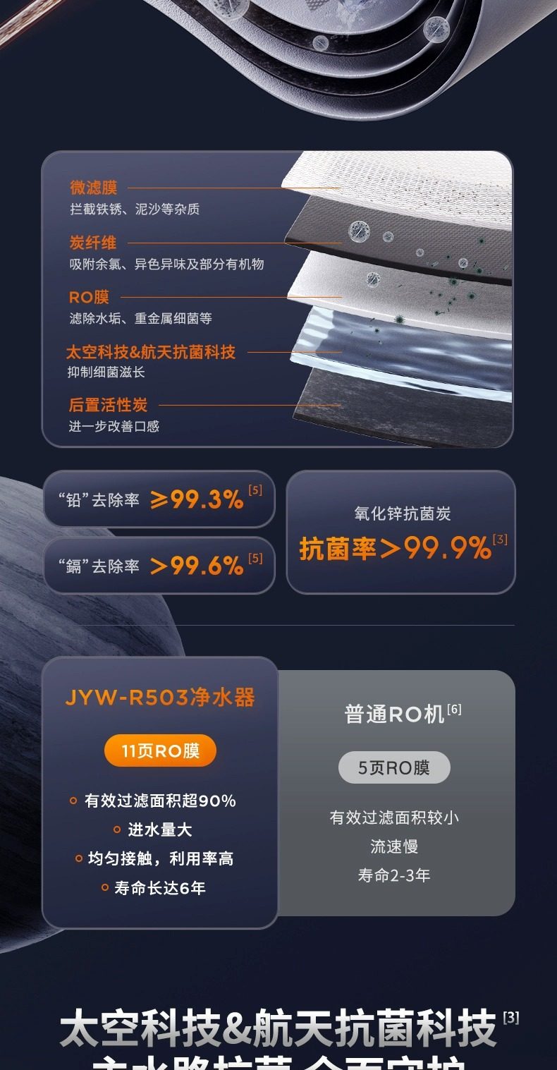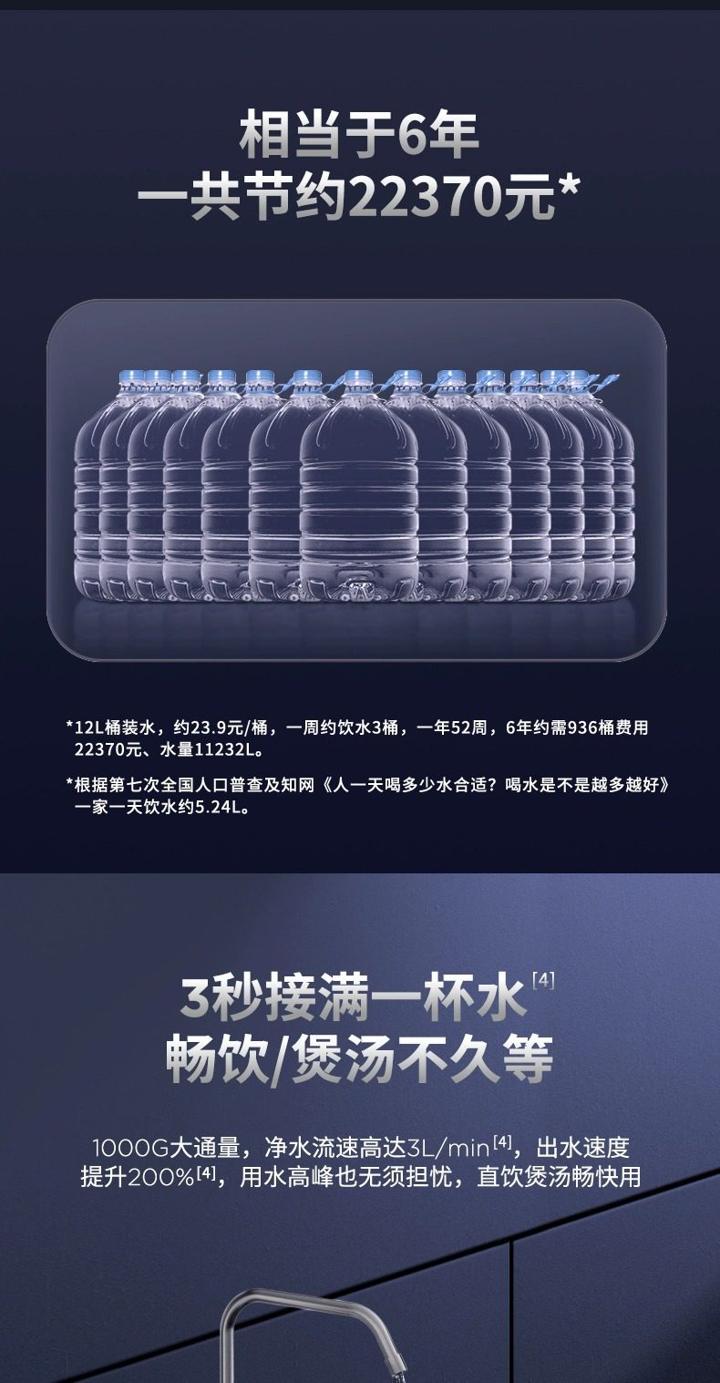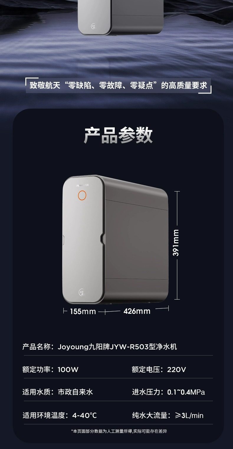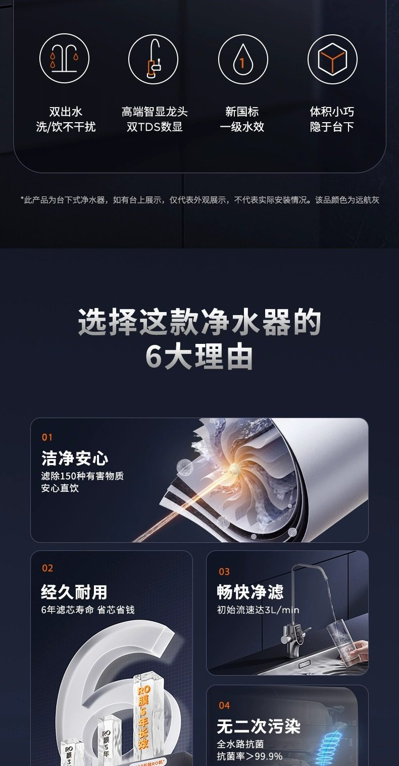 [0 Scale Inhibitor] Joyoung Water Purifier for Home Use, Under-Sink Direct Drinking Machine, 1000g Dual Outlet Reverse Osmosis Drinking Water Purifier