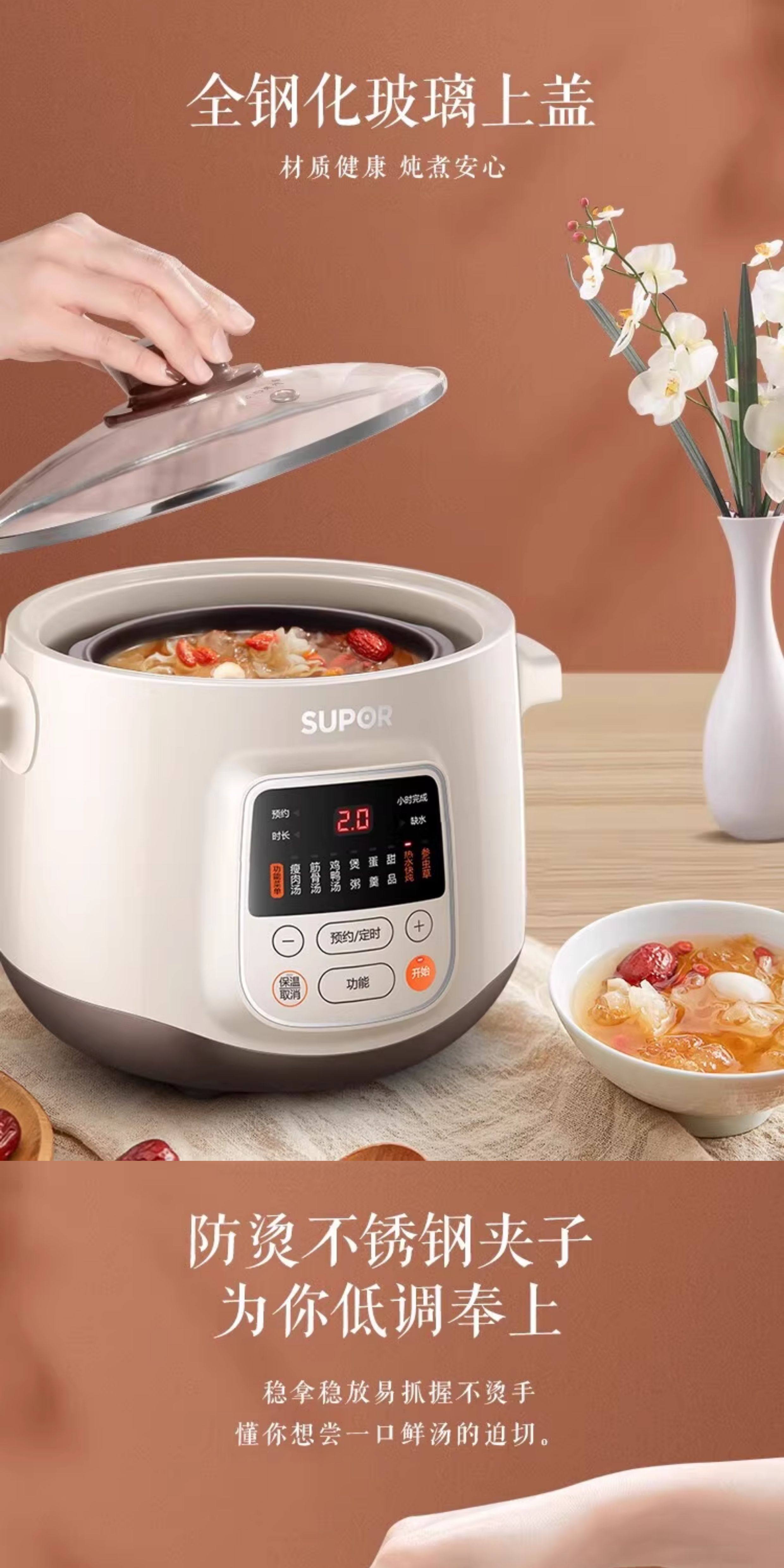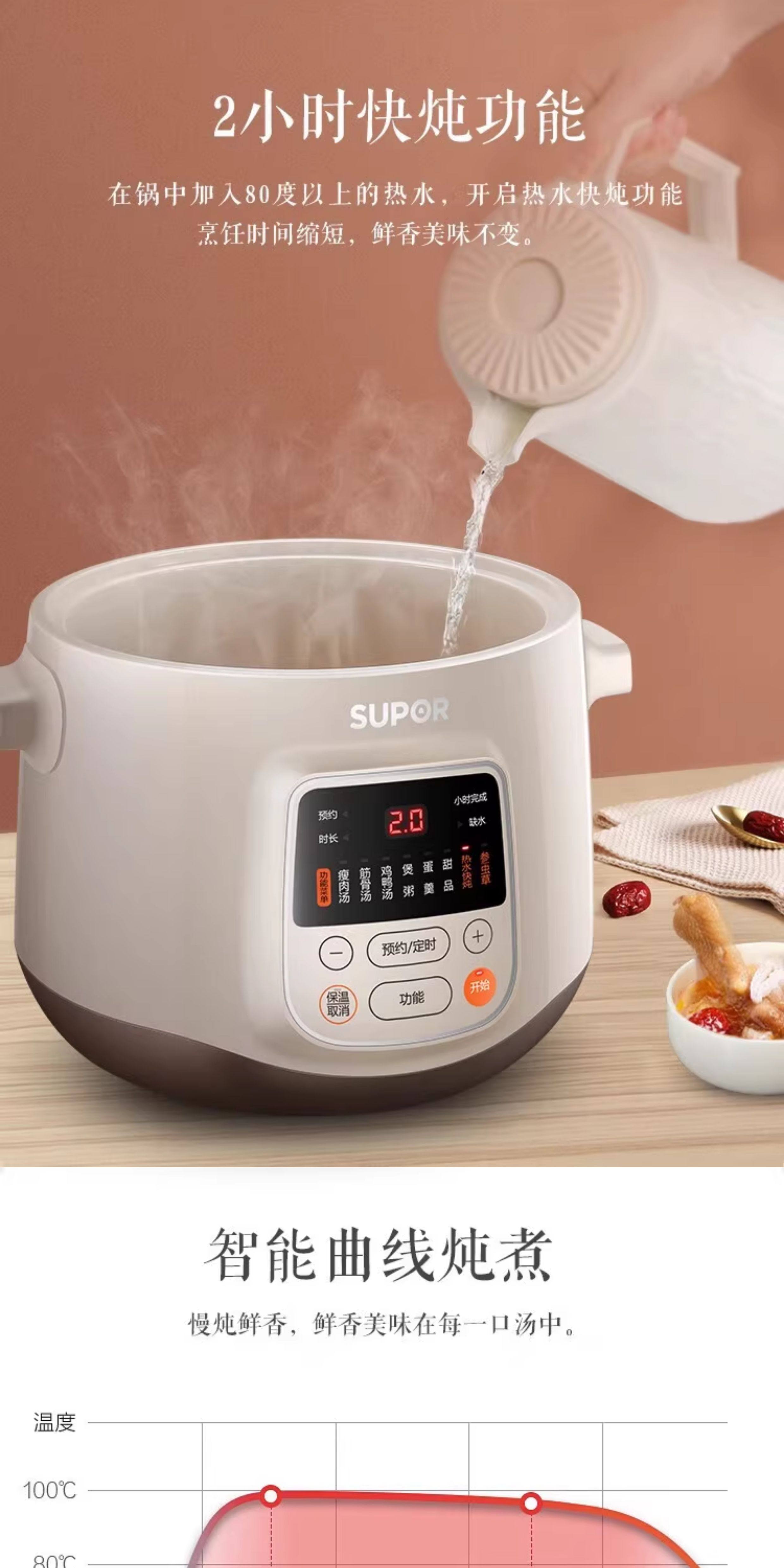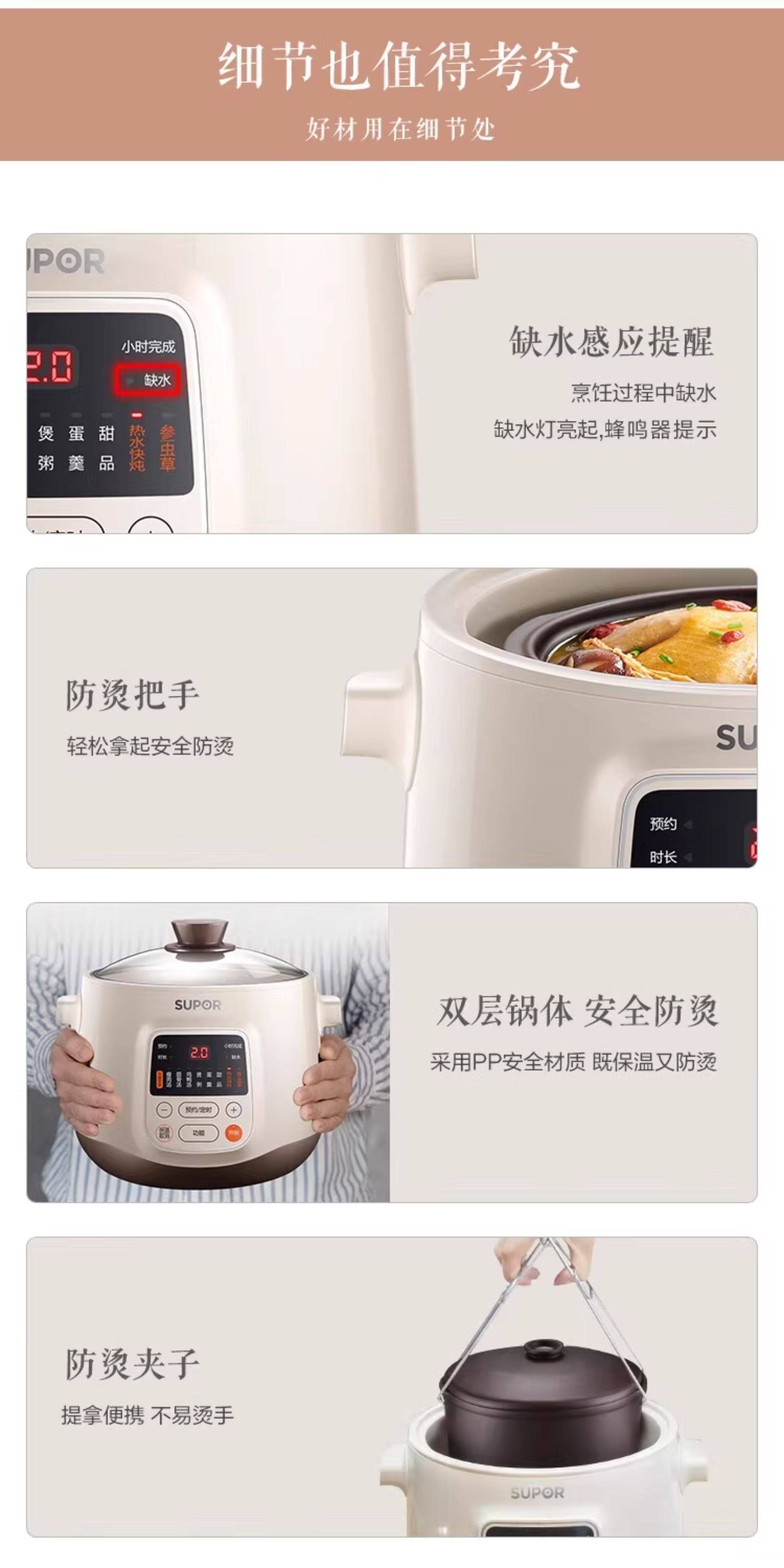 Supor Electric Stew Pot for Home Use, Water-Sealed Stewing Pot, Soup Pot, Electric Clay Pot, Bird's Nest Porridge Maker, New Cooking Appliance