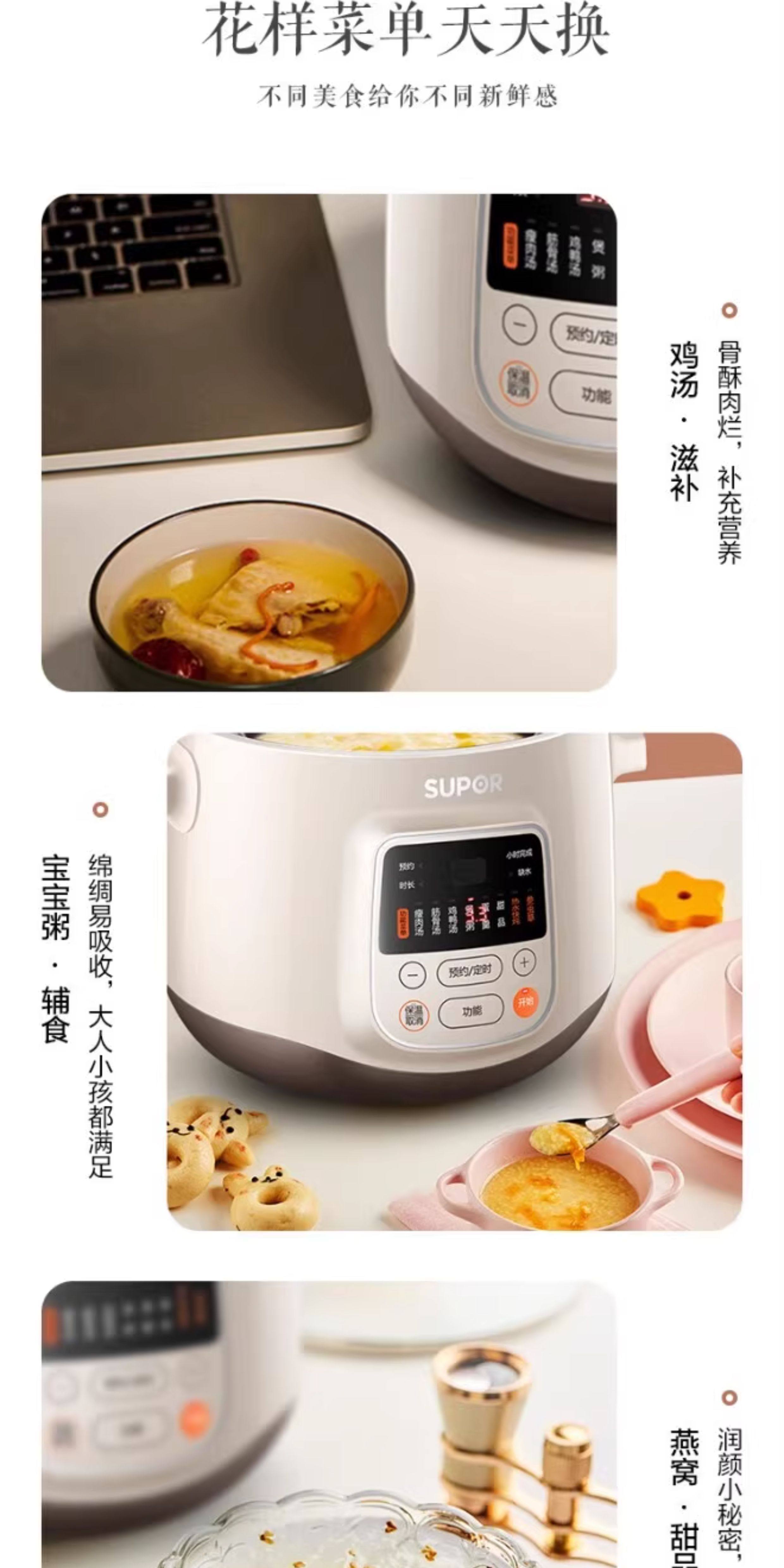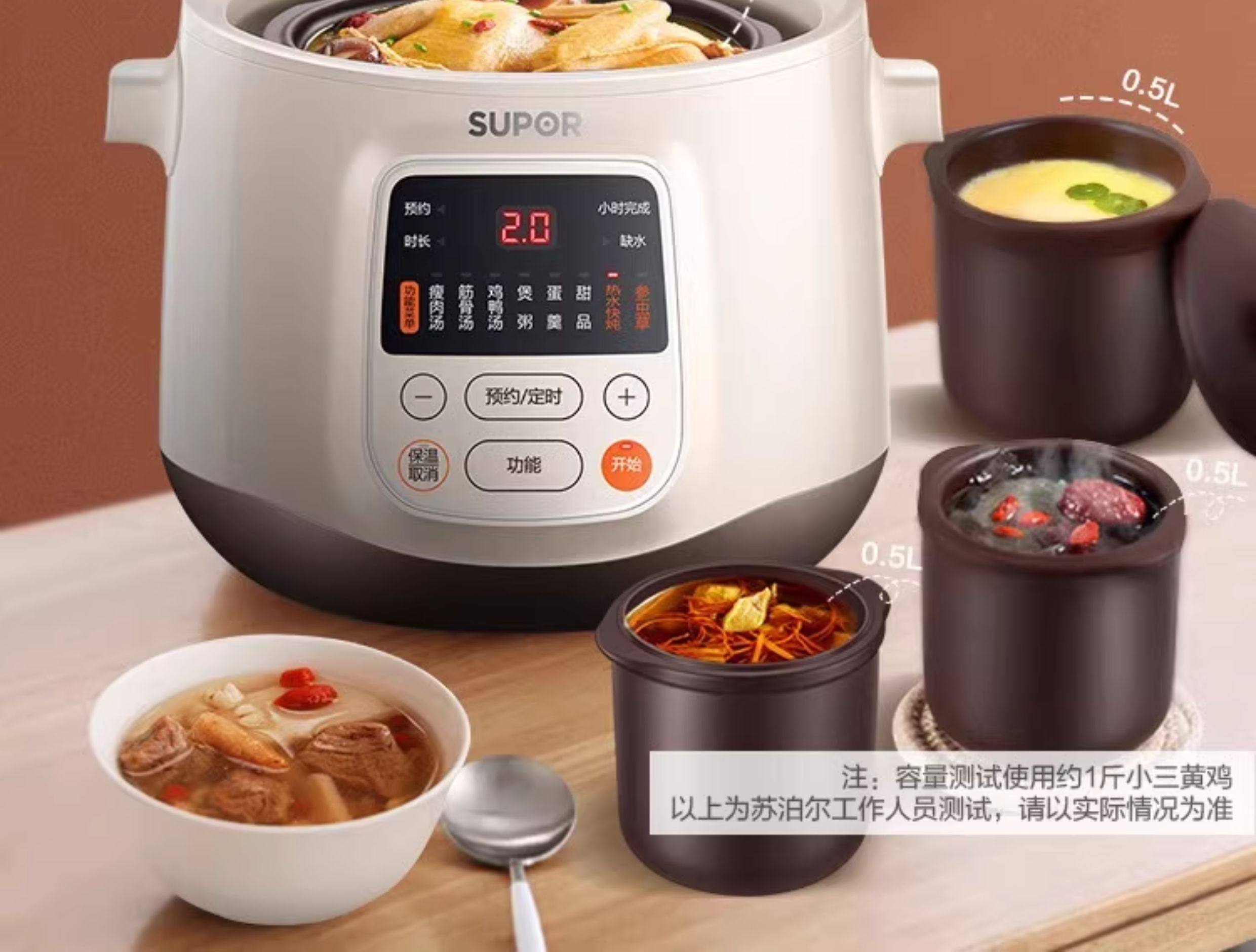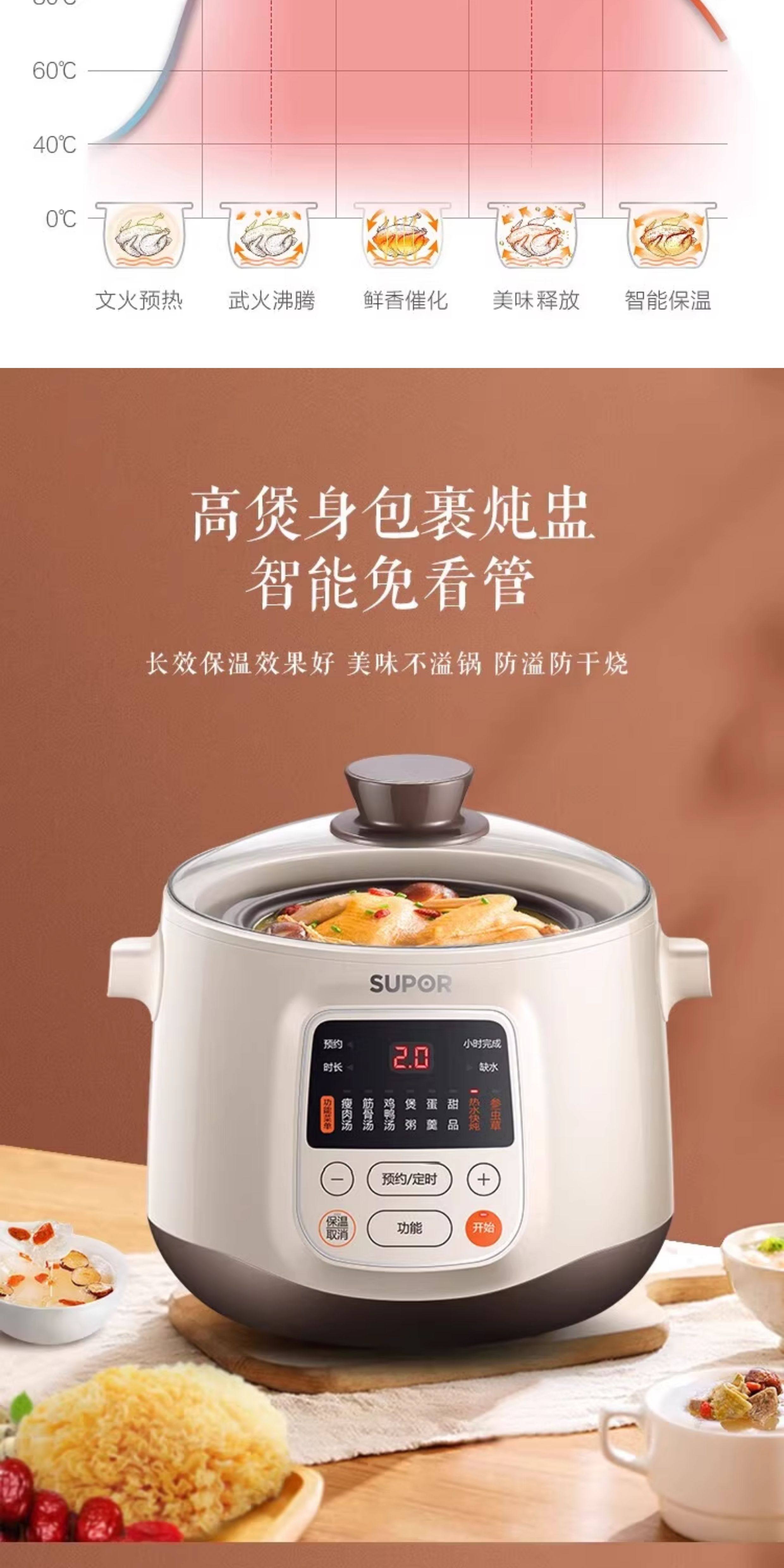 Supor Electric Stew Pot for Home Use, Water-Sealed Stewing Pot, Soup Pot, Electric Clay Pot, Bird's Nest Porridge Maker, New Cooking Appliance