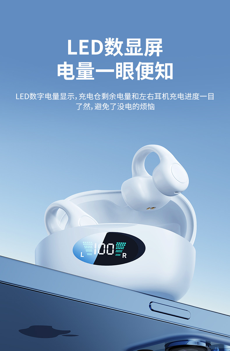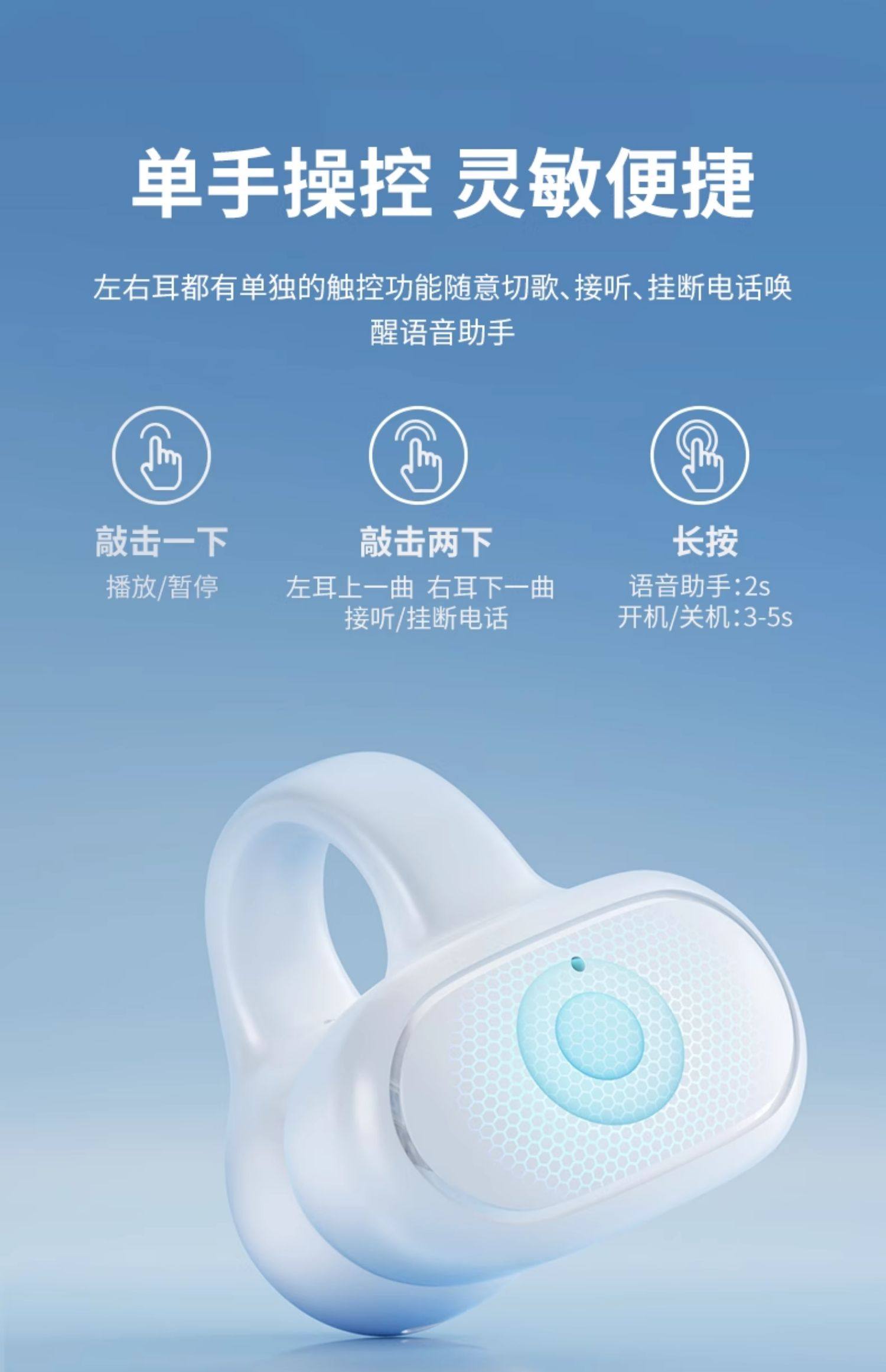 Bluetooth Earphones, Clip-On Bone Conduction, 2025 New Model, Wireless, Sports, Non-In-Ear, Running, Over-Ear, High-Quality, Open Design