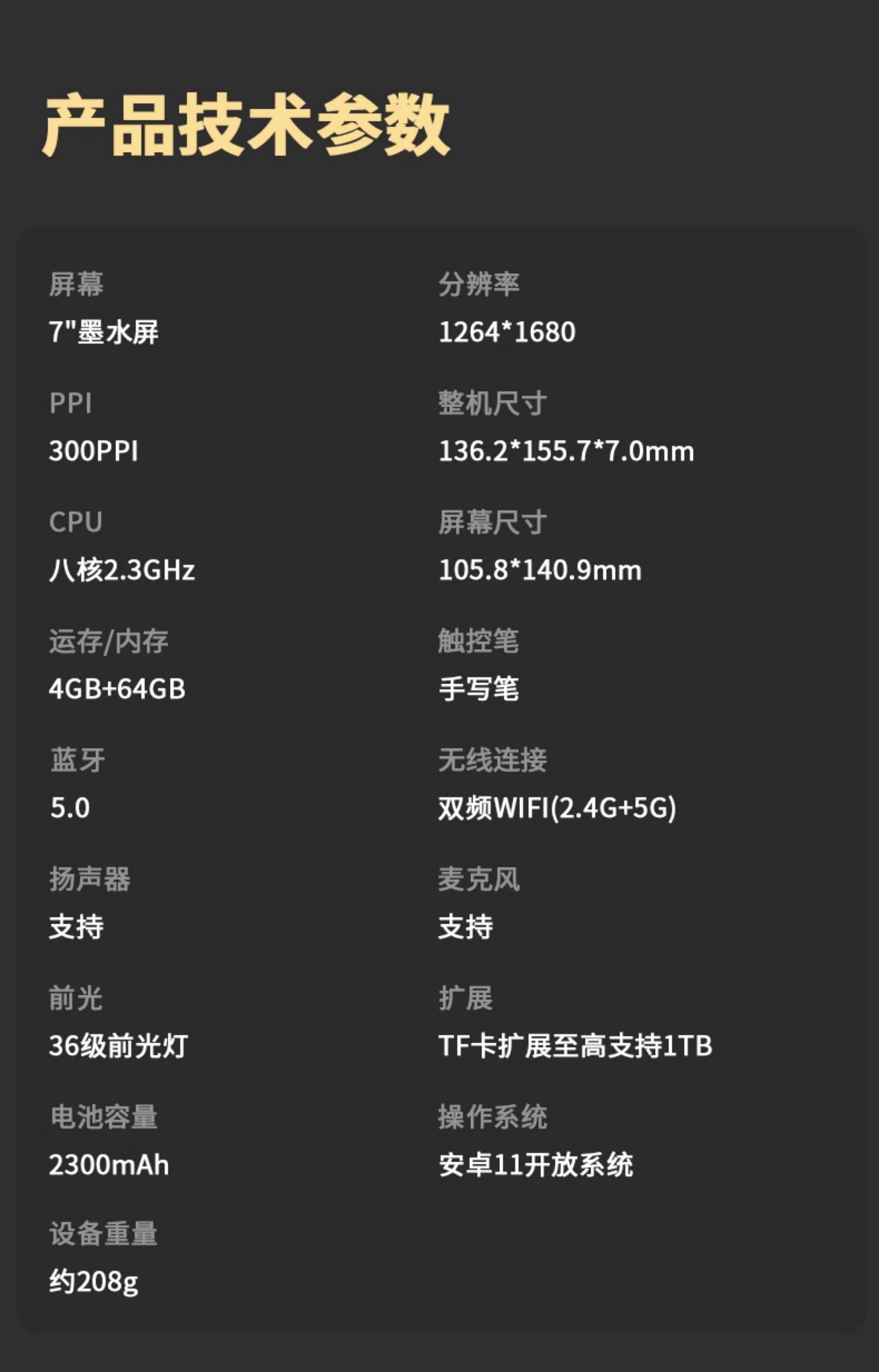 | Screen Type | E-Ink Electronic Ink Screen |