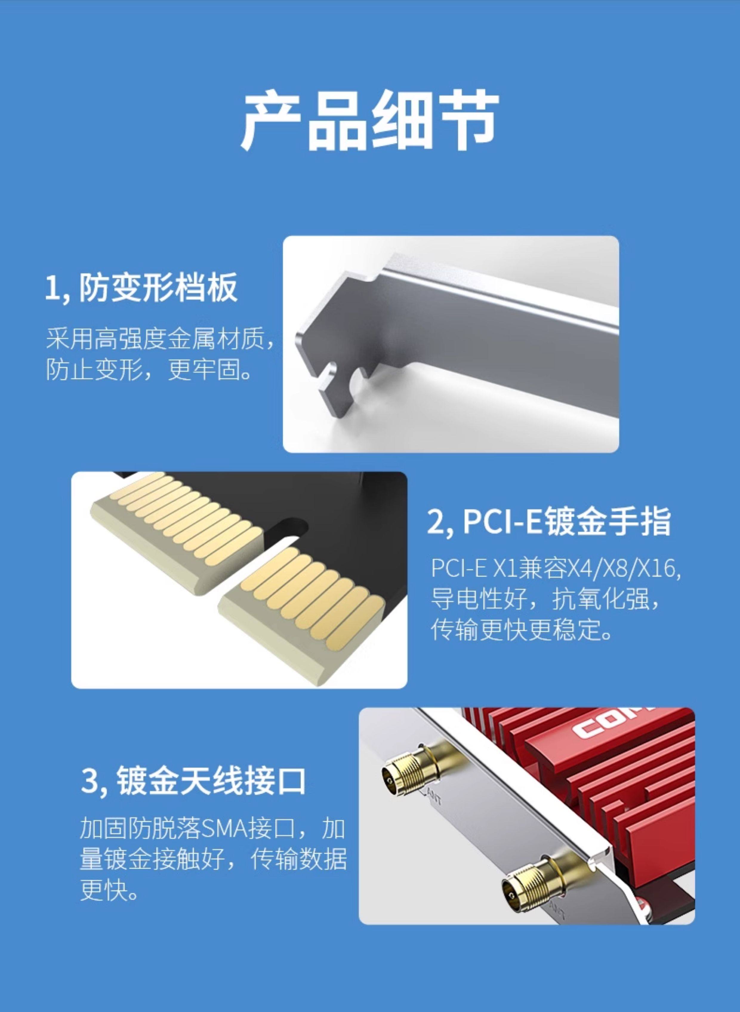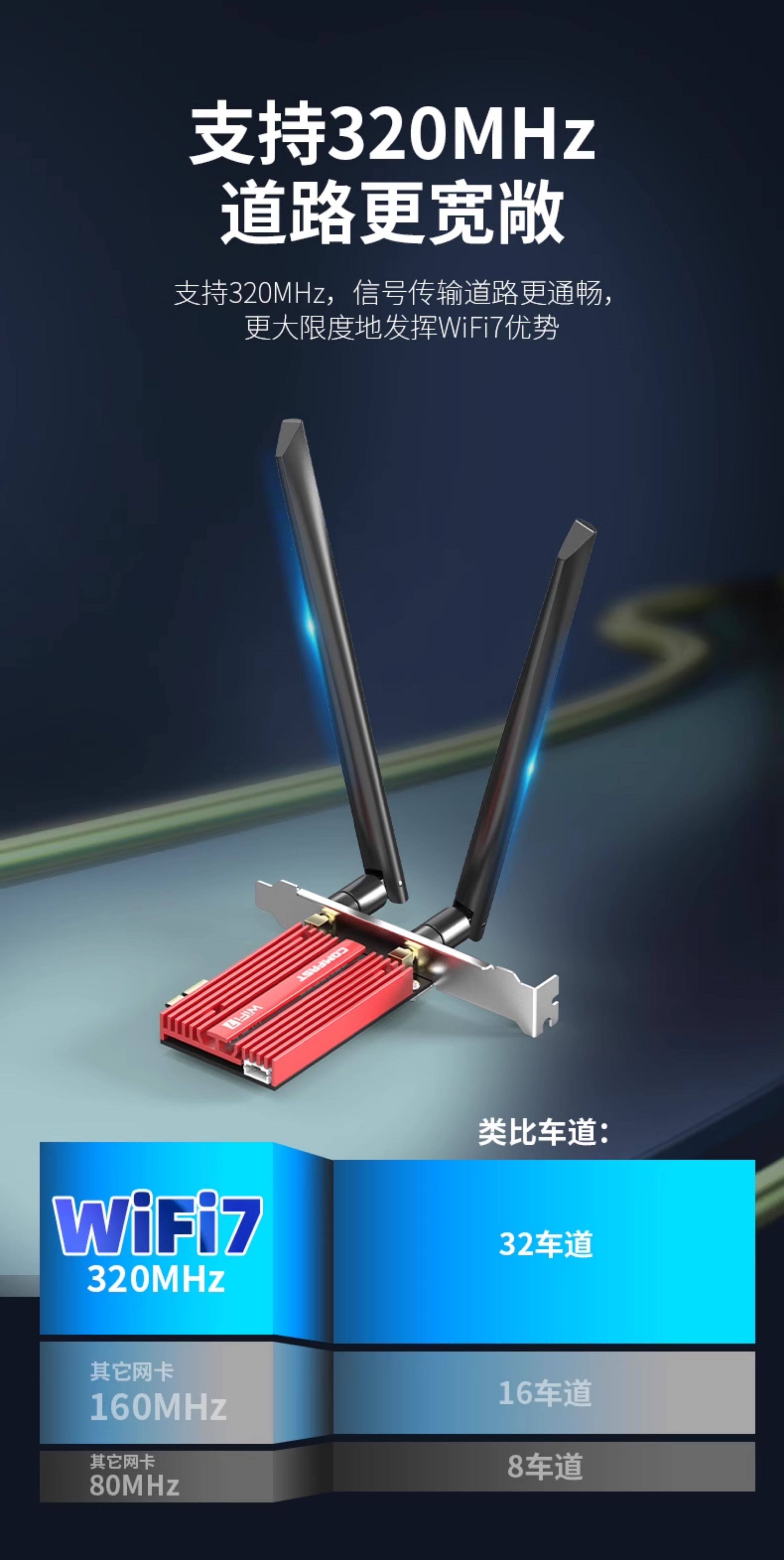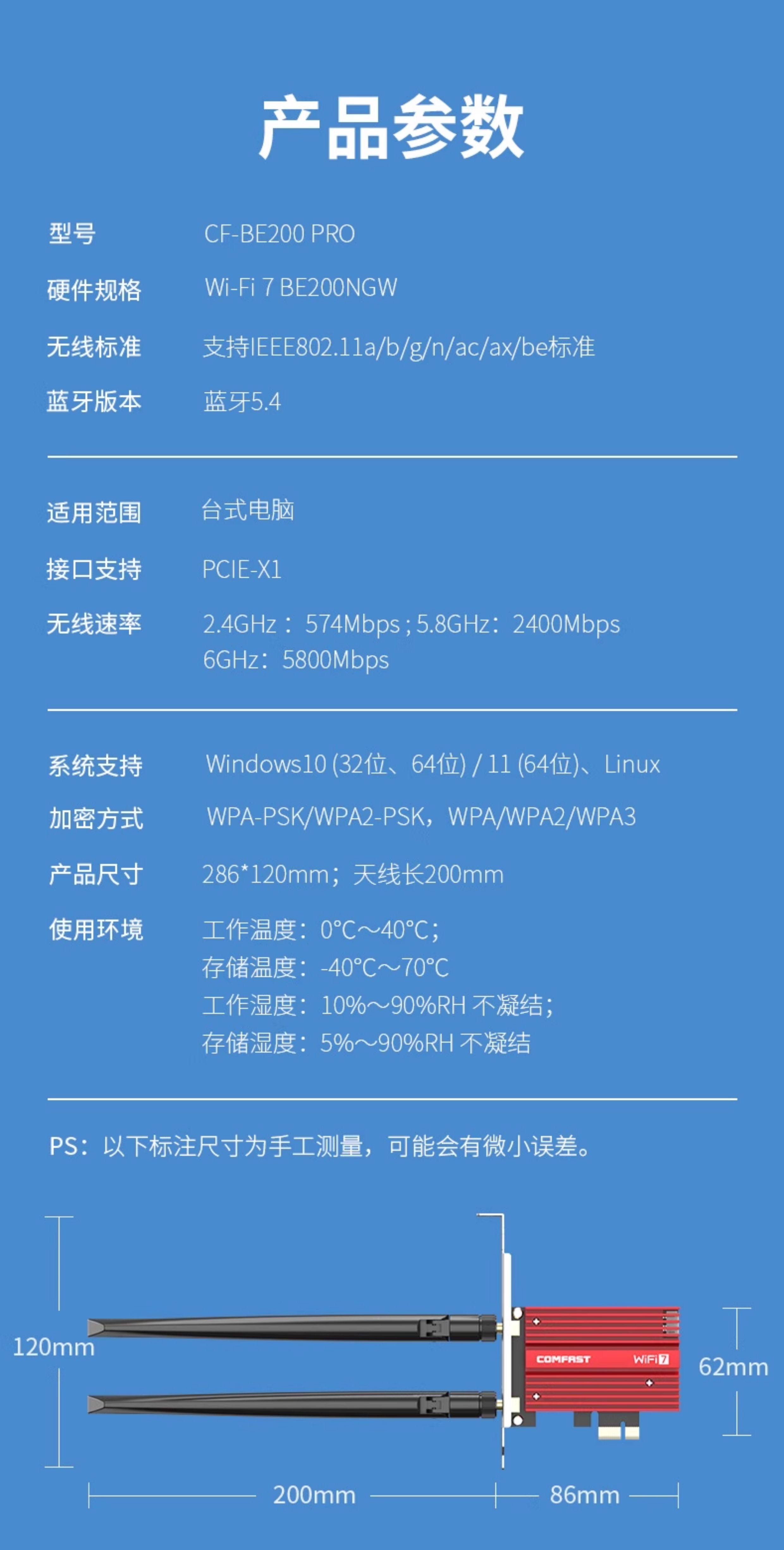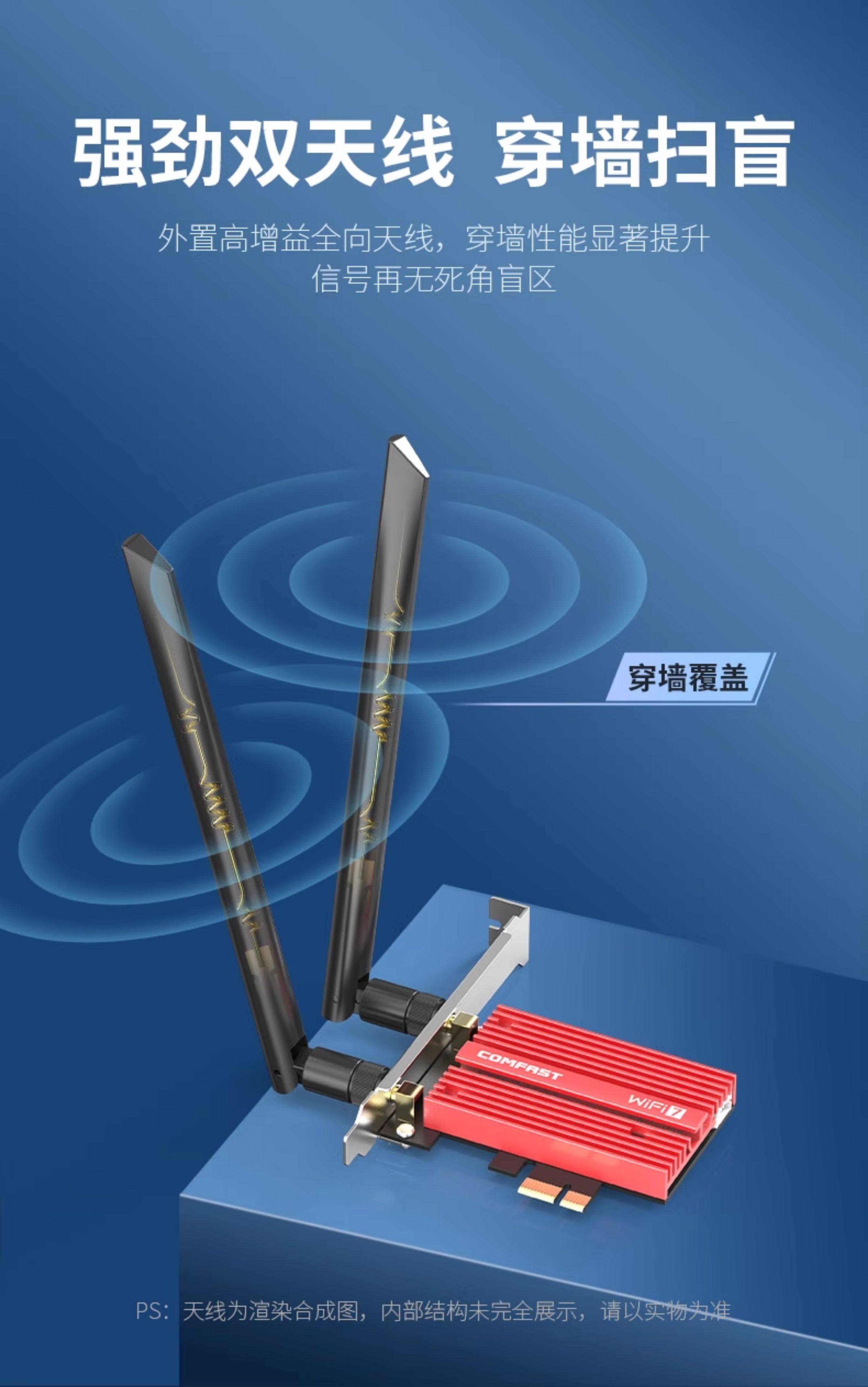 Comfast Cf-Be200 Pro Wireless Network Card Desktop Wifi7 Gigabit Tri-Band Computer Built-In Pcie Interface Be200 Bluetooth 5.4 Two-In-One Wifi Receiver