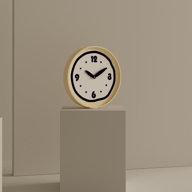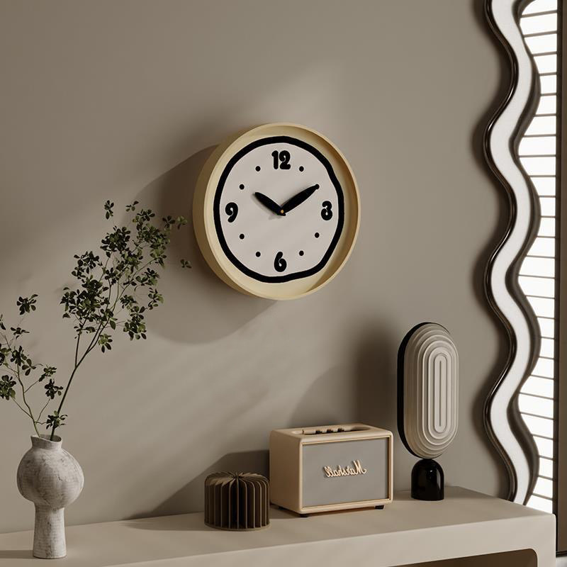 Cream Style ins Wall Clock, Minimalist Butter Yellow, Cute Nordic Silent Fashion, Simple and Unique Color-Blocking Home Clock