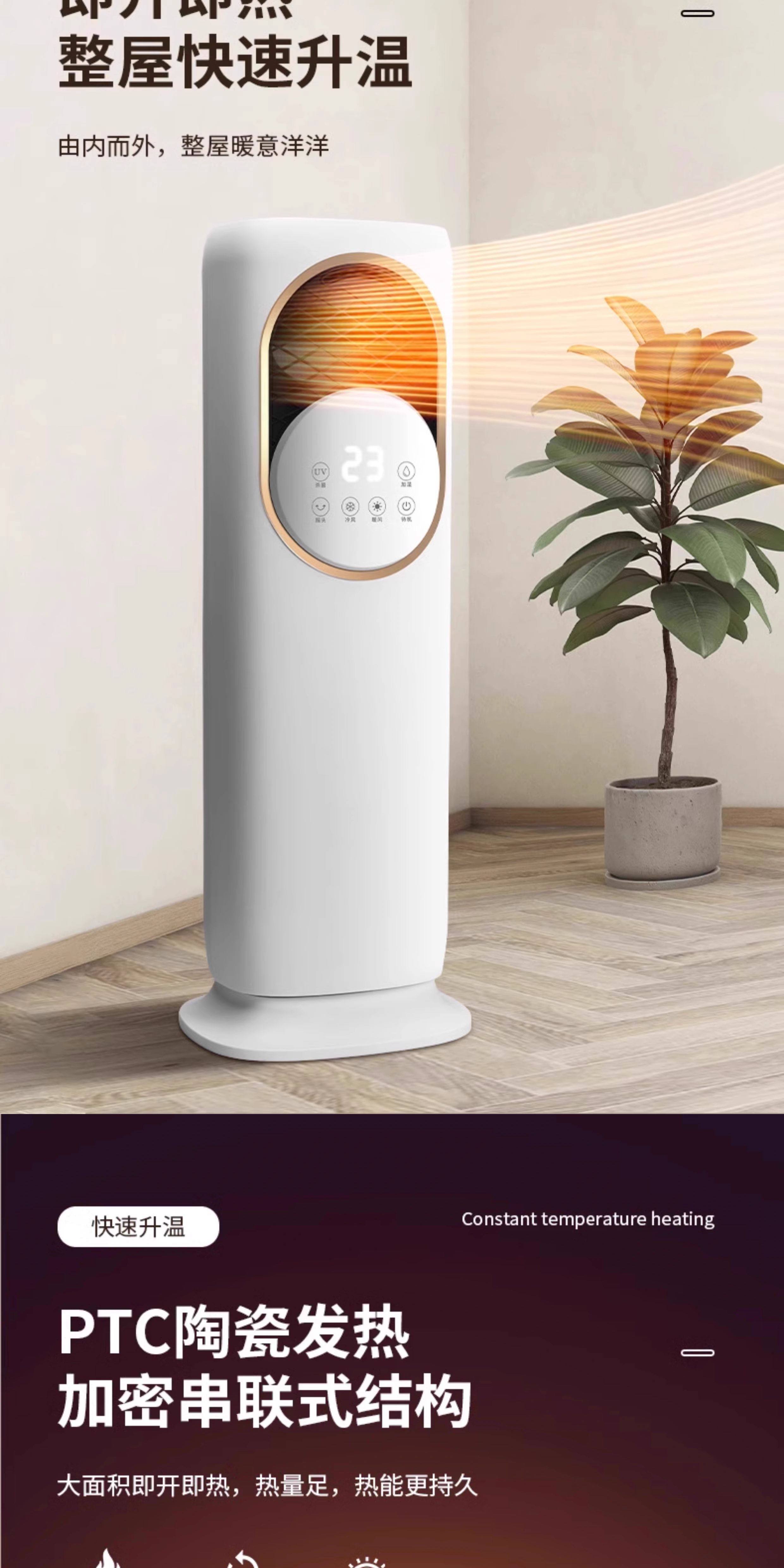 Dual-Use Heating and Cooling Electric Heater for Home Use, Small Sun-Like Standing Fan Heater, Silent, Energy-Saving, Water Circulation, Winter Essential