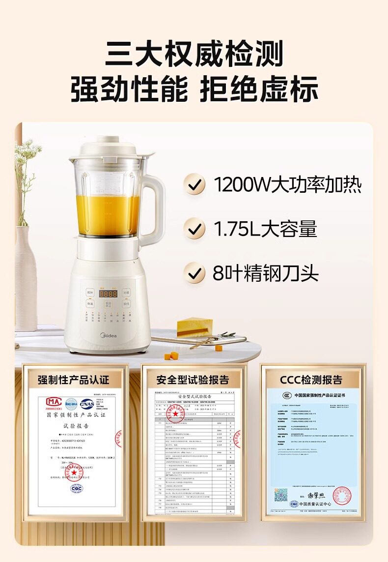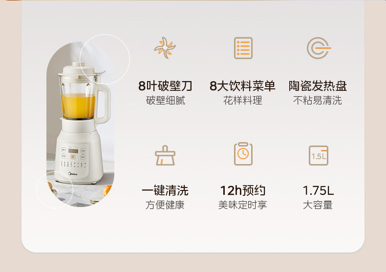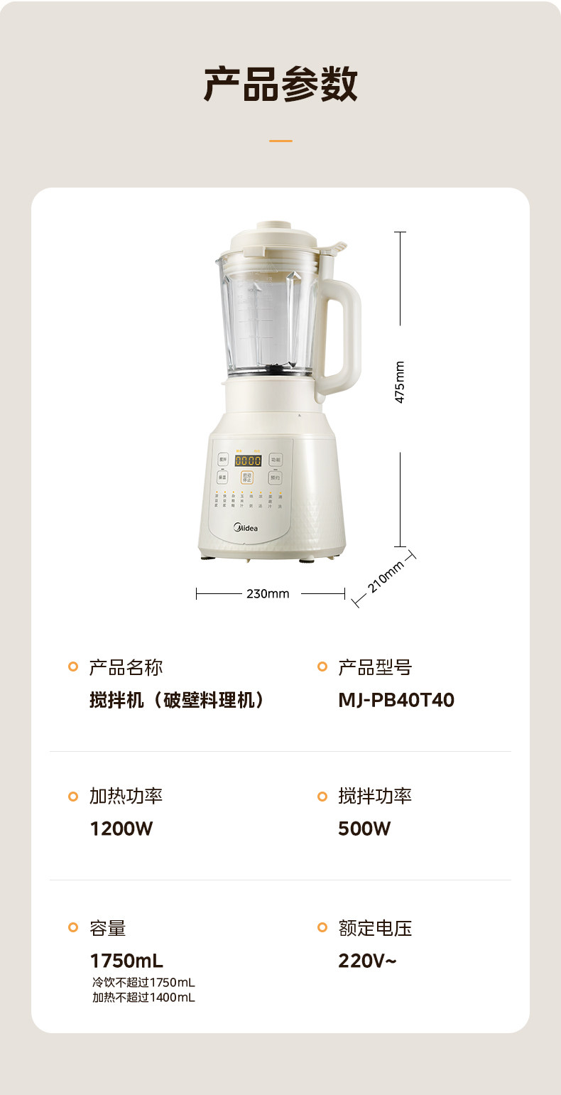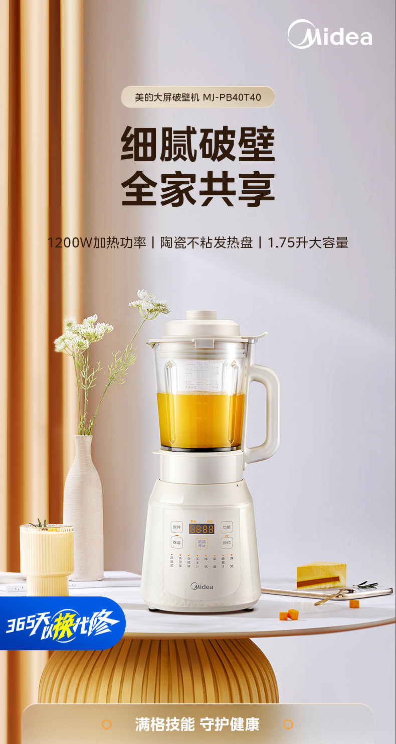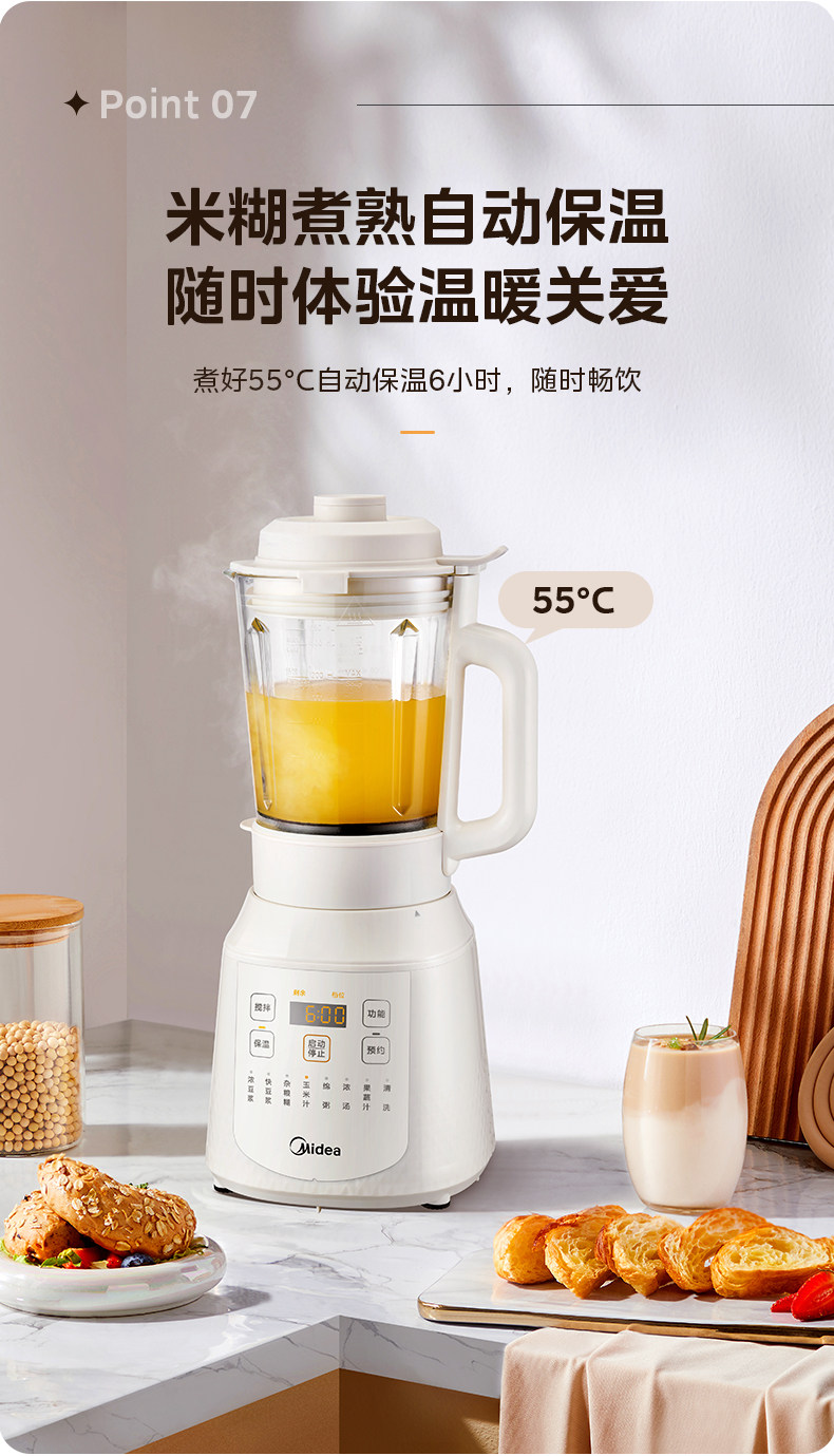 Midea Blender for Home Use, Fully Automatic Soy Milk Maker, New Model with Heating, Multifunctional Food Processor, Genuine Flagship Store Product