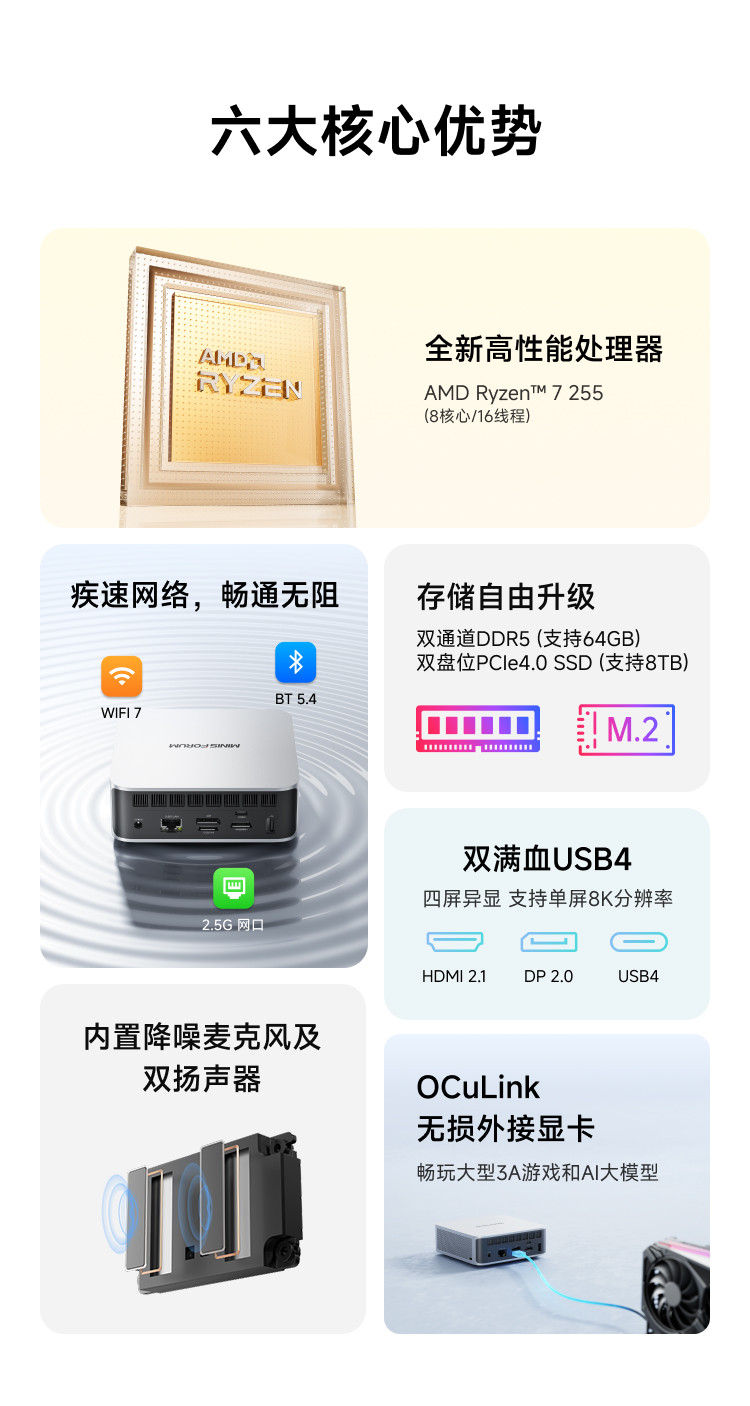 Mingfan X1-255 Amd Ryzen 7 255 High-Performance Mini Host Ai Pc Computer All-In-One Mini Small Host Gaming Office Design Desktop Computer Oculink External Graphics Card