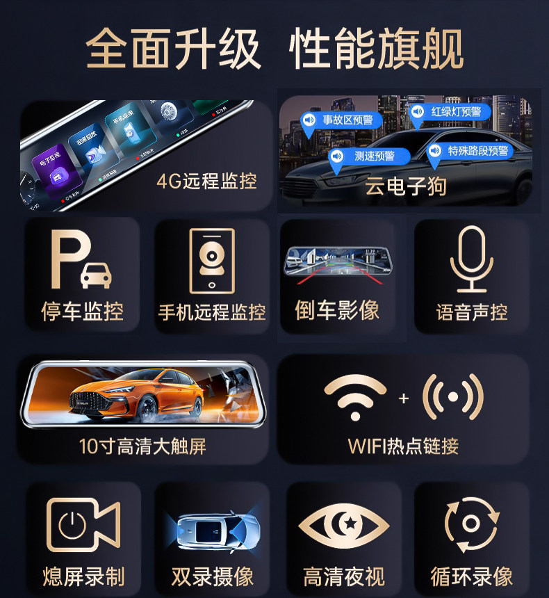 | Color Classification | ❶ 10inch Full-Screen Touch Voice-Controlled Version [4K Ultra-Clear + Memory Card],❷ 10inch Full-Screen Touch Voice-Controlled Mobile Phone Interconnection [4K Ultra-Clear + Memory Card],❸ 10inch Remote Monitoring Version [Choose This if You Want Unlimited Distance from a Distance],❹ Navigation Edition [Choose This for Advanced Navigation Features] |