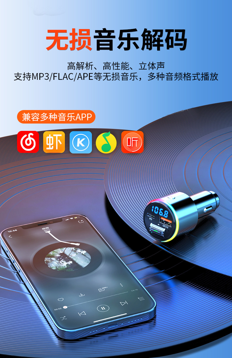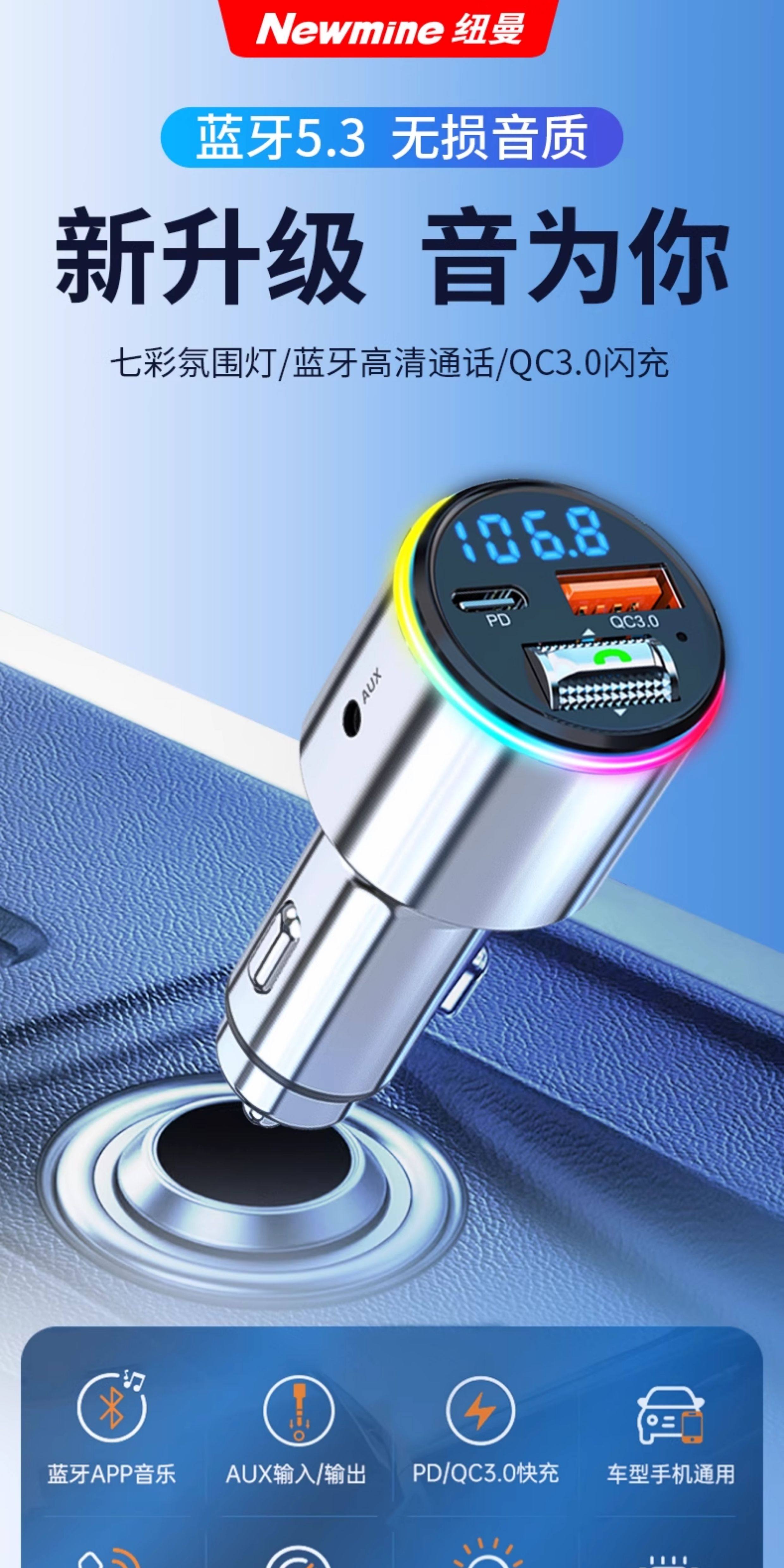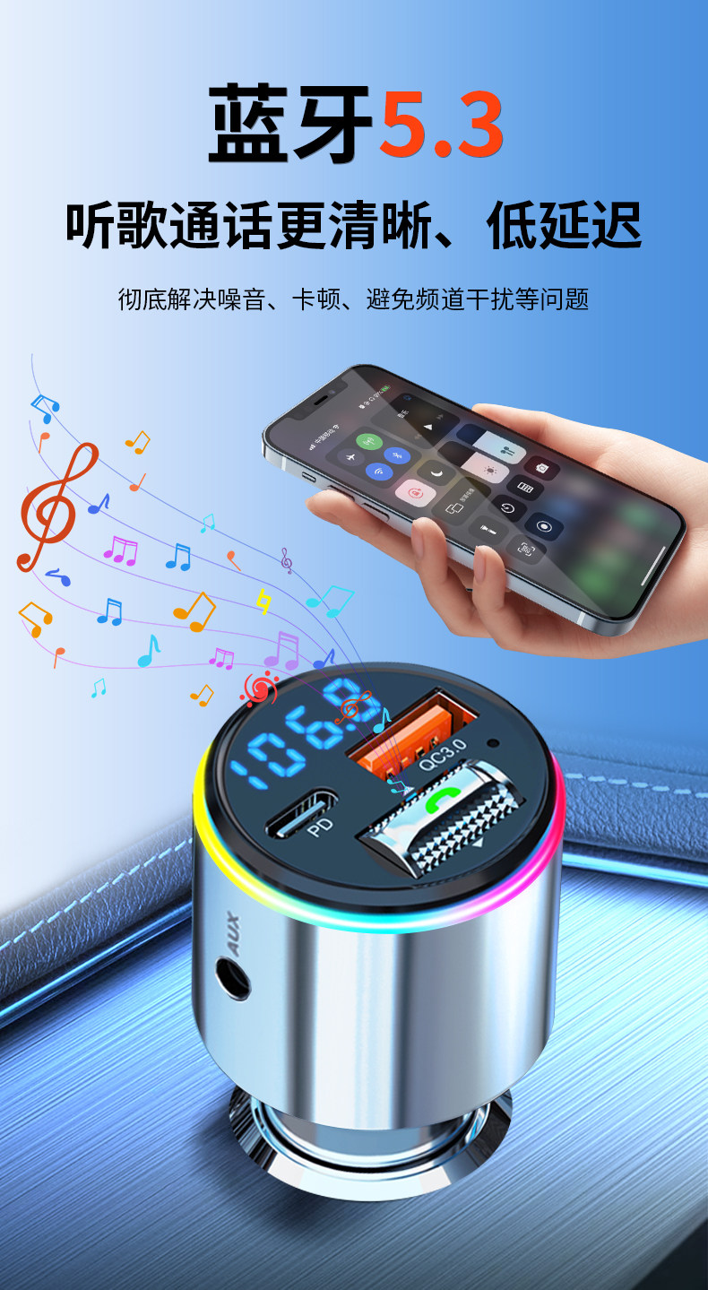 Newman Car Bluetooth Receiver 5.3 Lossless Sound Quality Mp3 Player Car Cigarette Lighter to Charger Car Charger