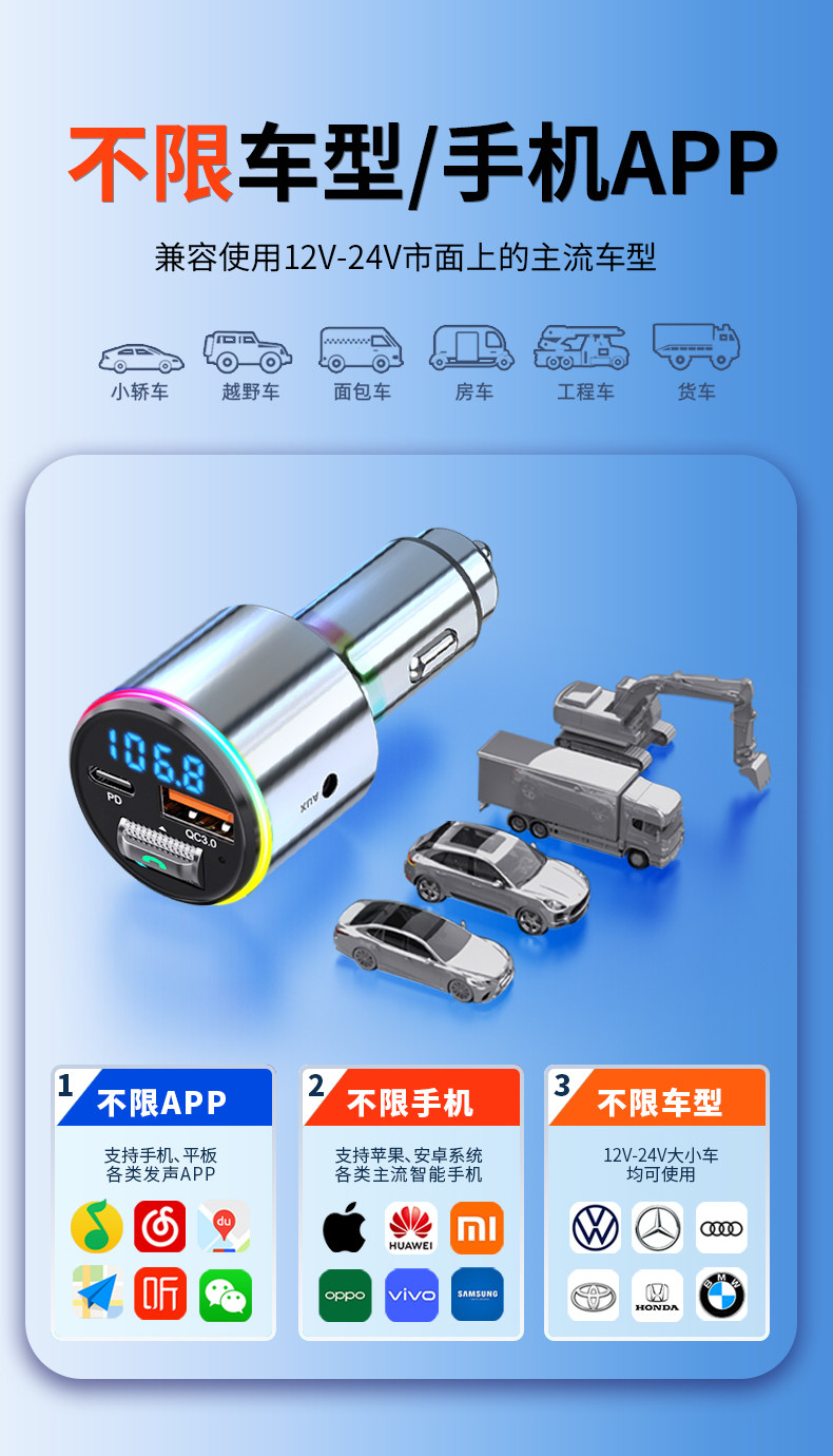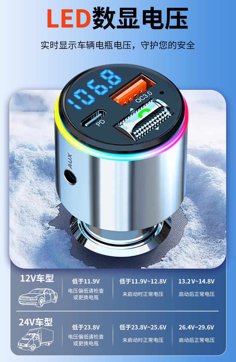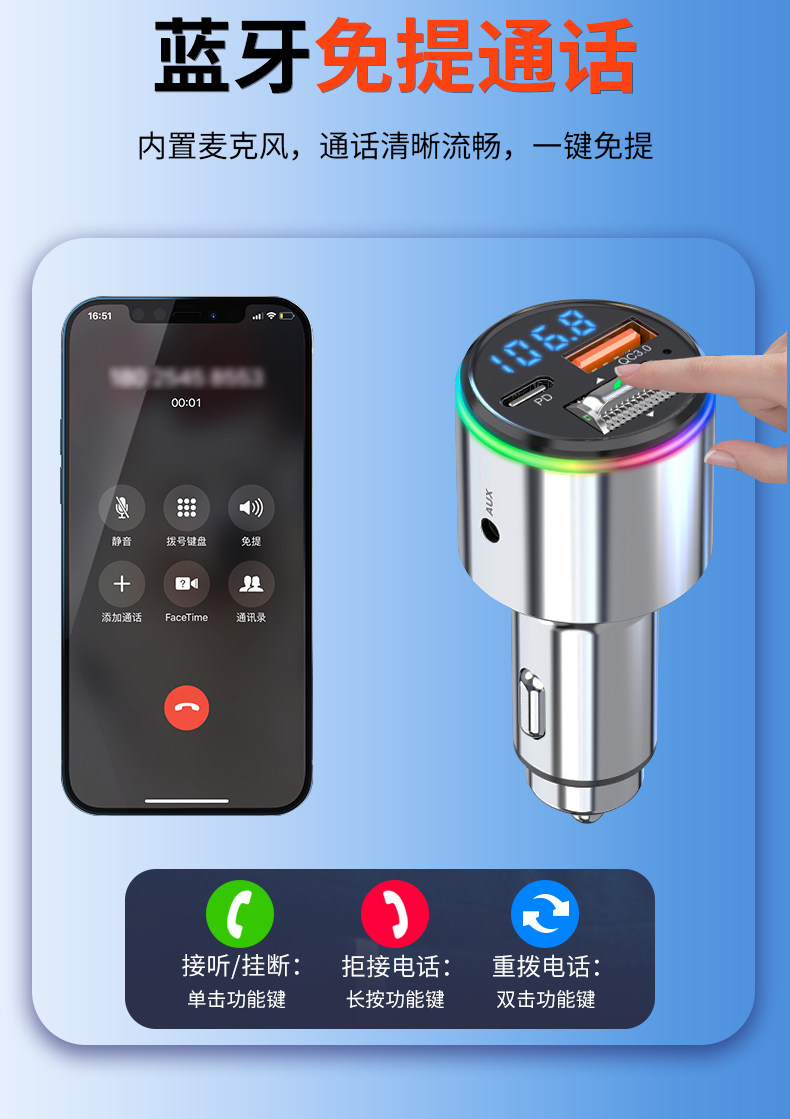 Newman Car Bluetooth Receiver 5.3 Lossless Sound Quality Mp3 Player Car Cigarette Lighter to Charger Car Charger