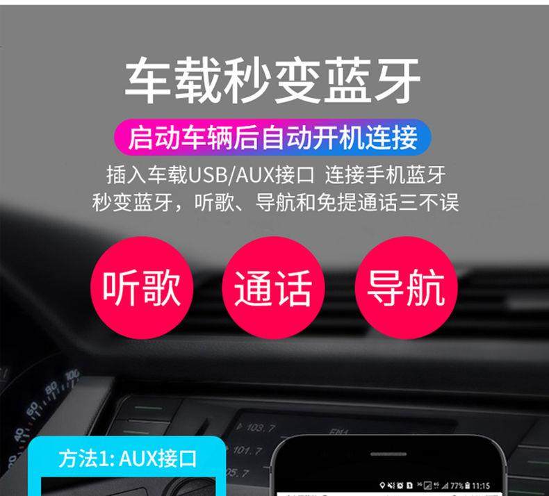 | Color Classification | Car Bluetooth 4.0 (Poor Effect),Car Bluetooth 4.0 (Not Recommended) Not Easy to Use,Enhanced Version 5.0[Stable Connection and Improved Sound Quality],Bluetooth Enhanced Edition 5.1[Lossless Sound Quality],Car Bluetooth Adapter 5.0 |