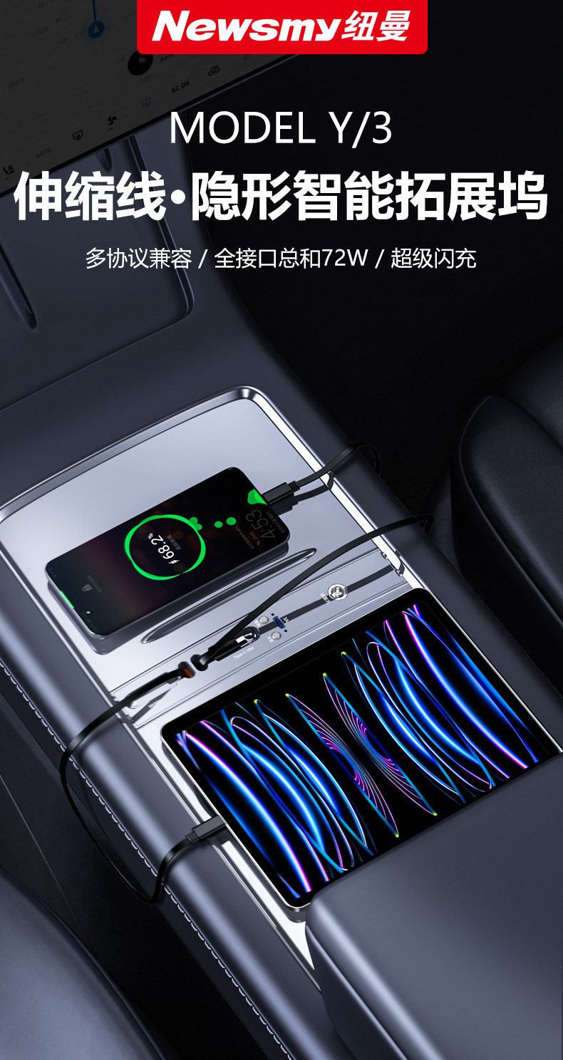 Suitable for Tesla Model 3/Y New Version Car Central Control Expansion Dock Maodouya Accessories Charging Extender