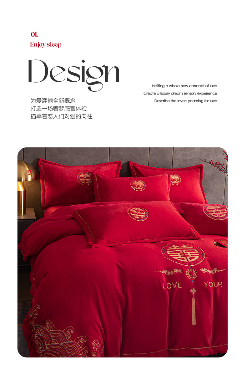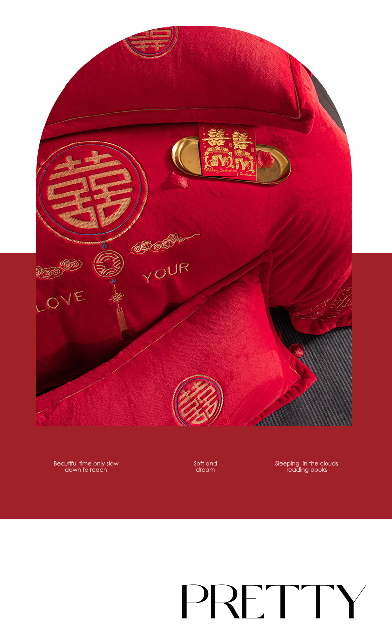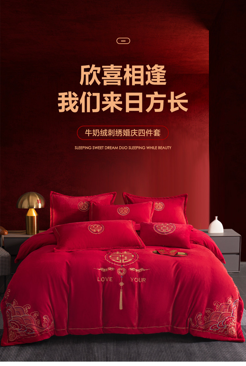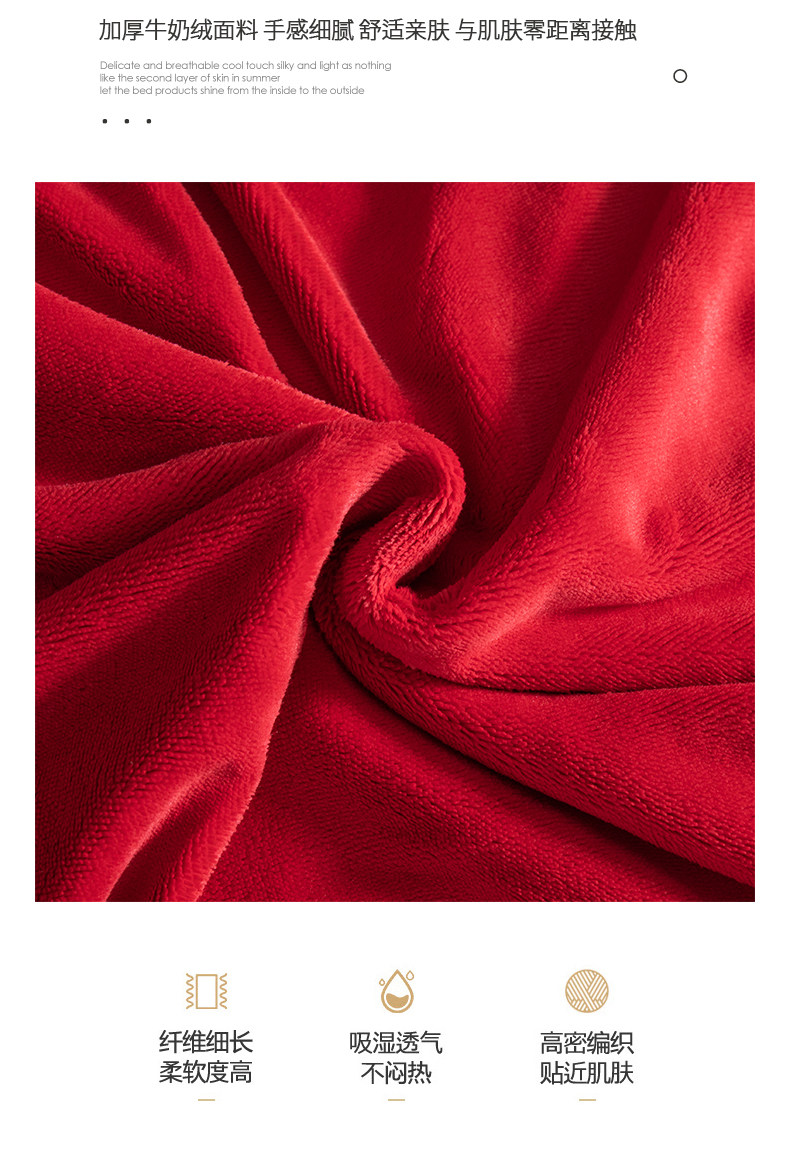 Wedding Milk Velvet Four-Piece Set, Winter Newlywed Celebration Quilt, Red Dowry, Coral Velvet Bed Sheet, Duvet Cover, Bedding