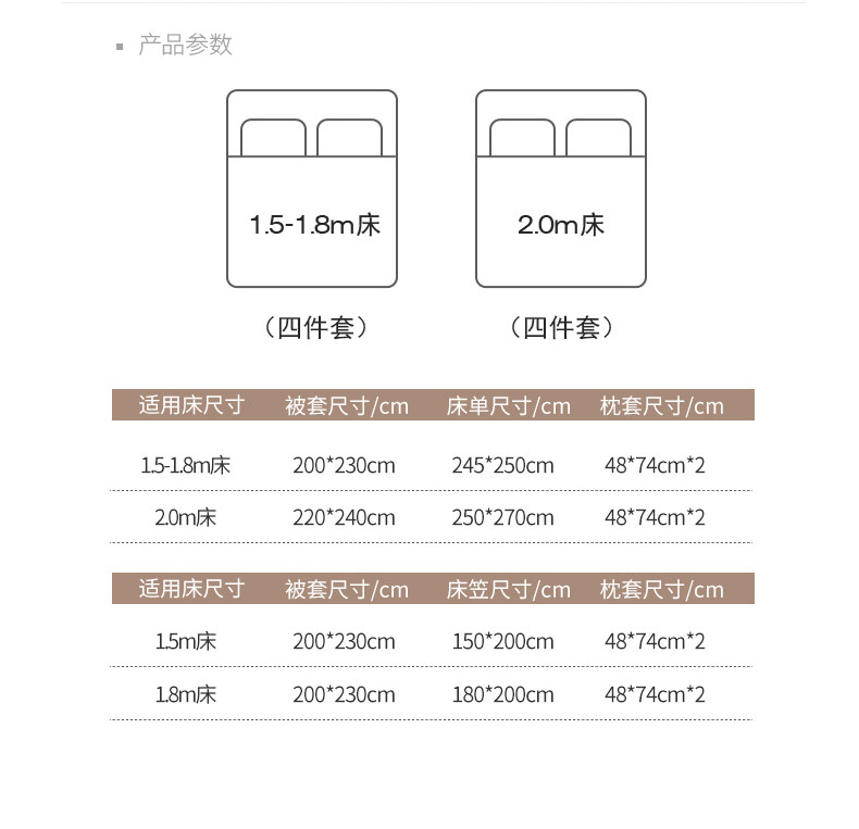 | Applicable Bed Size | 1.5m Bed[Four-Piece Bed Sheet Set]-Suitable for 200X230Cm Quilt Core,1.8m Bed[Four-Piece Bed Sheet Set]-Suitable for 200X230Cm Quilt Core,2.0m Bed[Four-Piece Bed Sheet Set]-Suitable for 220X240Cm Quilt Core,★1.5m Bed[Four-Piece Fitted Sheet Set]-Suitable for 200X230Cm Quilt Core,★1.8m Bed[Four-Piece Fitted Sheet Set]-Suitable for 200X230Cm Quilt Core |